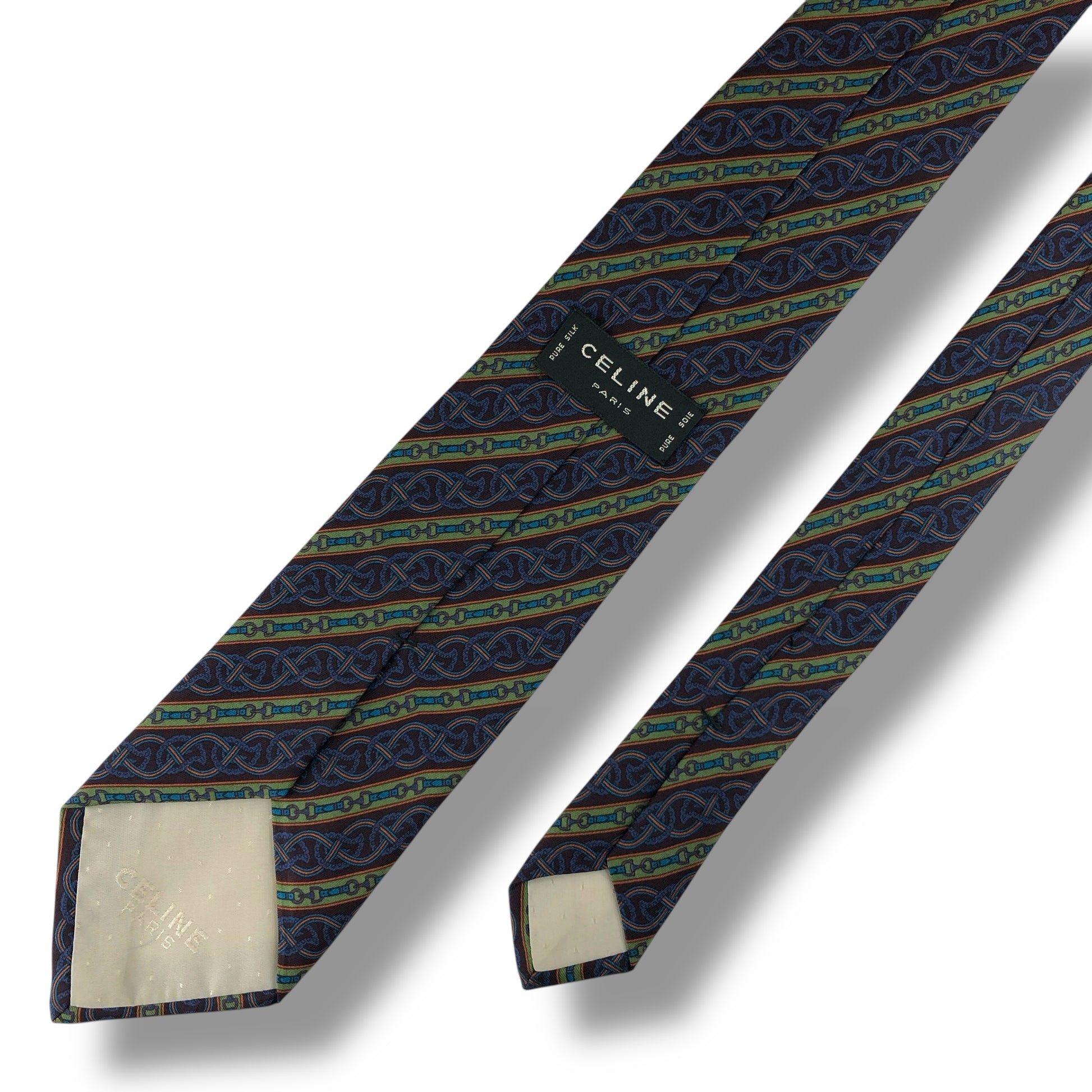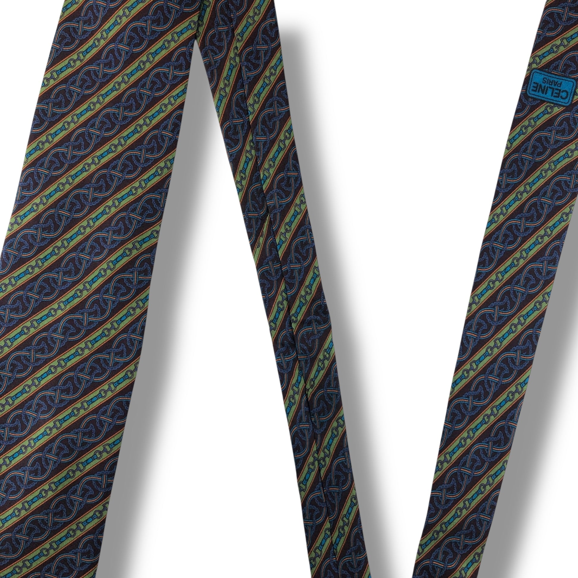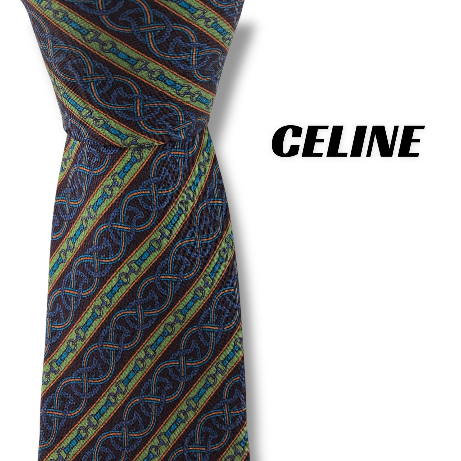 【7550】美品!セリーヌ ネクタイ ブルー系 グリーン系