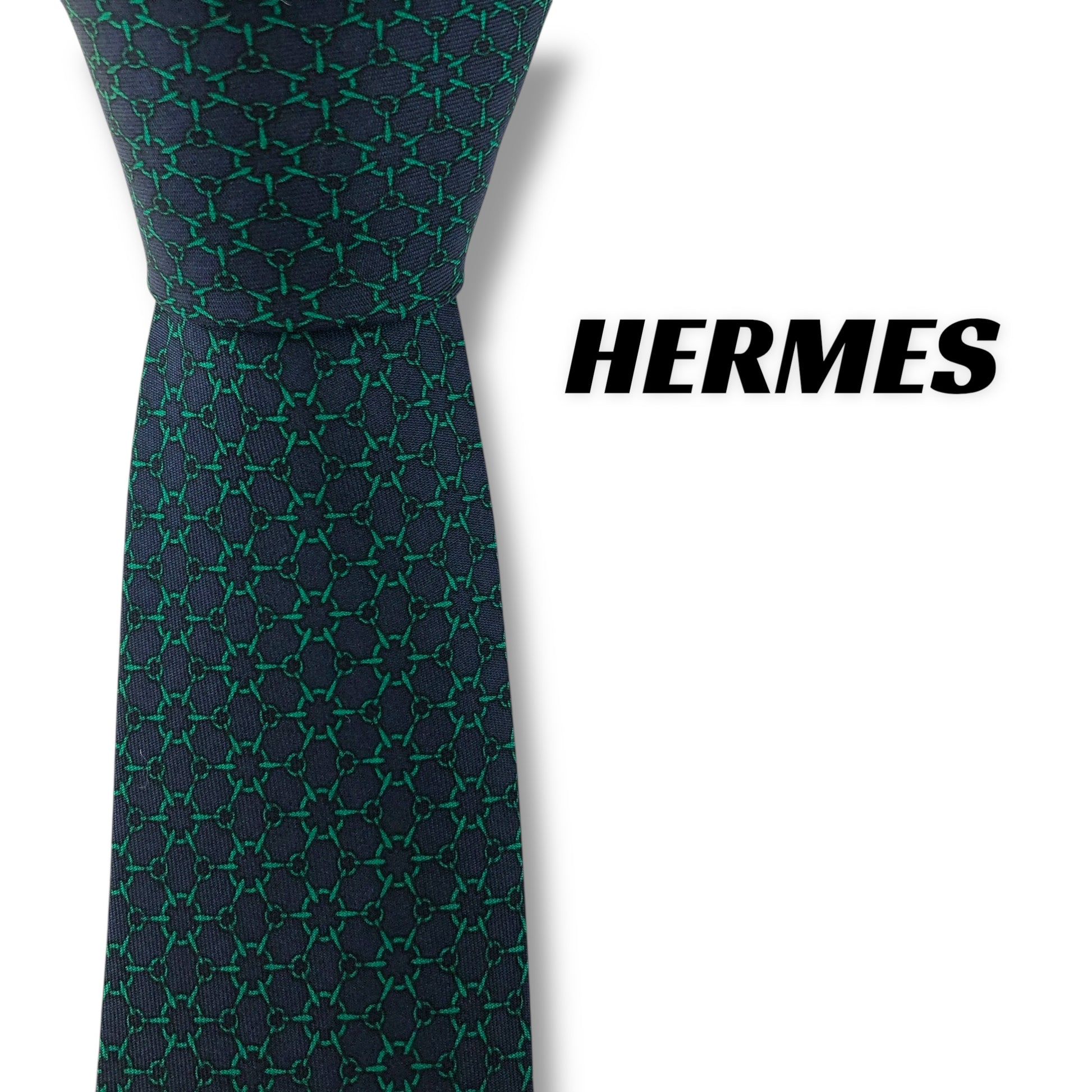 【7553】良品!エルメス ネクタイ グリーン系