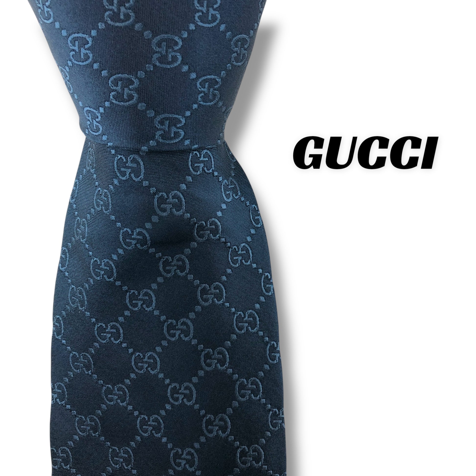 【7557】美品!グッチ ネクタイ ブルー系