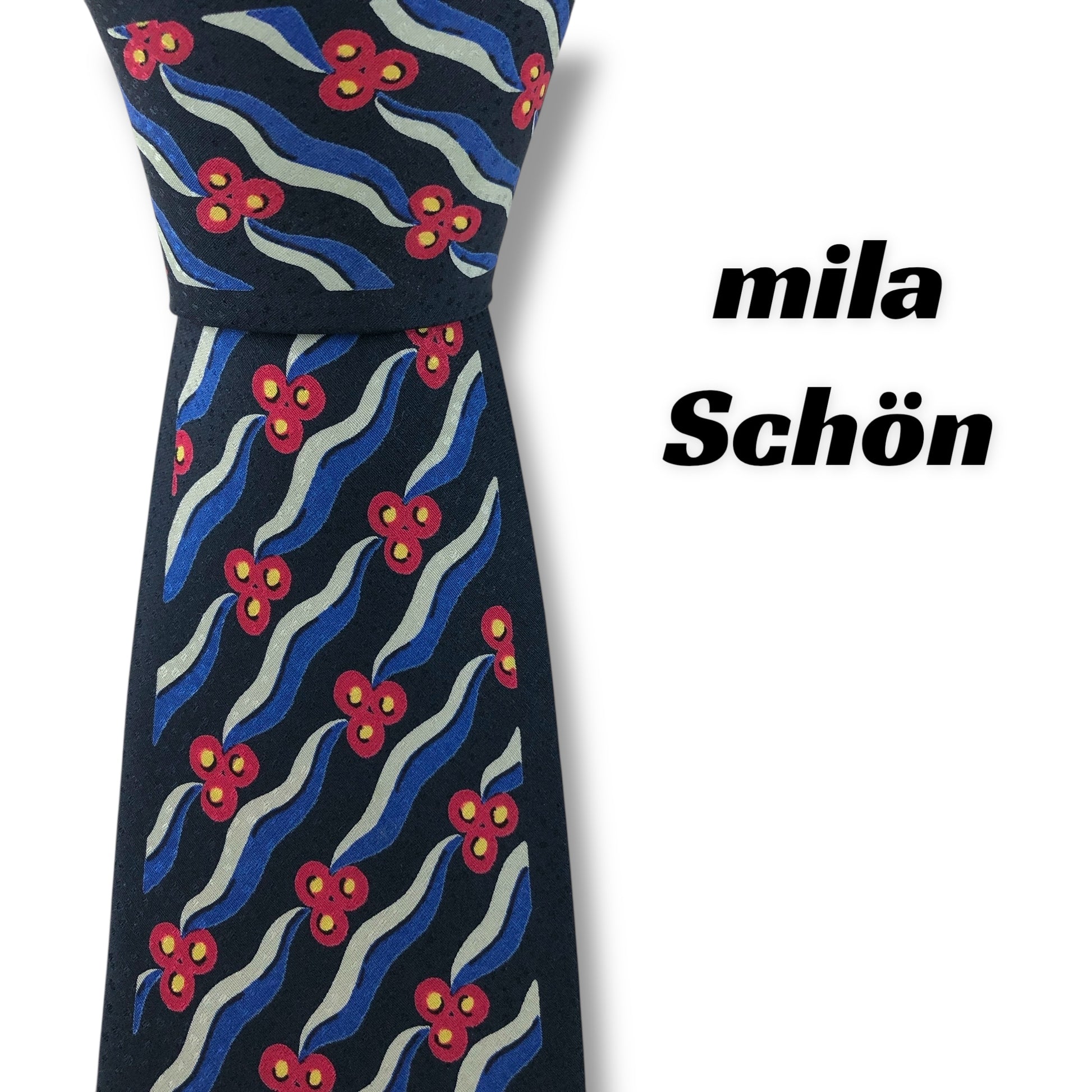 【7562】良品!ミラショーン ネクタイ ネイビー系