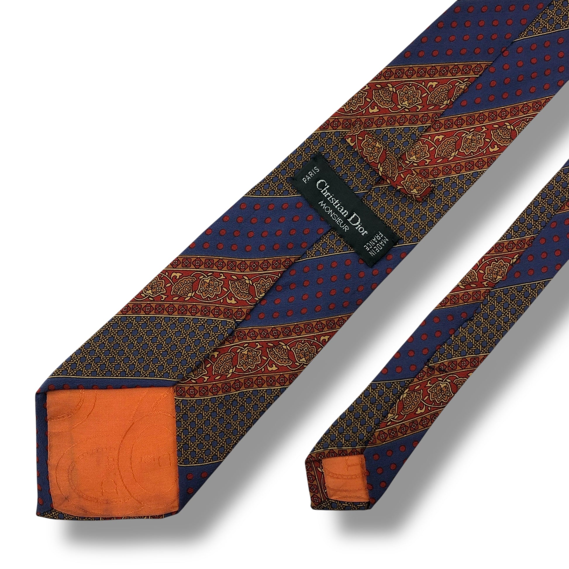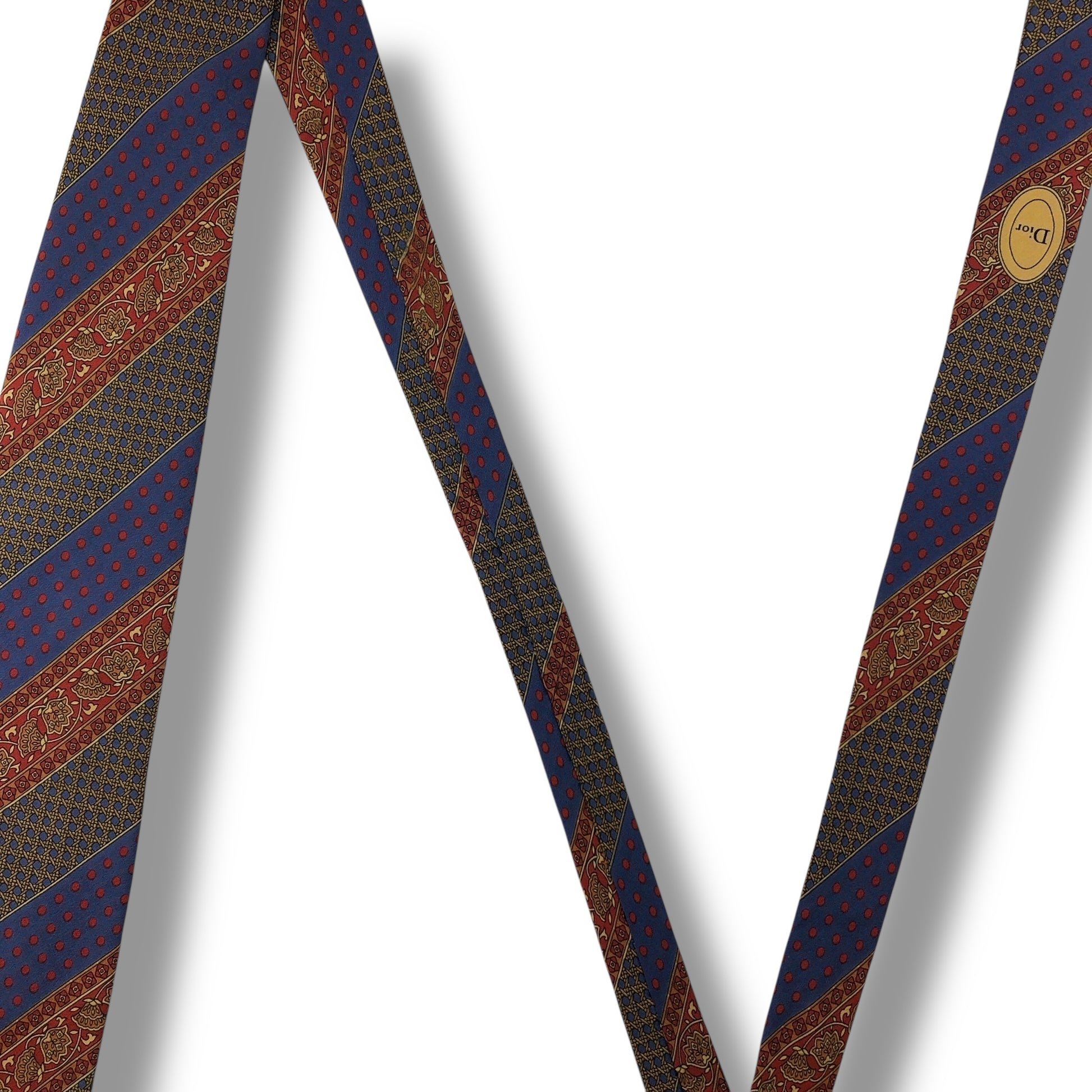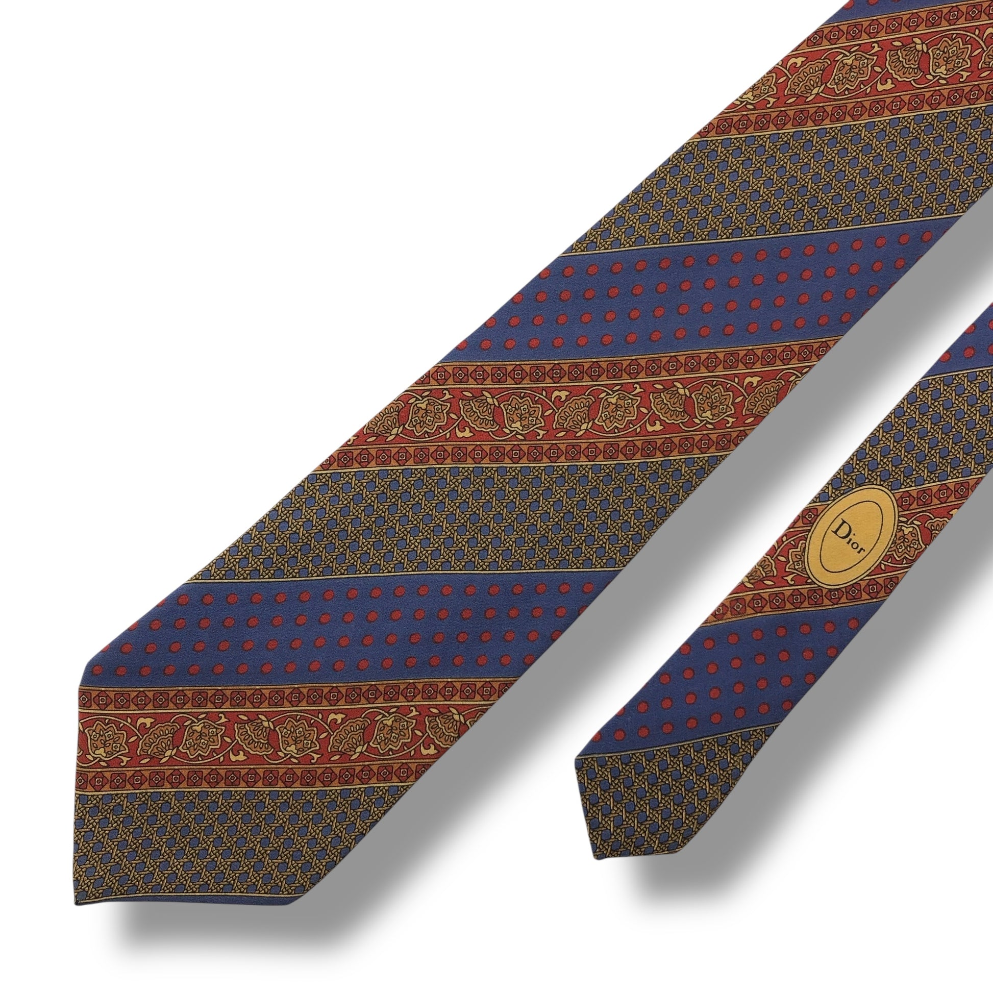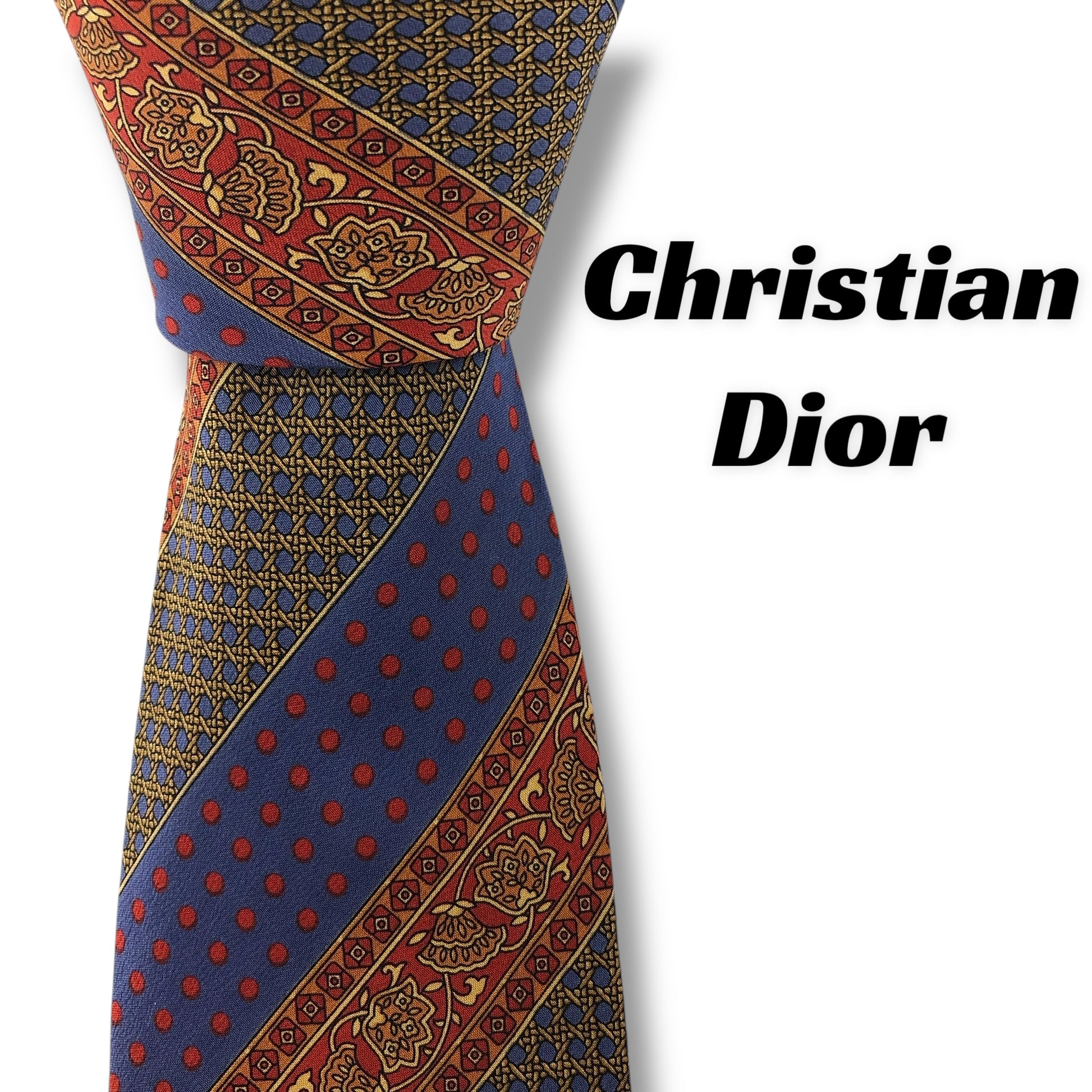 【7566】美品ー良品!クリスチャンディオール ネクタイ ブルー系 レッド系