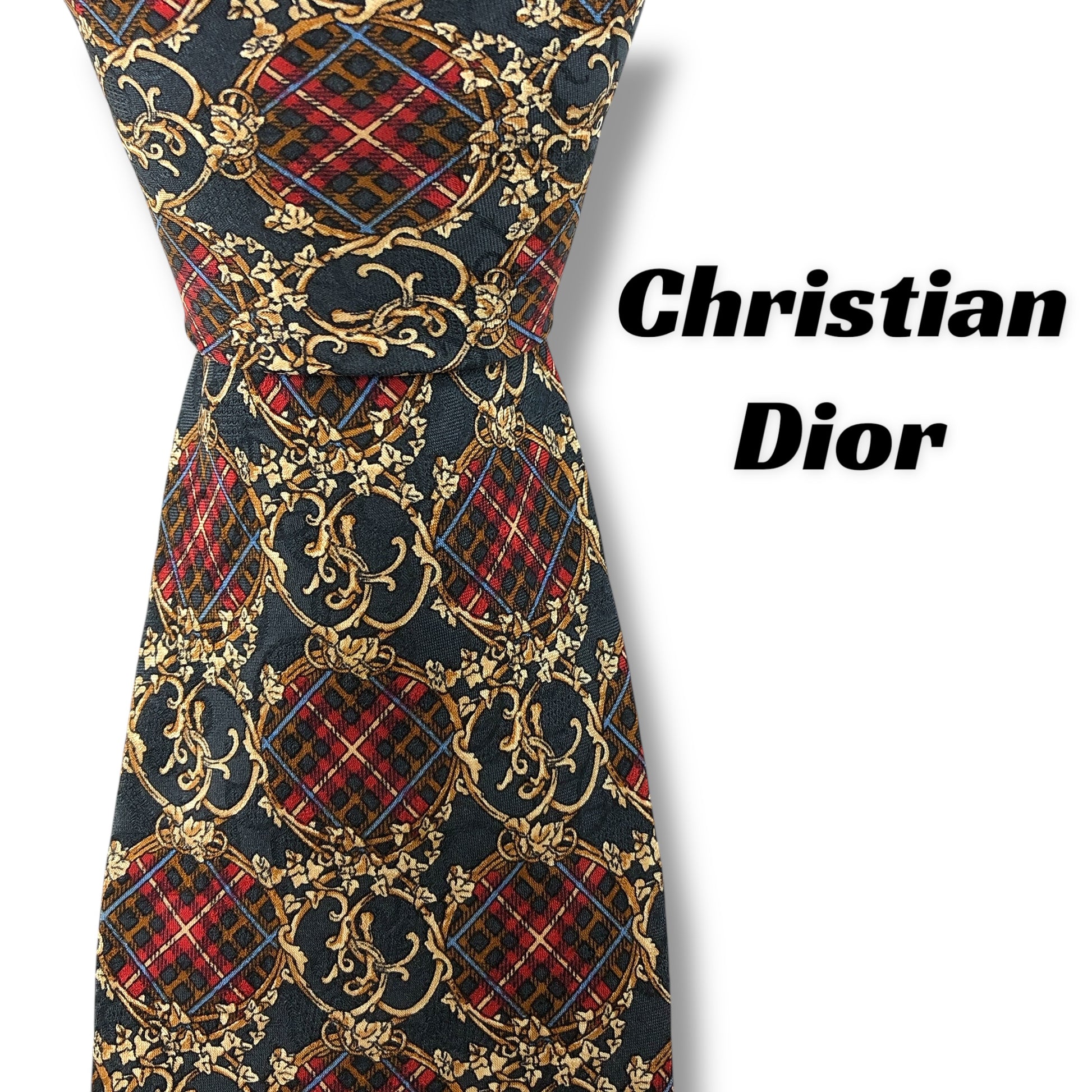 【7568】良品!クリスチャンディオール ネクタイ ネイビー系