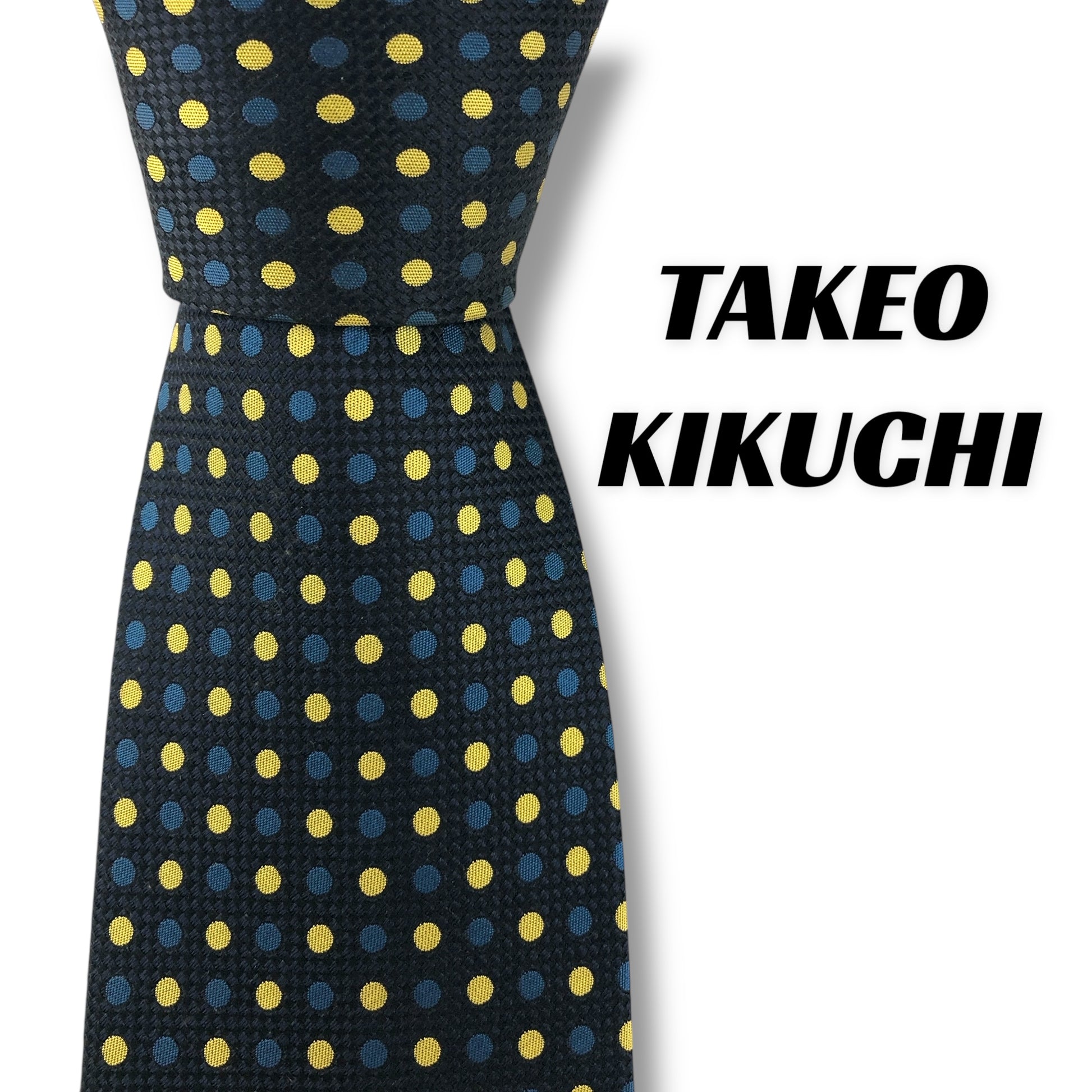 【7580】良品!タケオキクチ ネクタイ ネイビー系 ドット柄