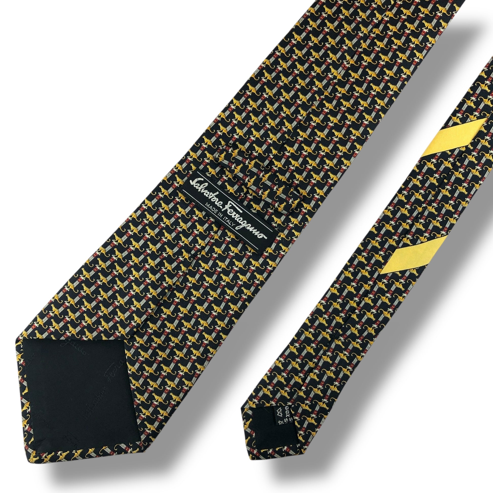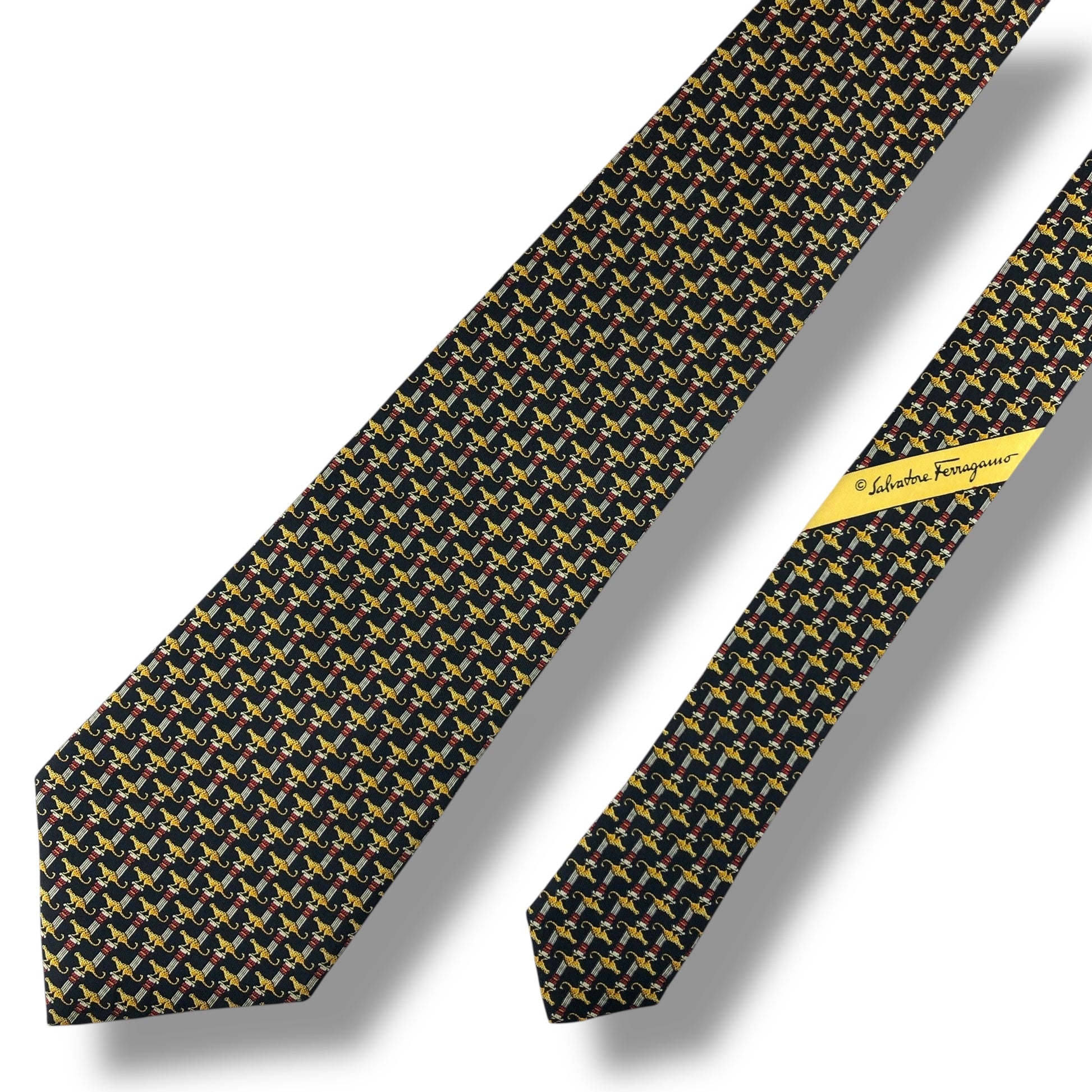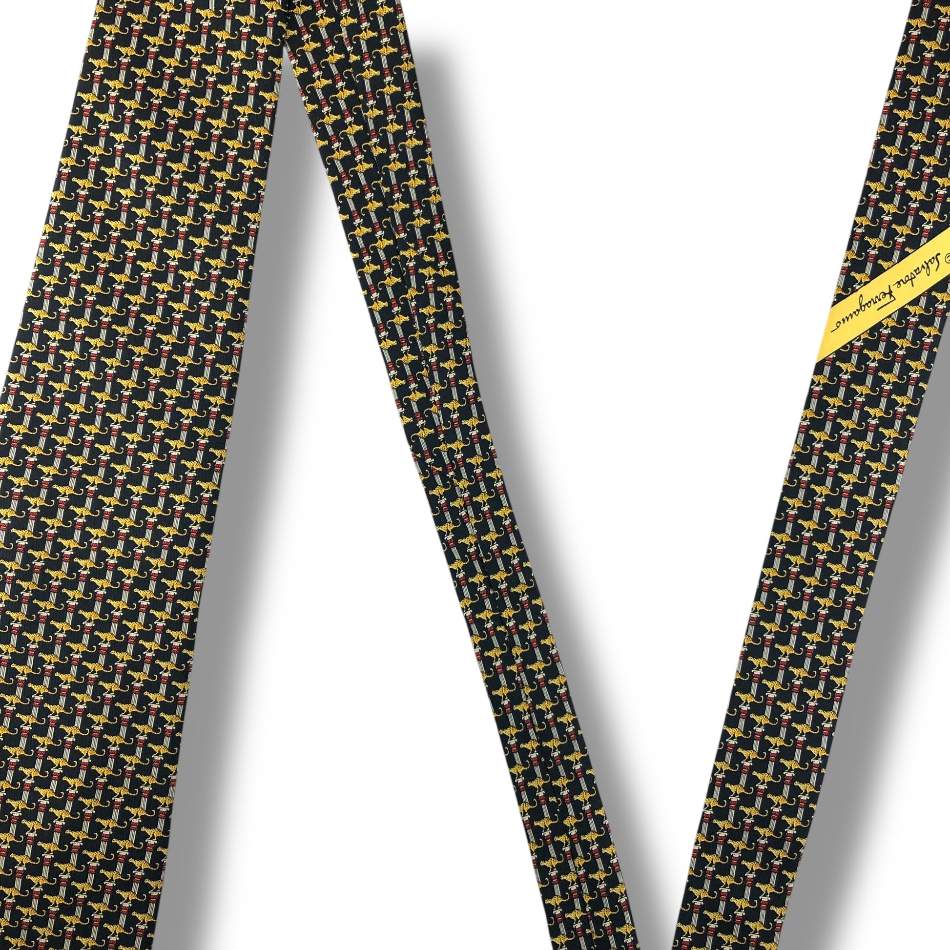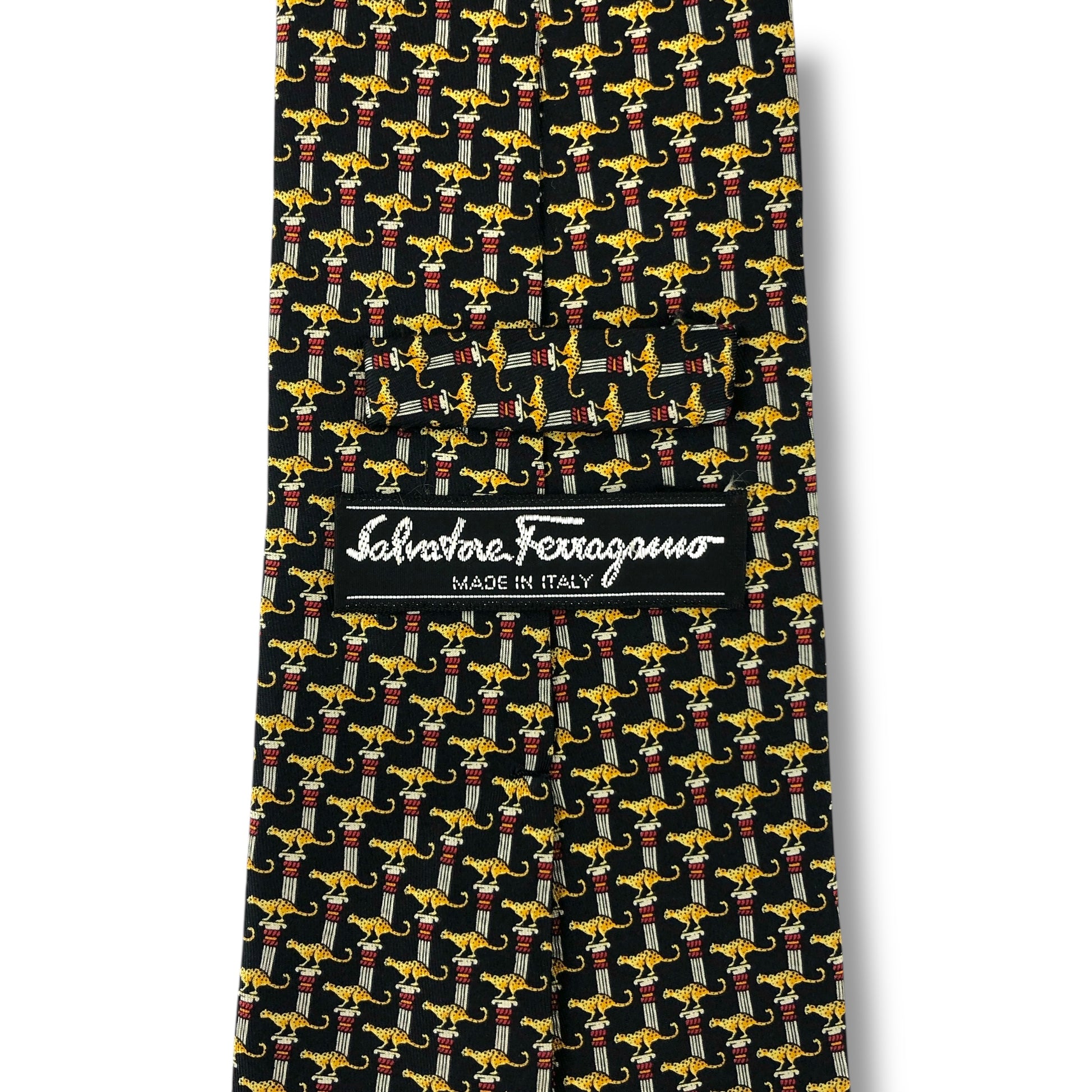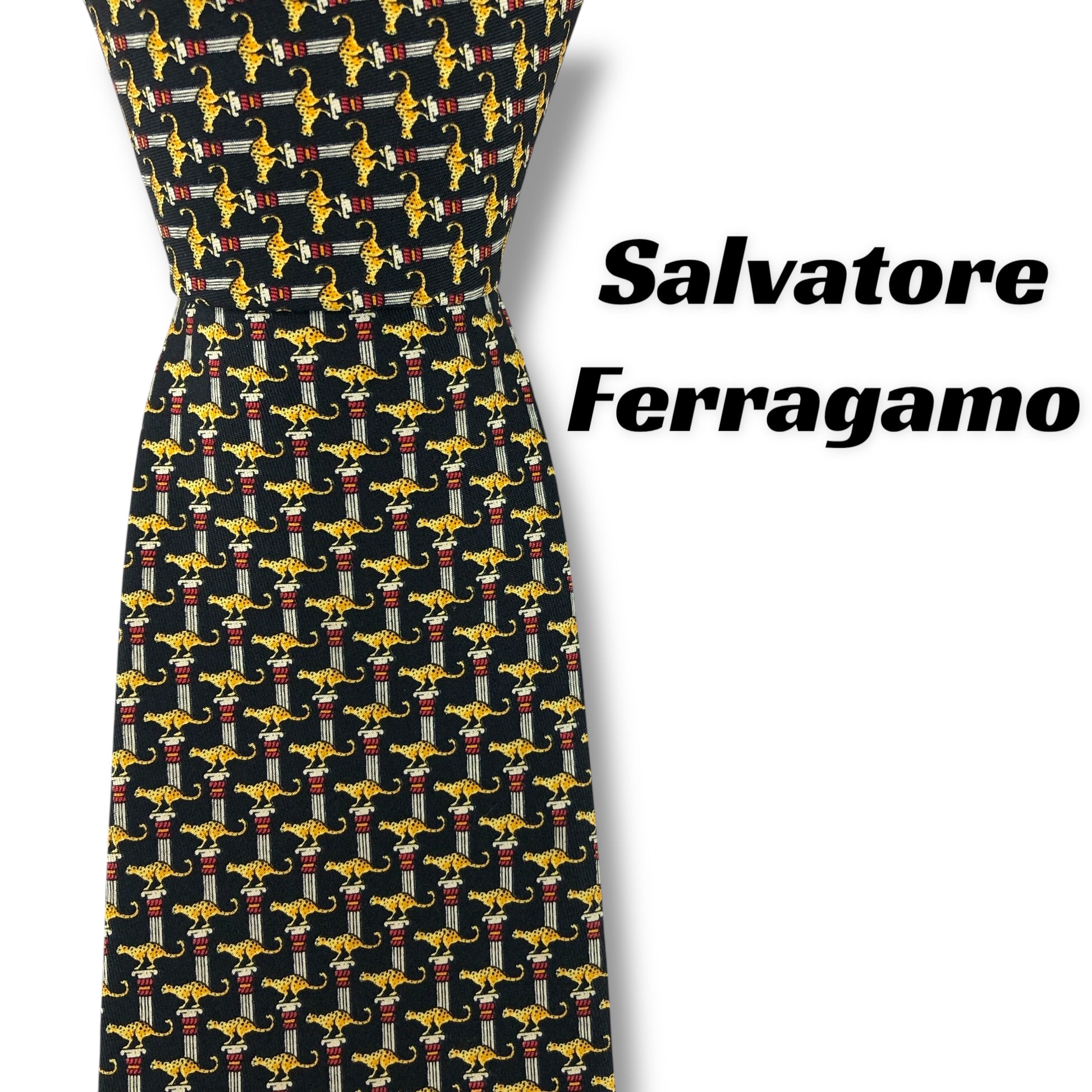 【7584】良品!サルヴァトーレフェラガモ ネクタイ ブラック系 ヒョウ柄