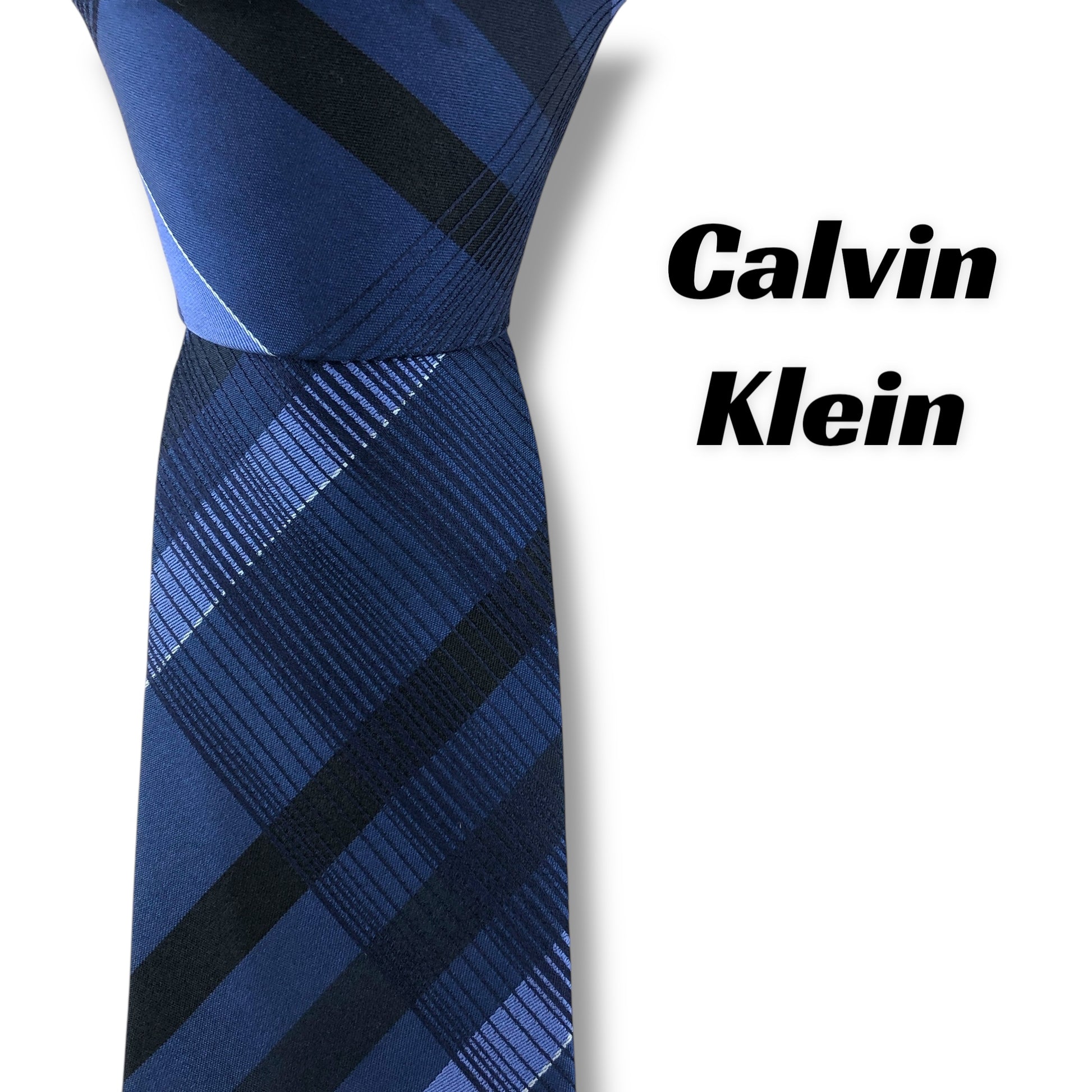 【7600】良品!カルバンクライン ネクタイ ブルー系