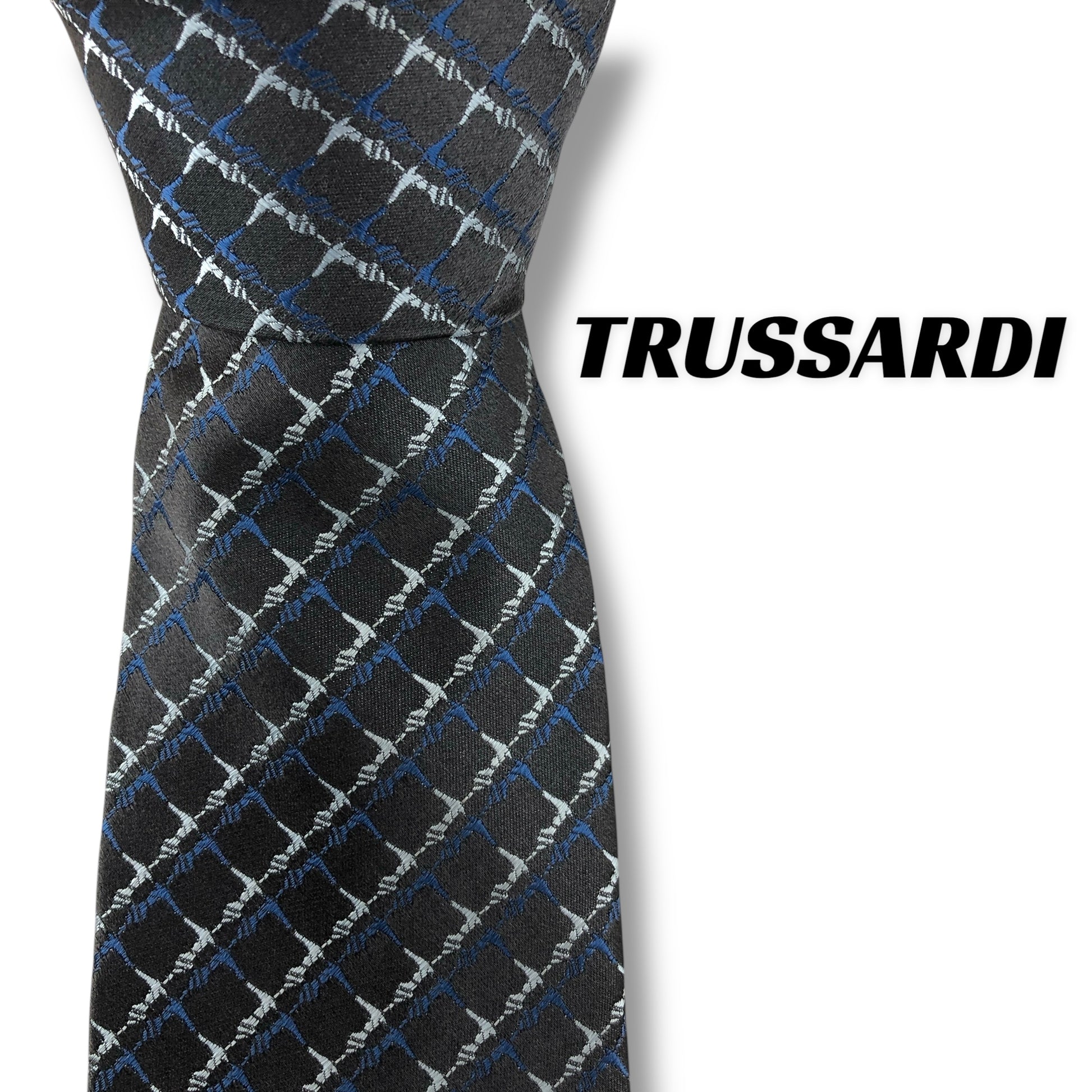 【7604】良品!トラサルディ ネクタイ グレー系 アイコン柄