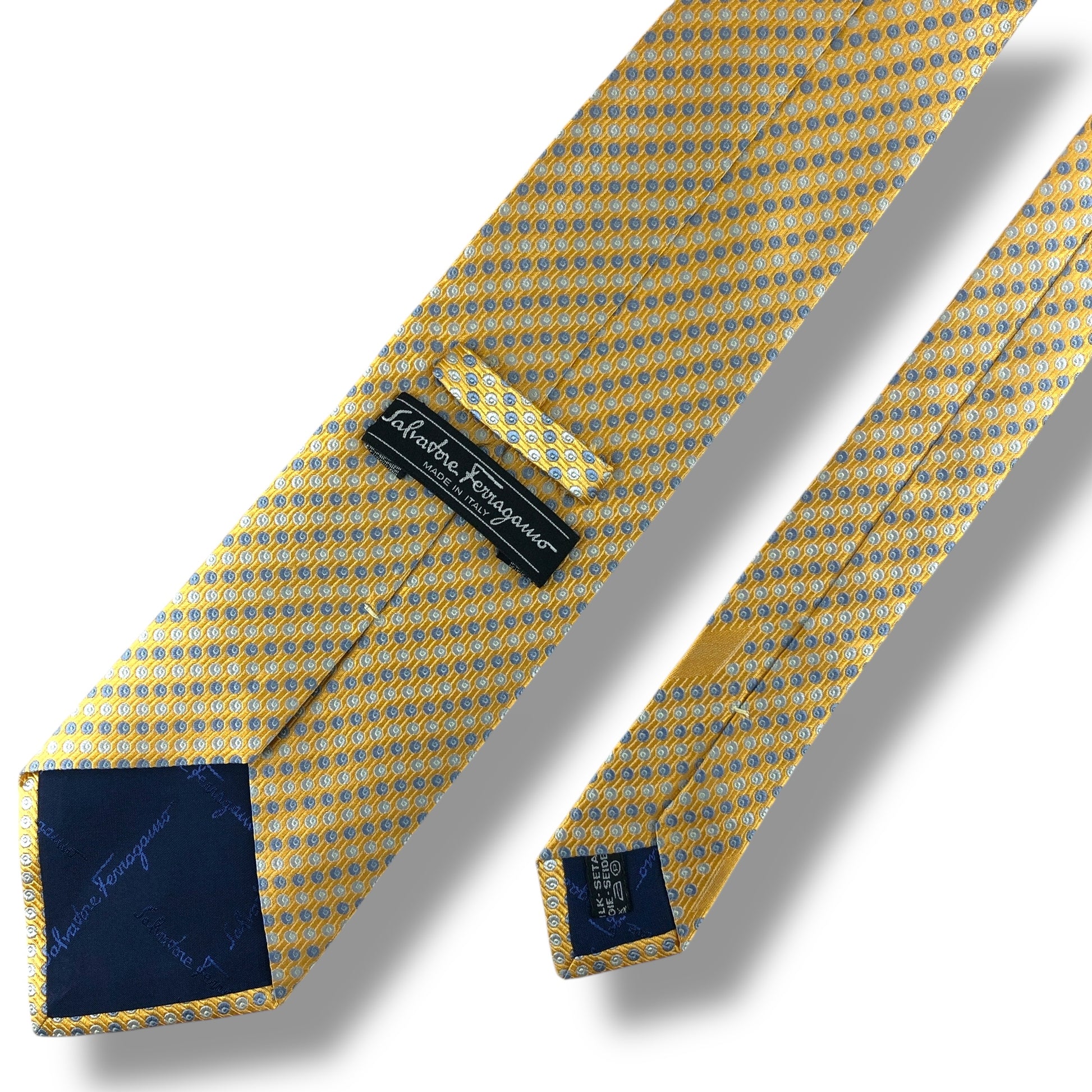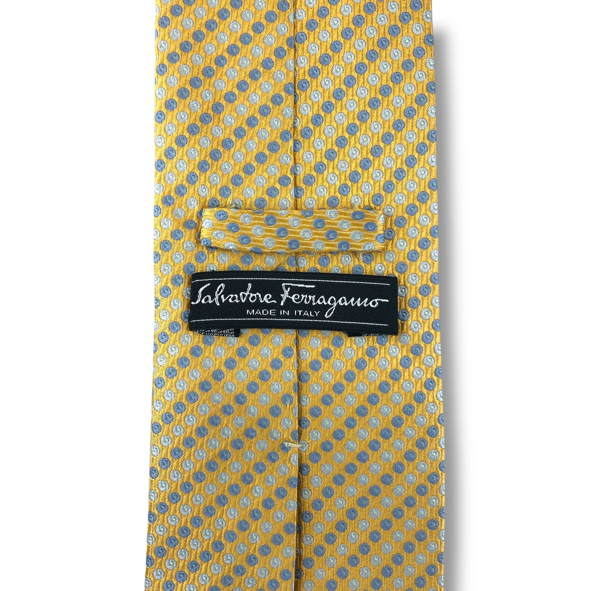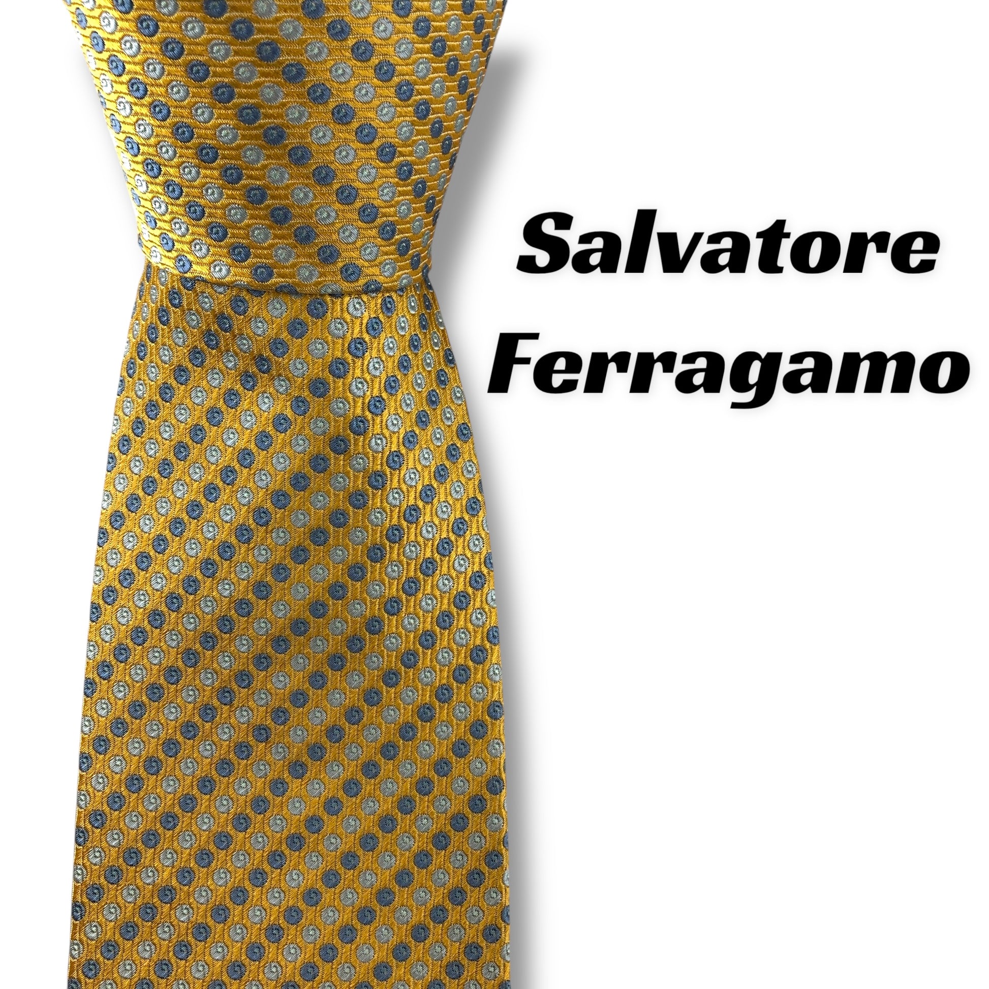 【7607】美品!フェラガモ ネクタイ イエロー・ゴールド系 ドット柄