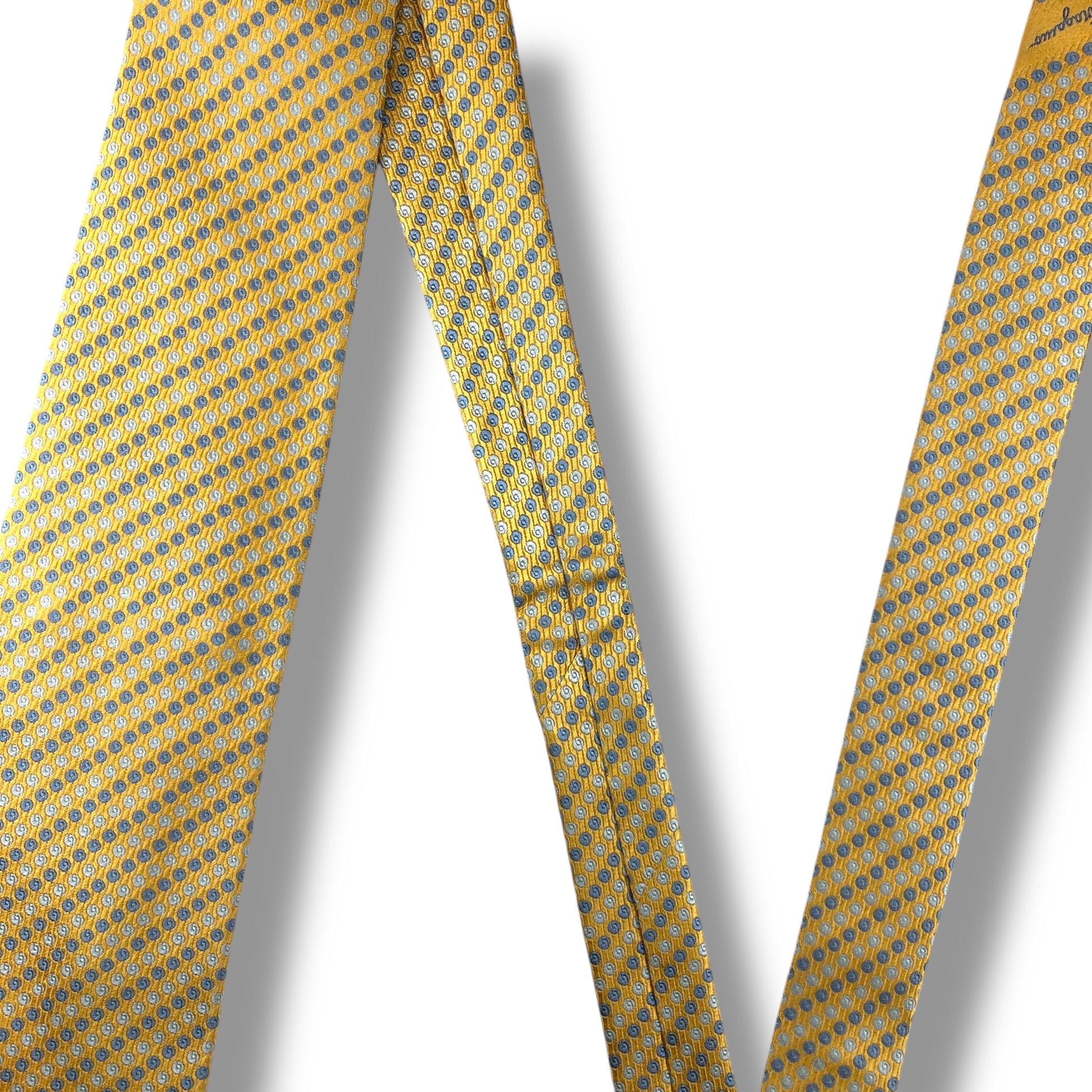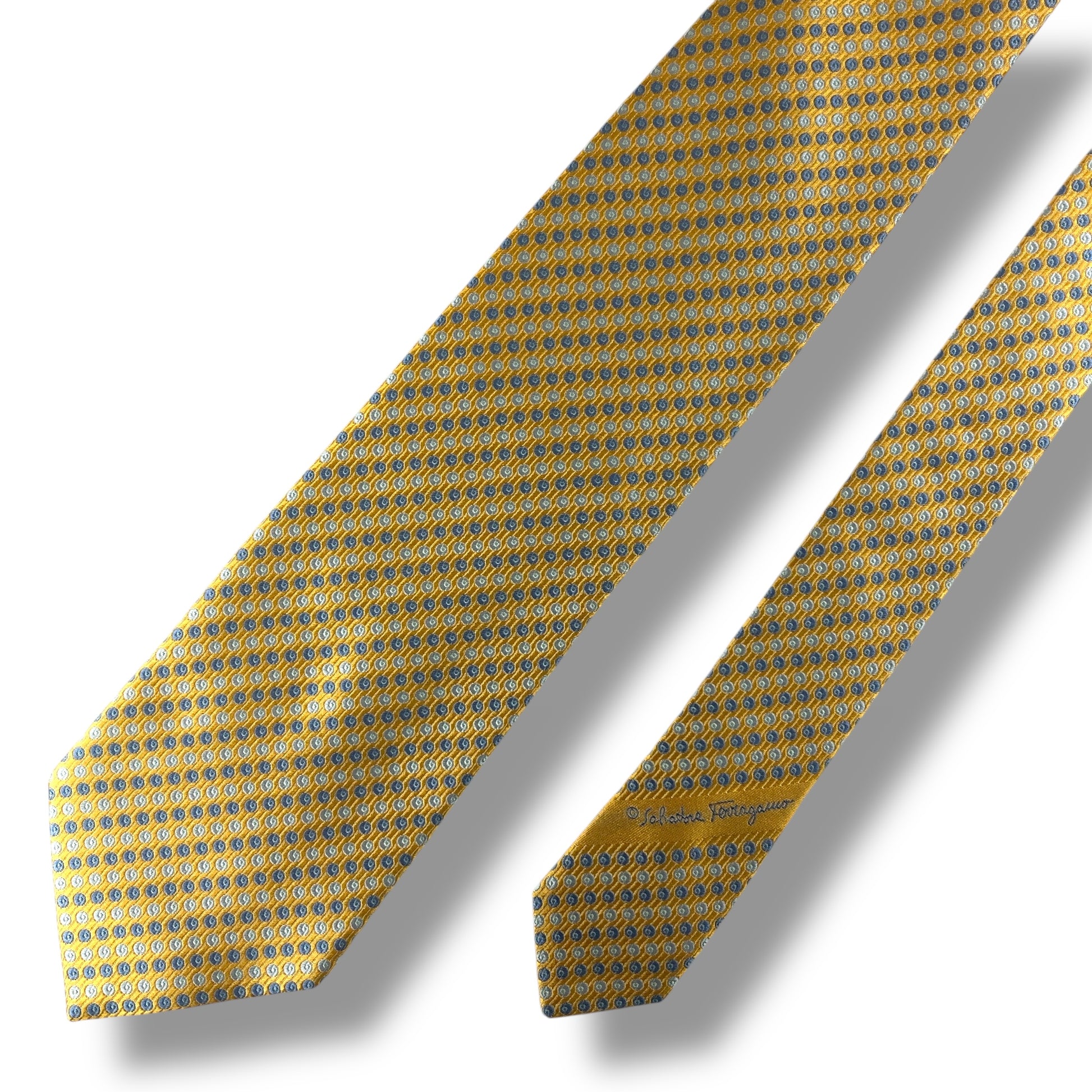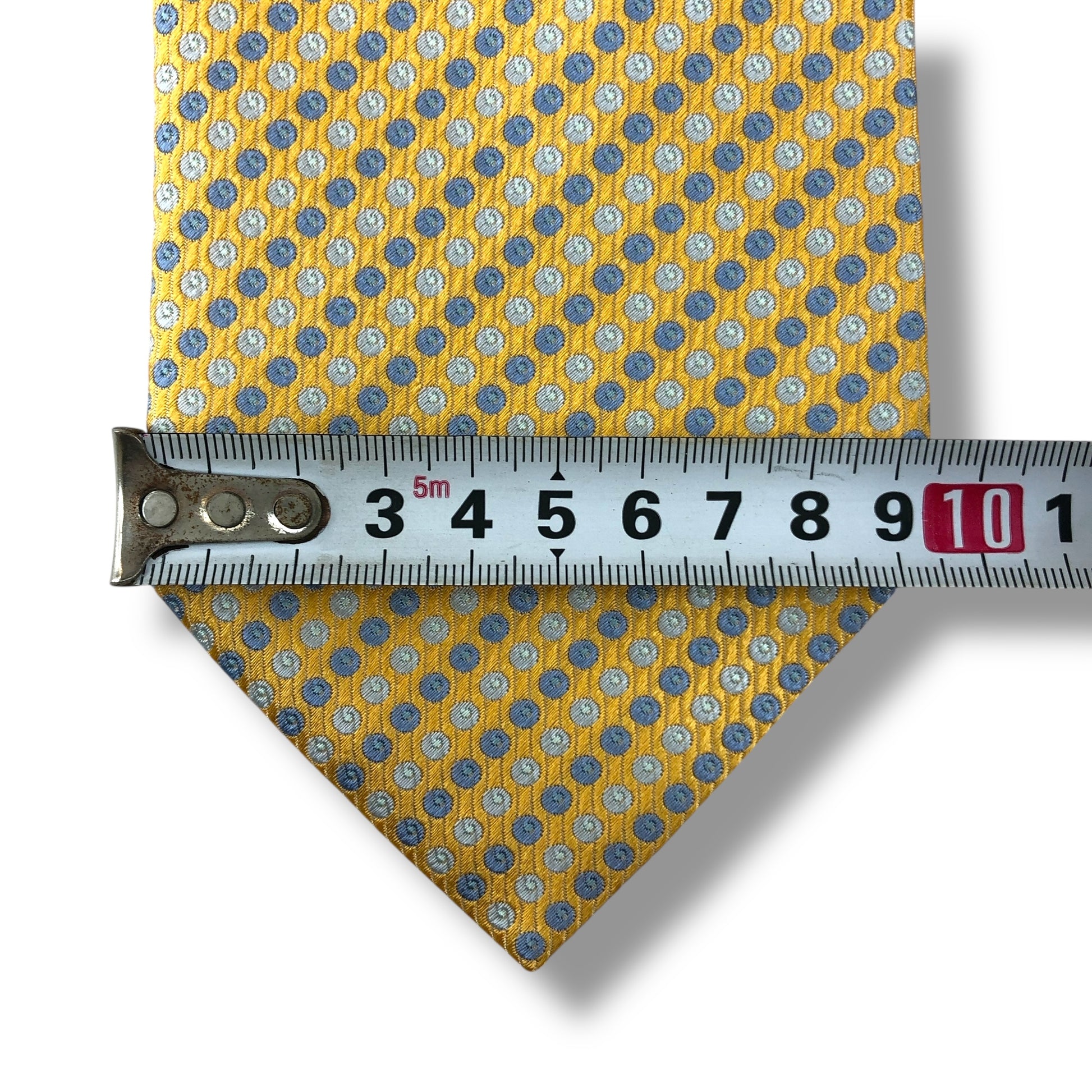 【7607】美品!フェラガモ ネクタイ イエロー・ゴールド系 ドット柄