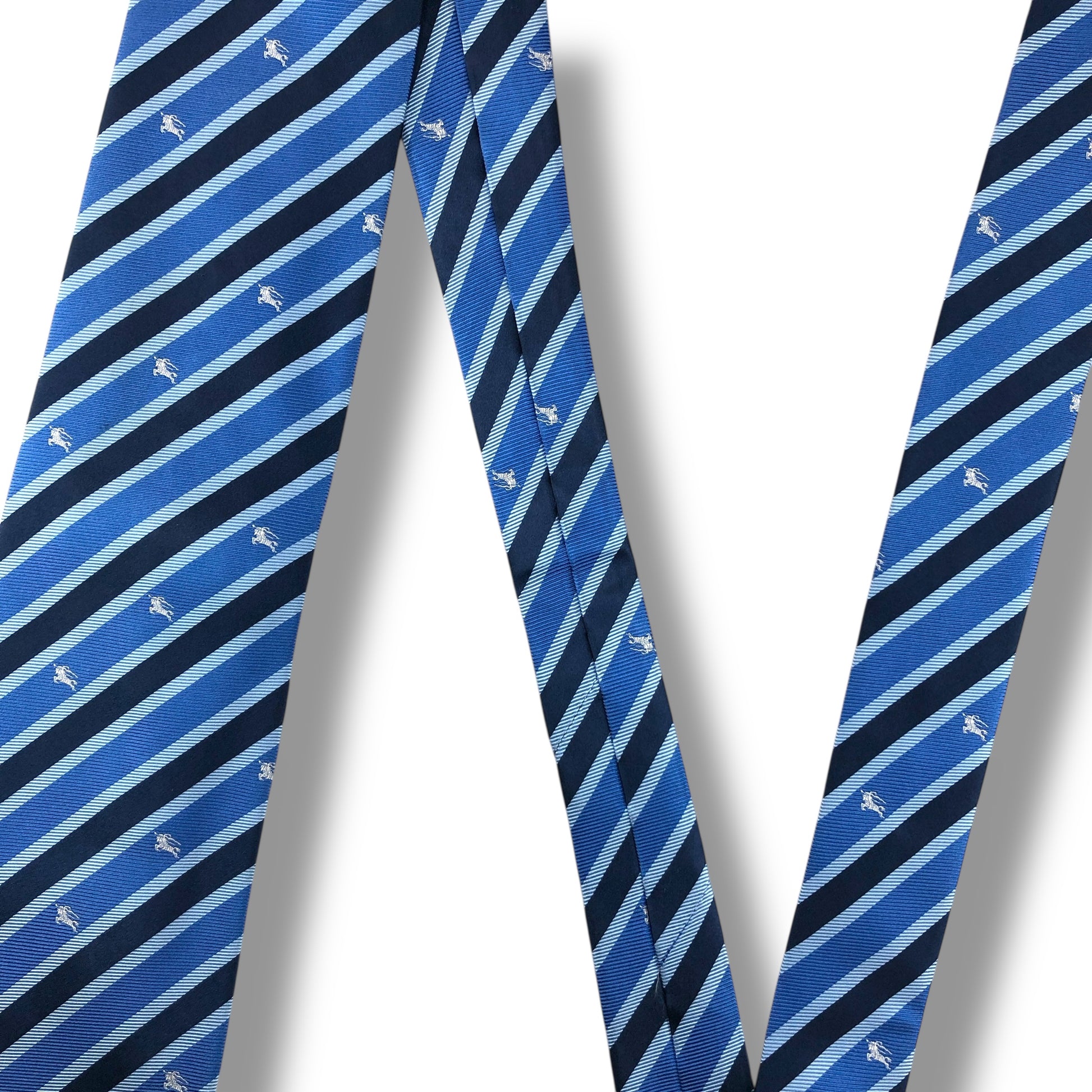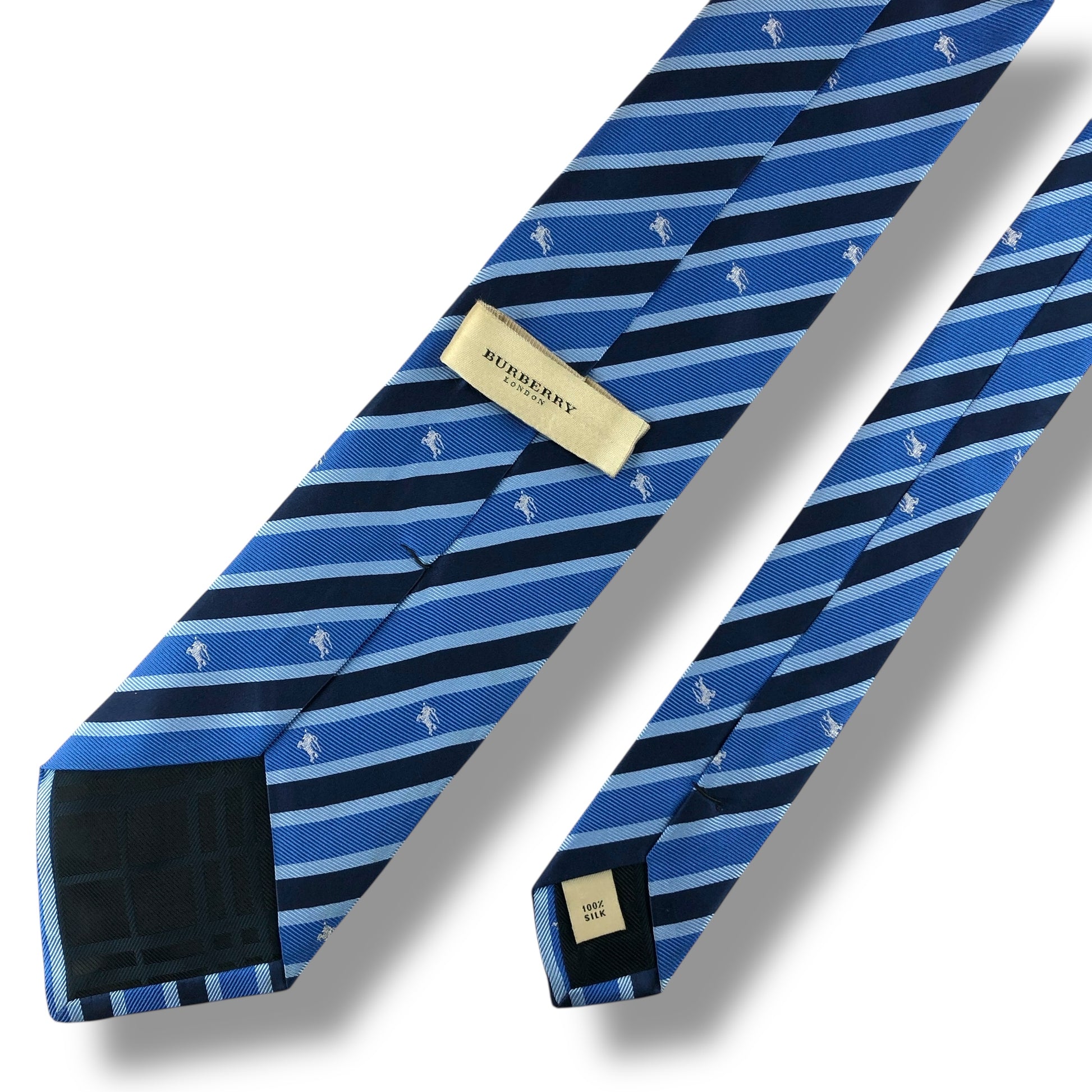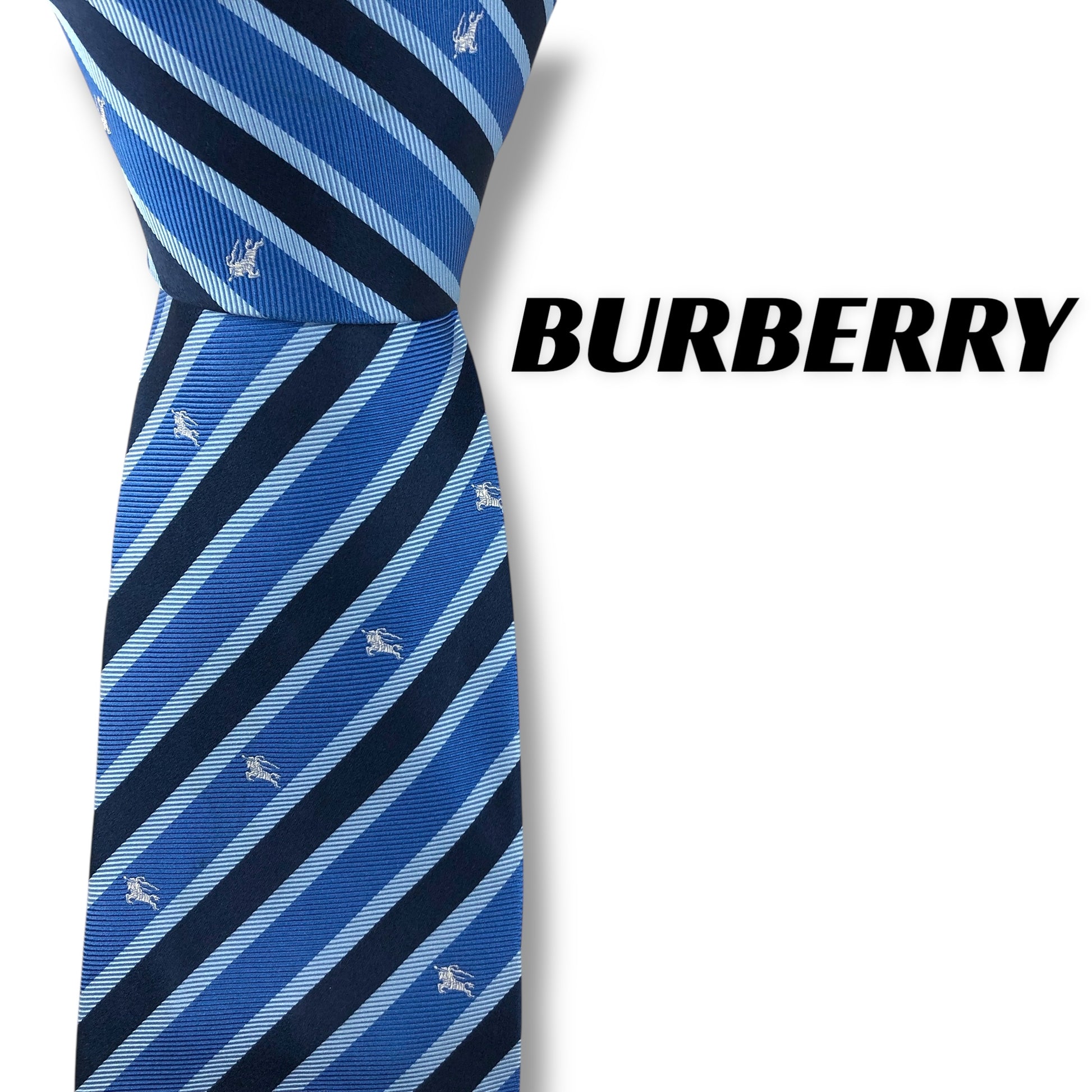 【7610】良品!バーバリー ネクタイ ブルー系 ストライプ柄