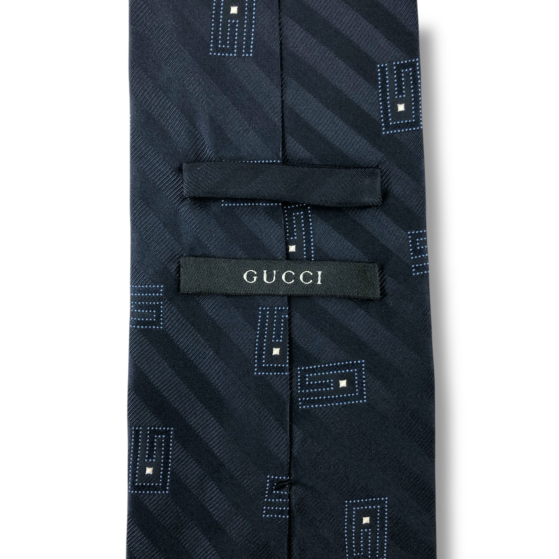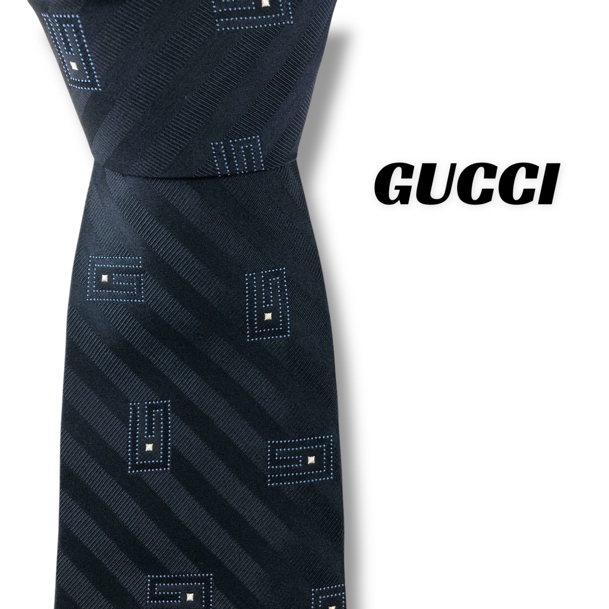 【7621】美品ー良品!グッチ ネクタイ ネイビー系 G柄