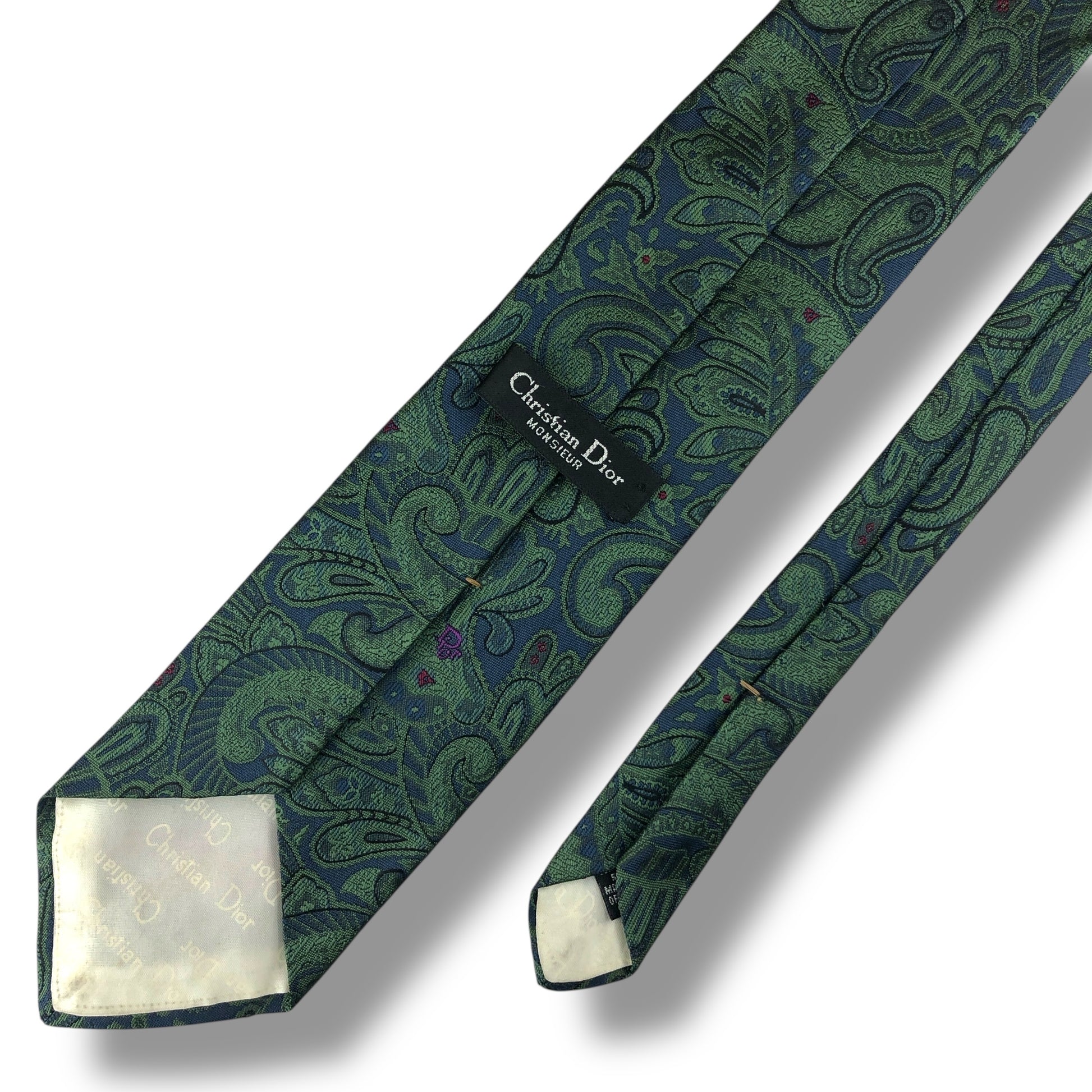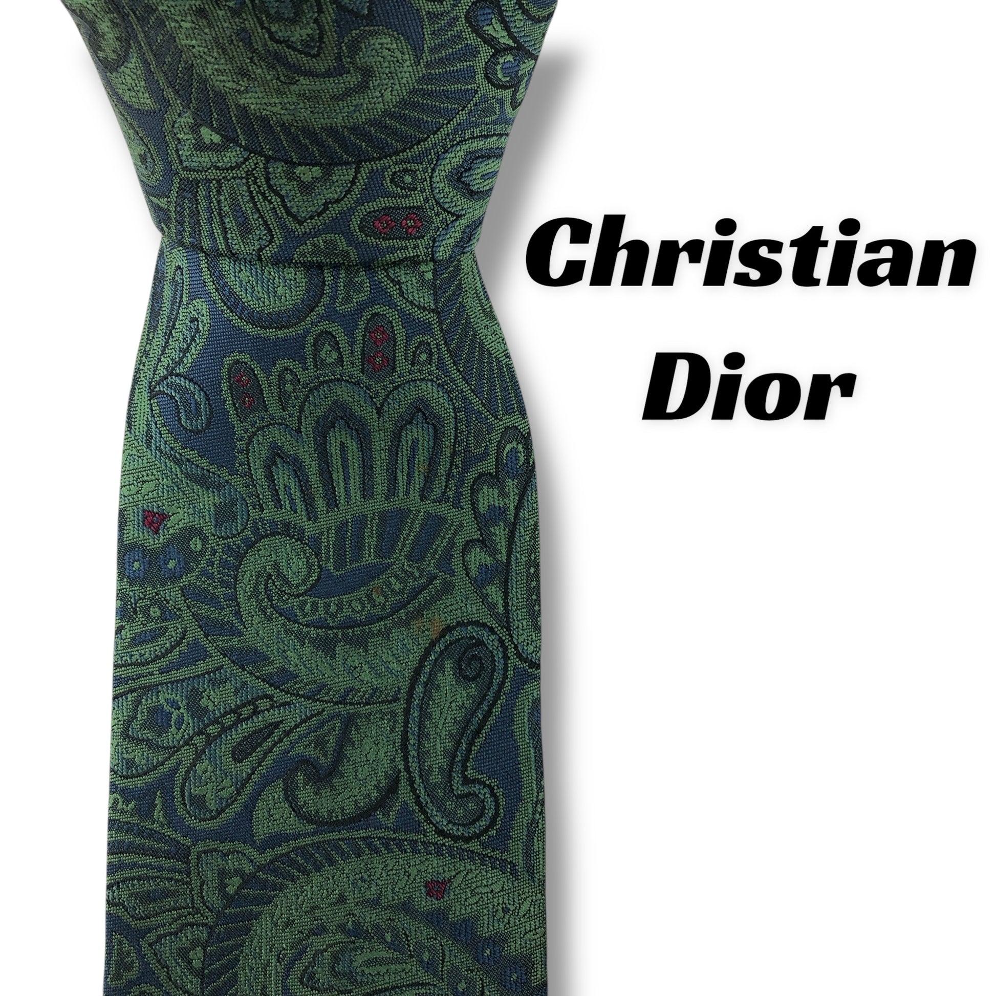 【7627】良品!クリスチャンディオール ネクタイ グリーン系