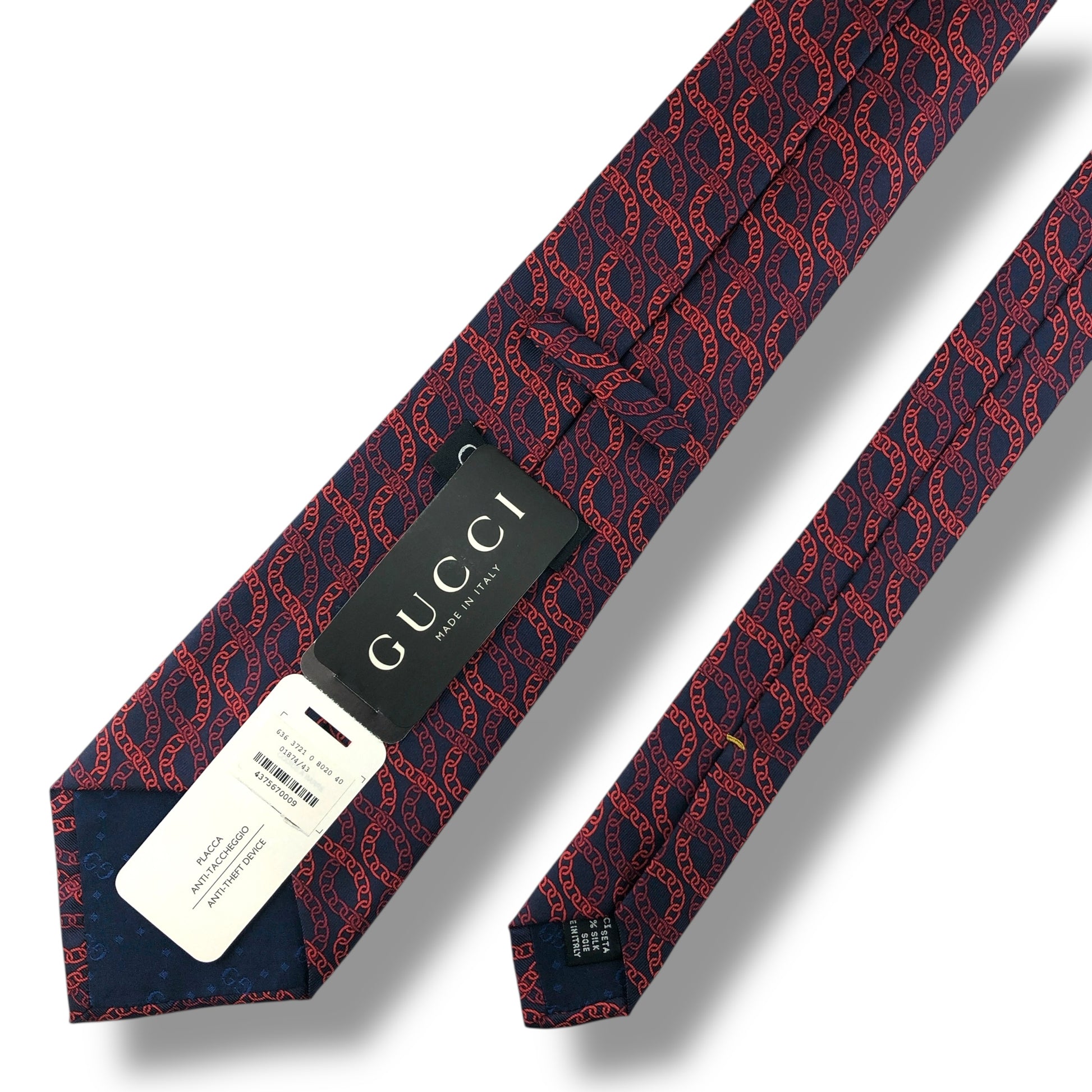 【7637】未使用保管品 グッチ ネクタイ レッド系