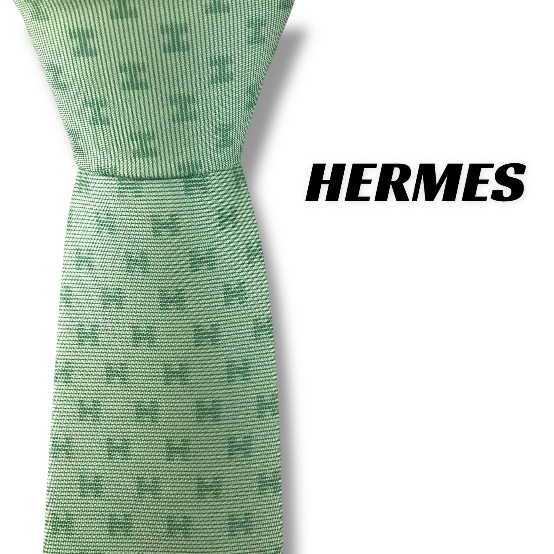 【7655】美品!エルメス ネクタイ ライトグリーン系