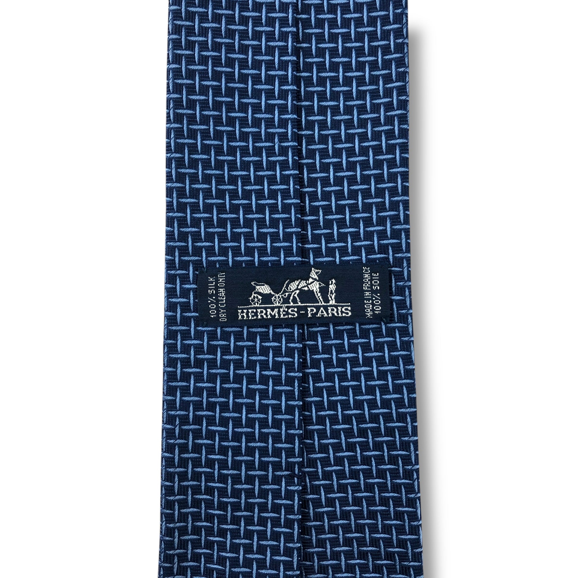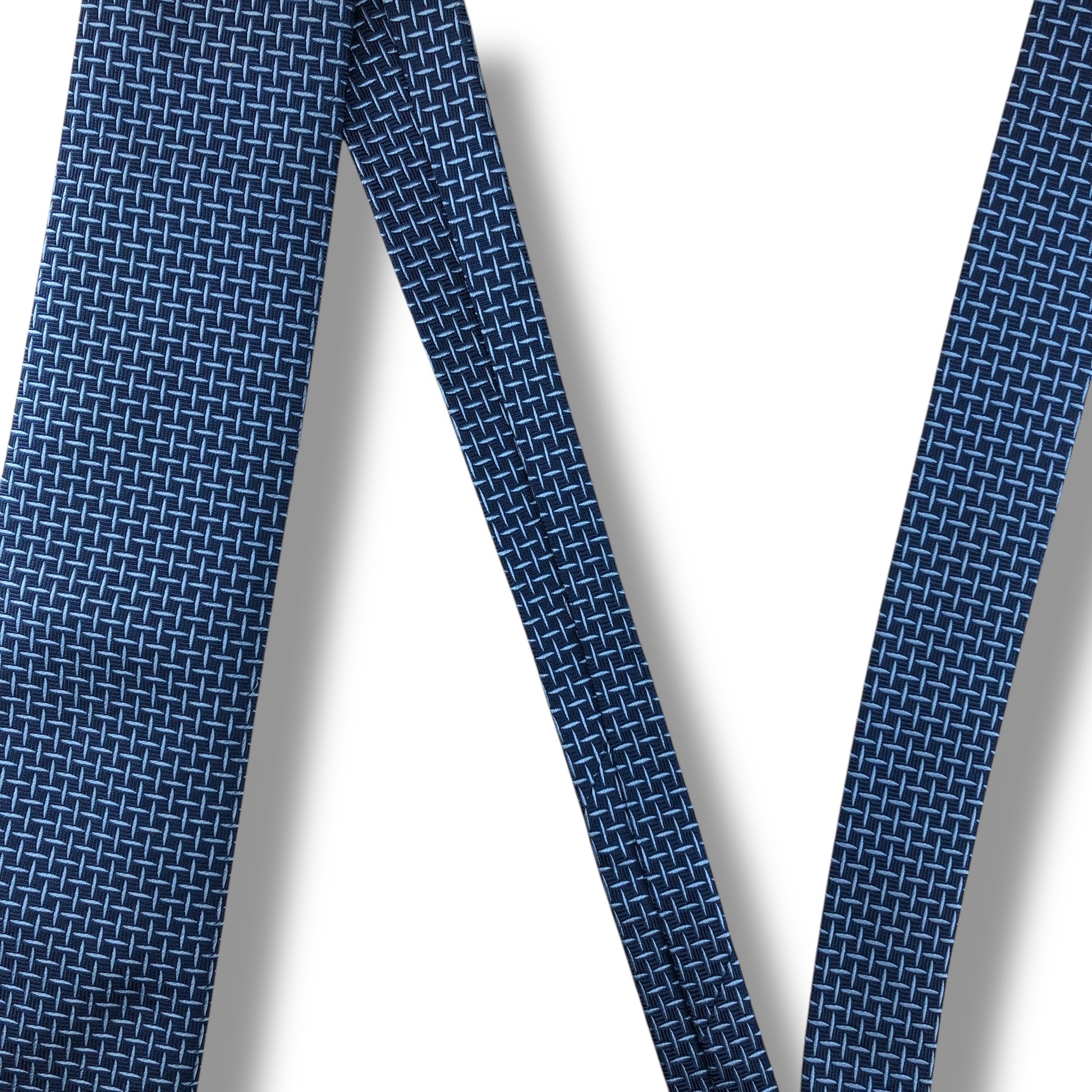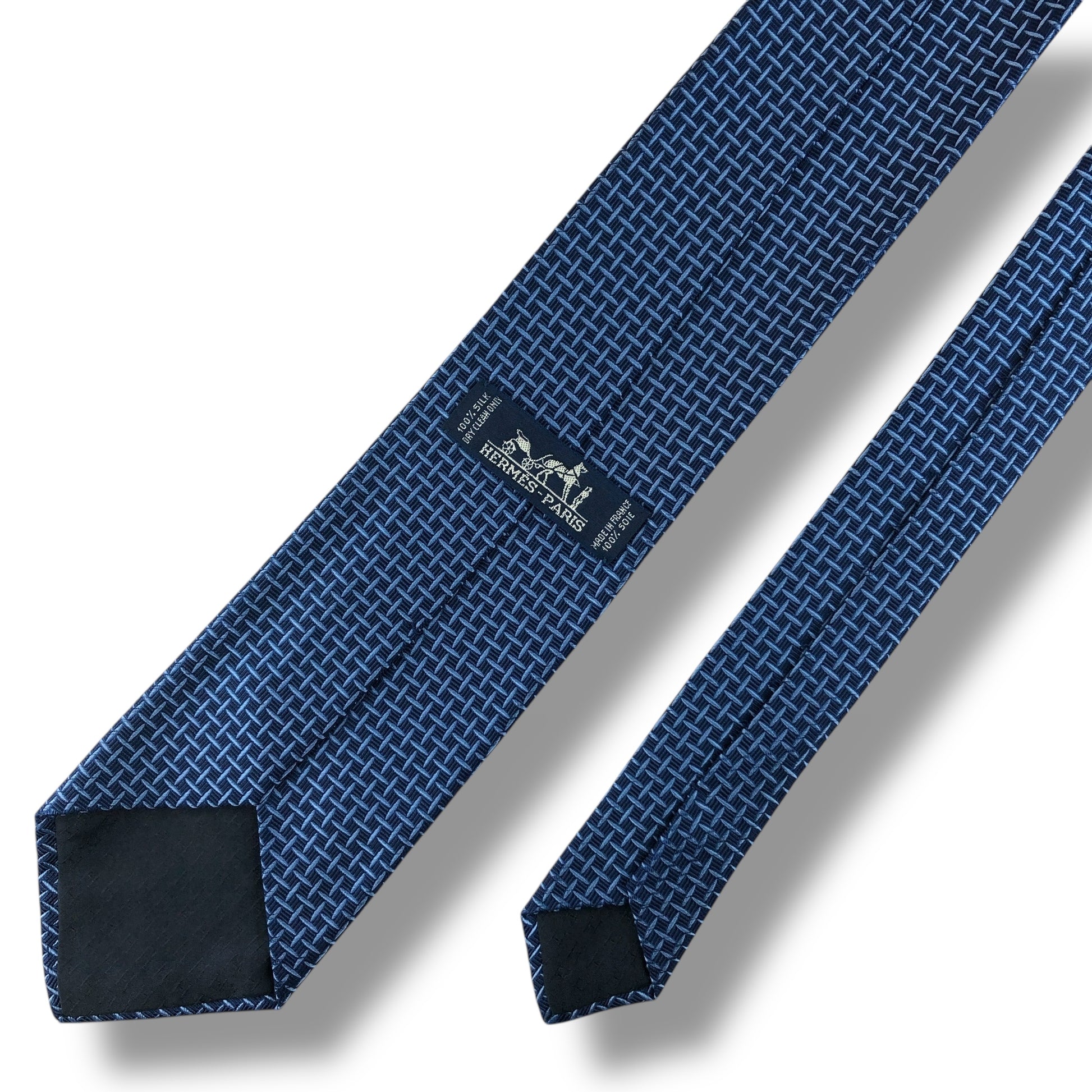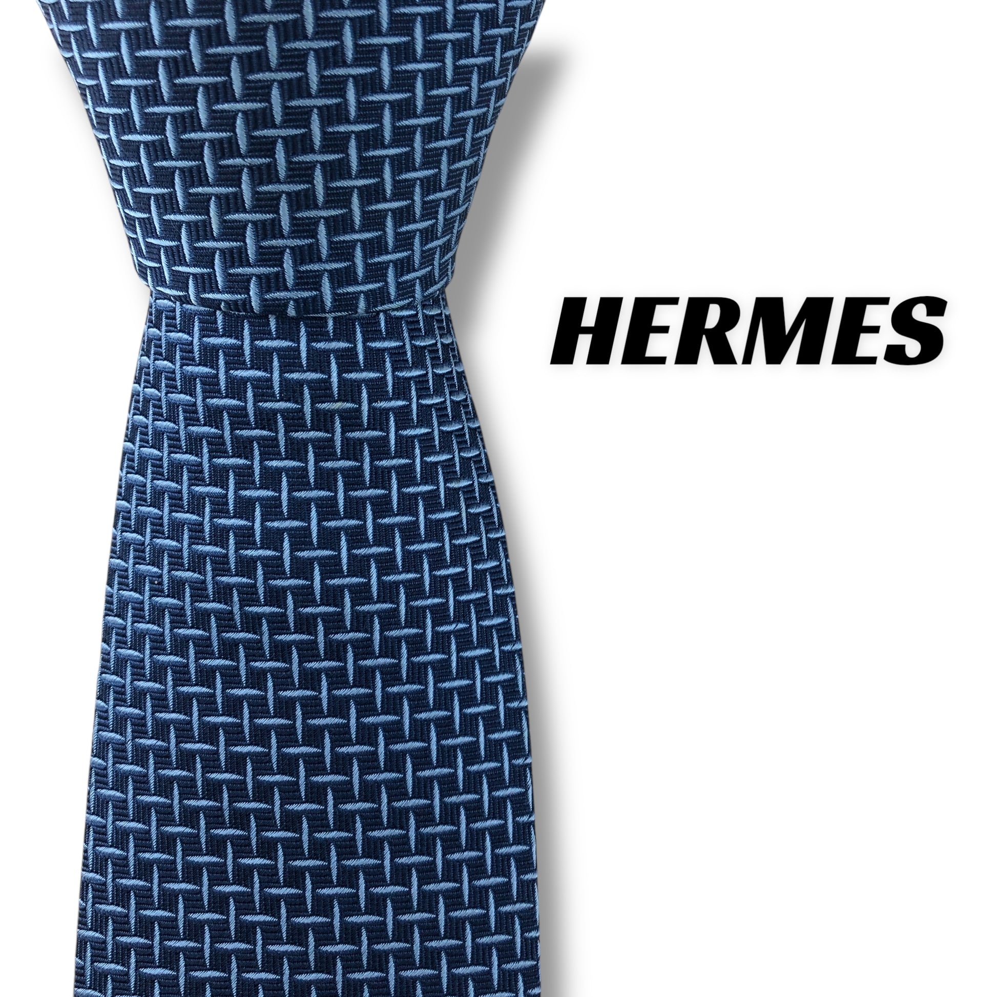 【7656】美品ー良品!エルメス ネクタイ ブルー系 H柄