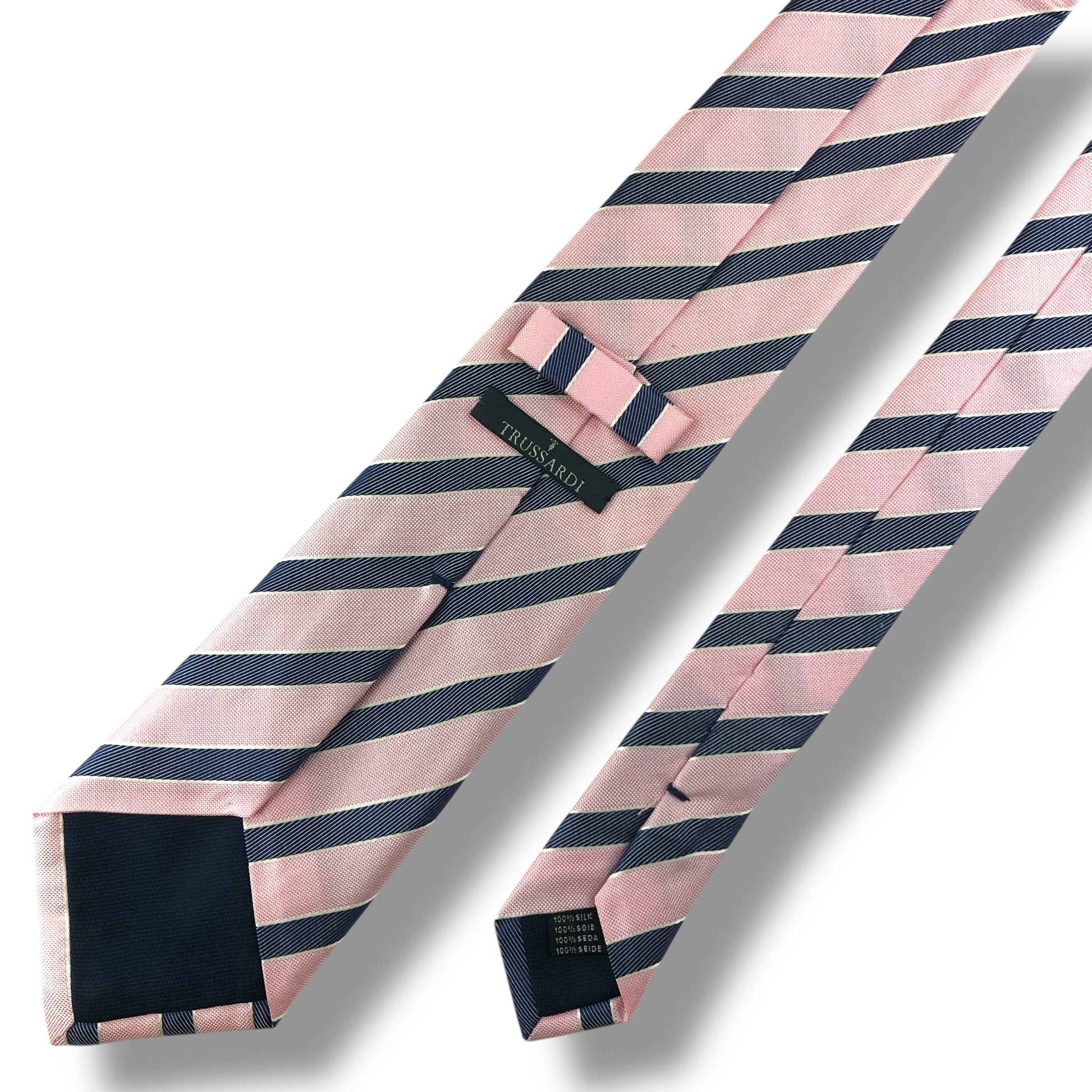 【7684】美品!トラサルディ ネクタイ ピンク系 ストライプ柄