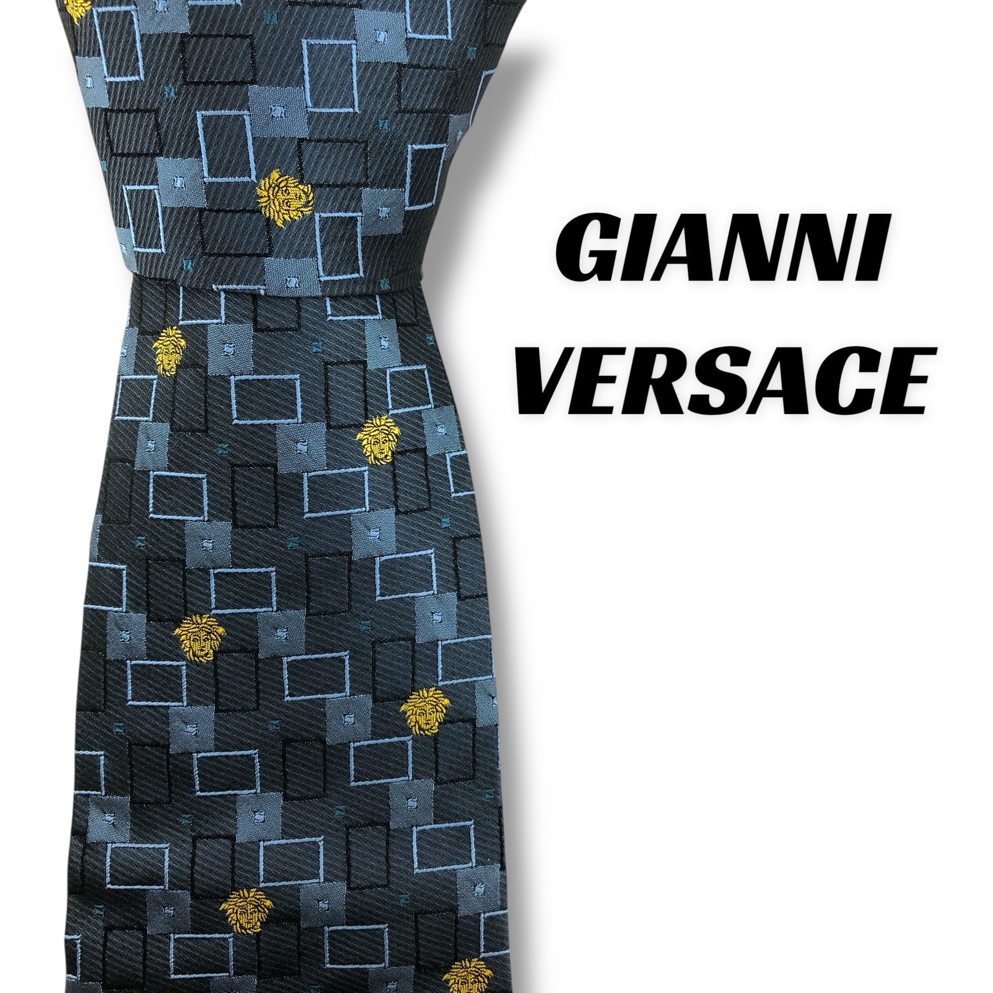 【7726】美品!ヴェルサーチ ネクタイ メデューサ ブルー系