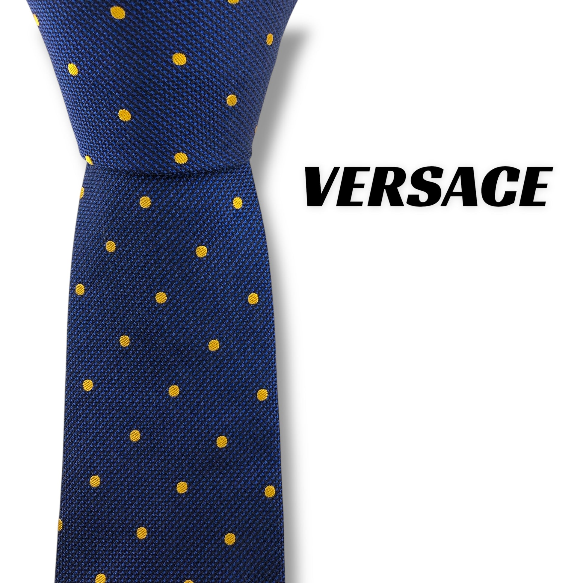 【7727】美品!ヴェルサーチ ネクタイ ブルー系 ドット柄