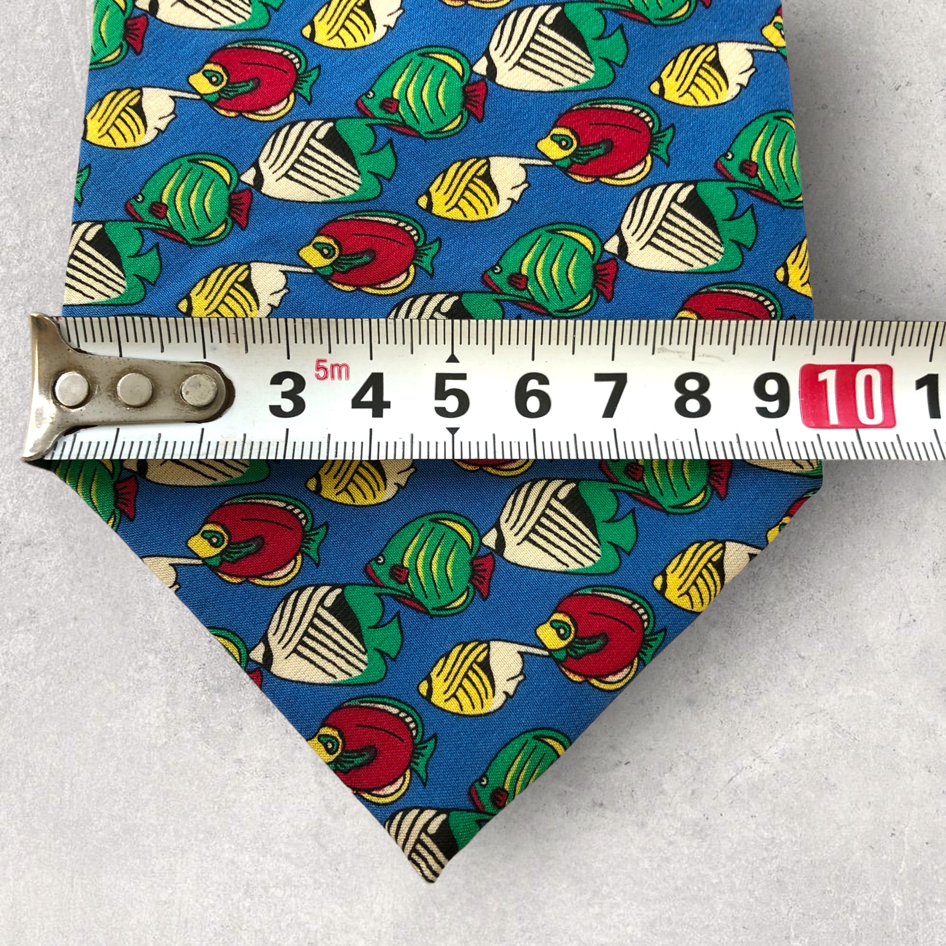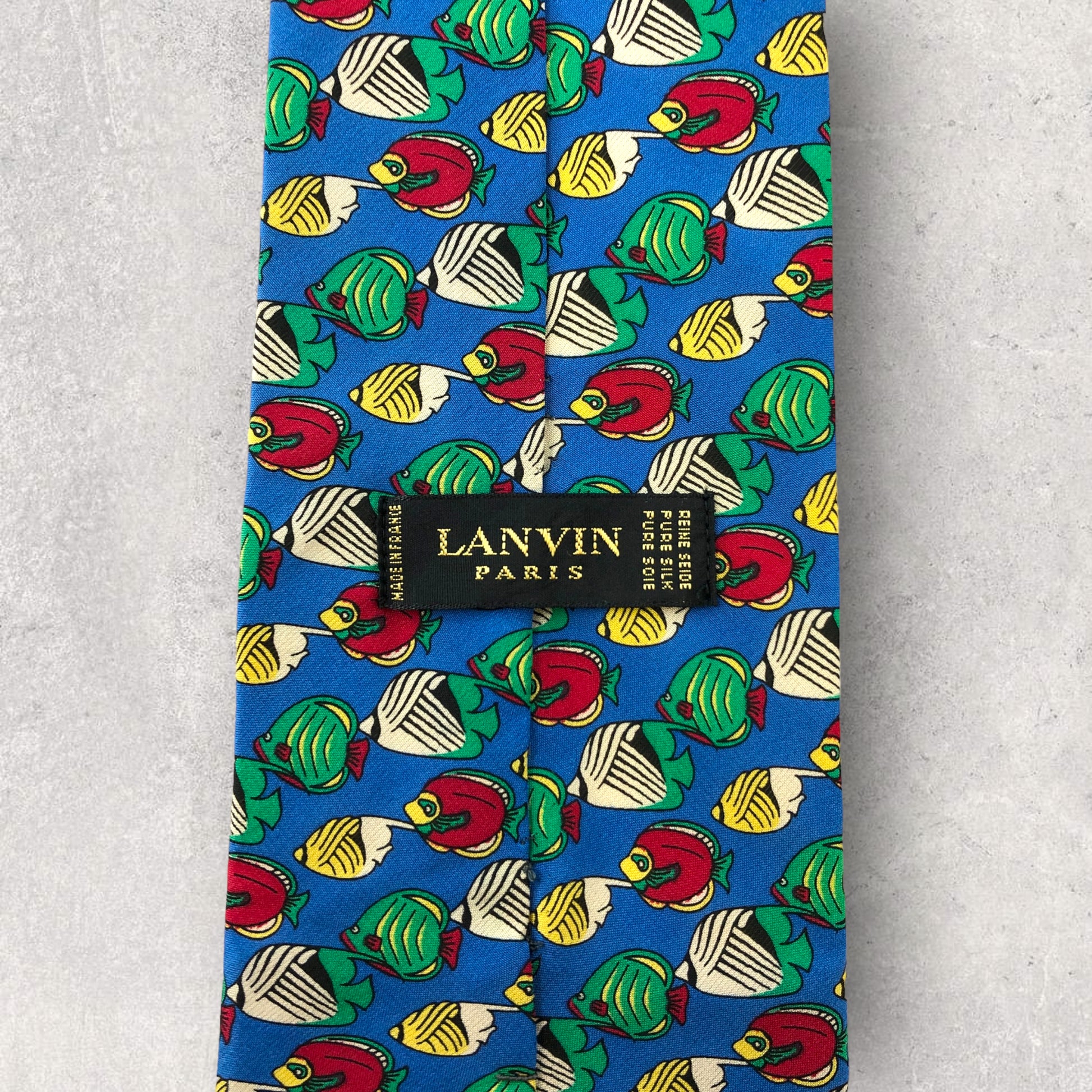 [5638] Good quality! LANVIN necktie, blue, fish pattern