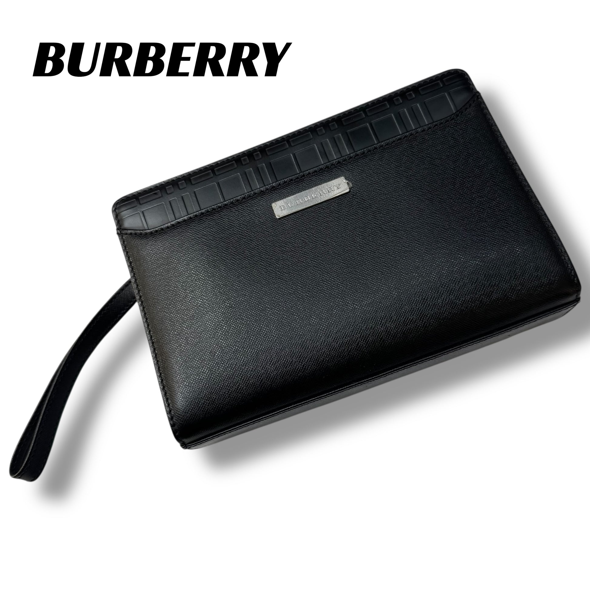 【美品】(1)バーバリー セカンドバッグ クラッチバッグ サフィアーノ 黒