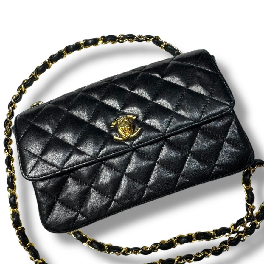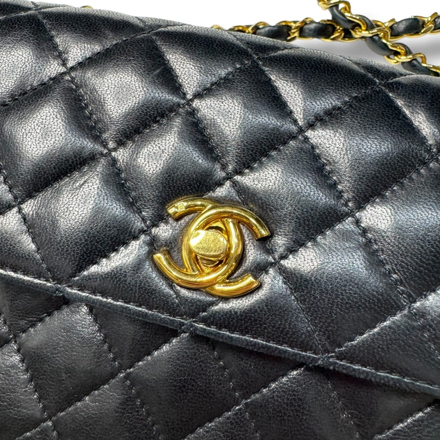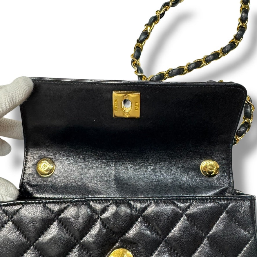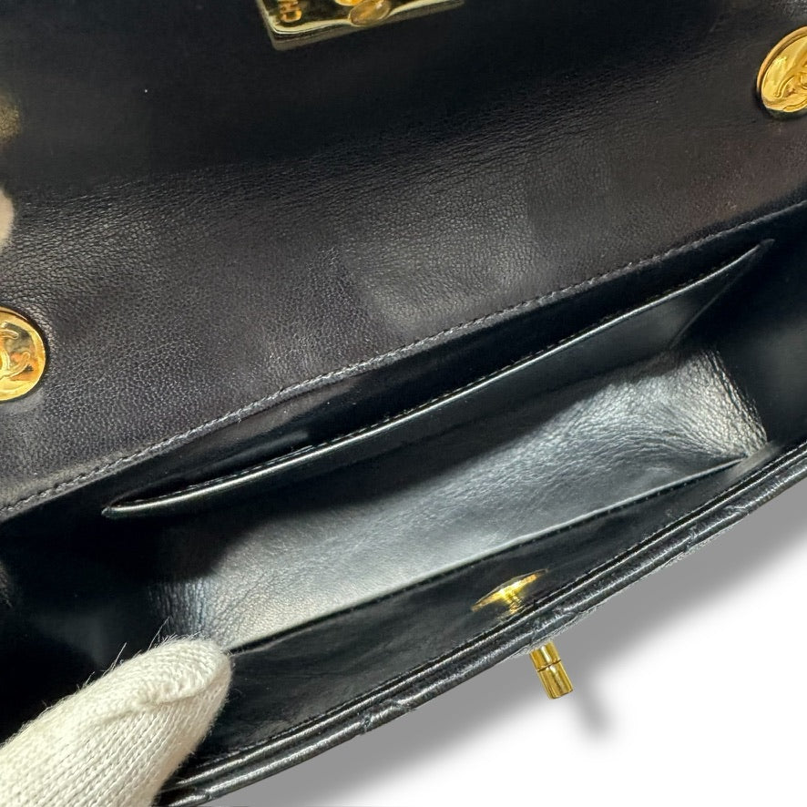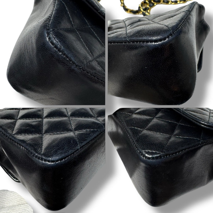 【良品】シャネル ミニマトラッセ チェーンショルダーバッグ ブラック ラムスキン