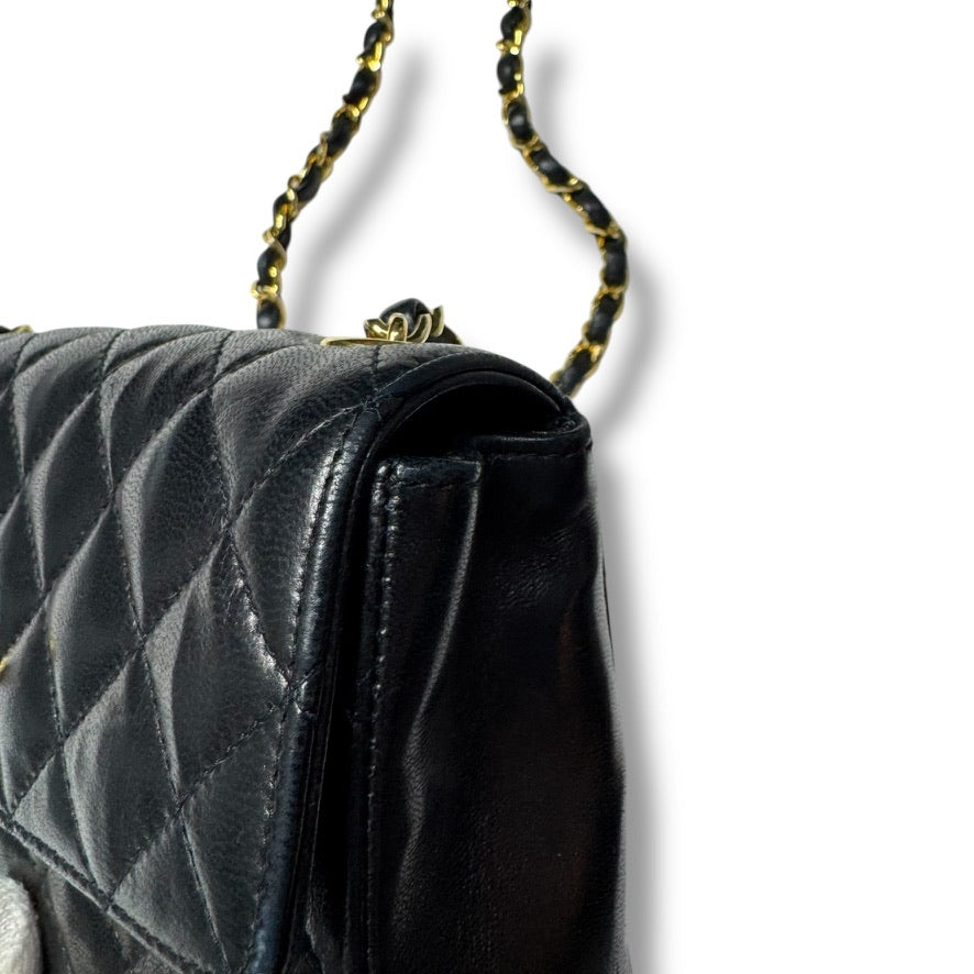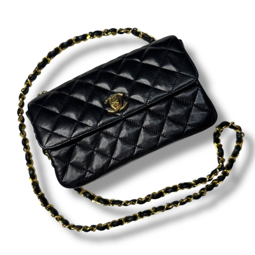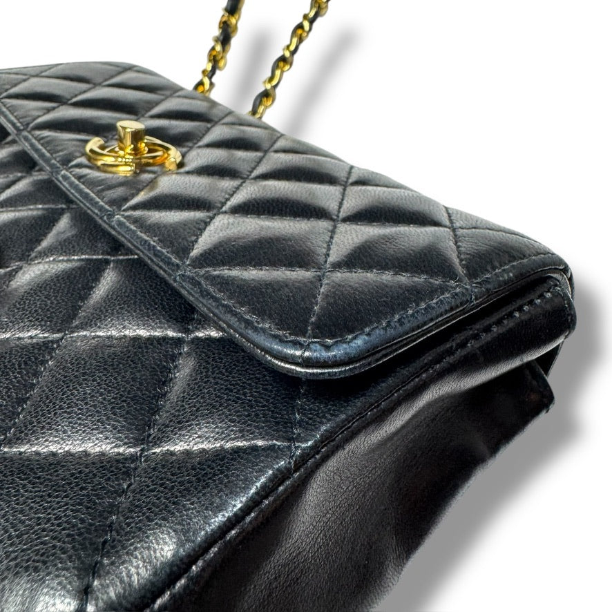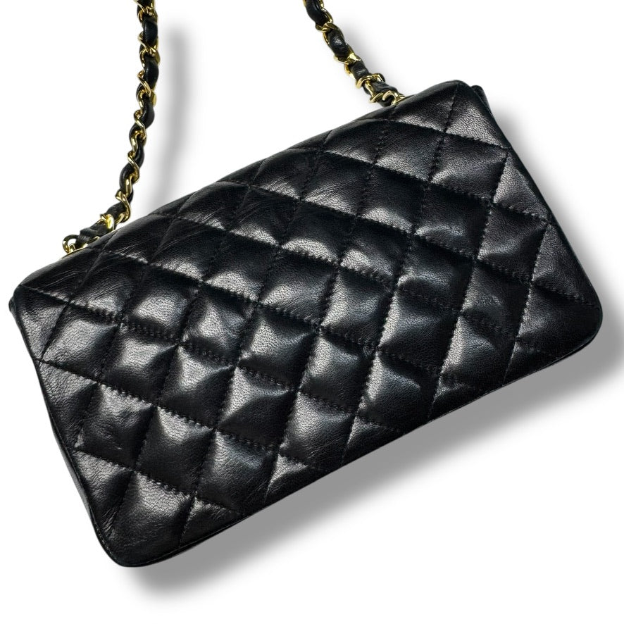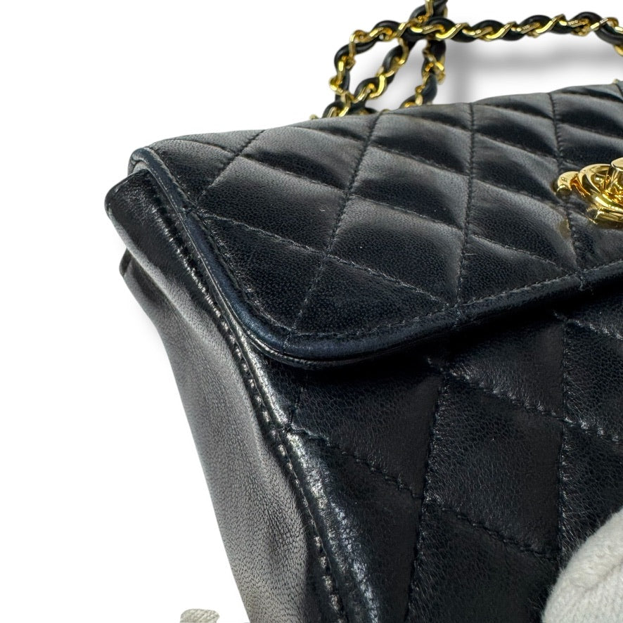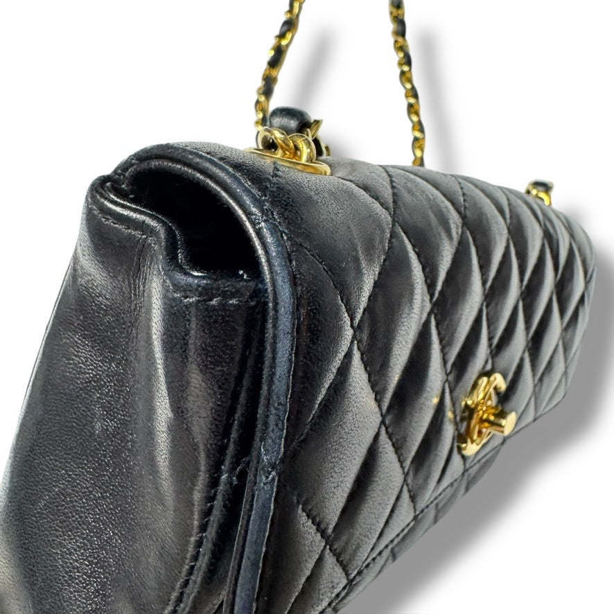 【良品】シャネル ミニマトラッセ チェーンショルダーバッグ ブラック ラムスキン