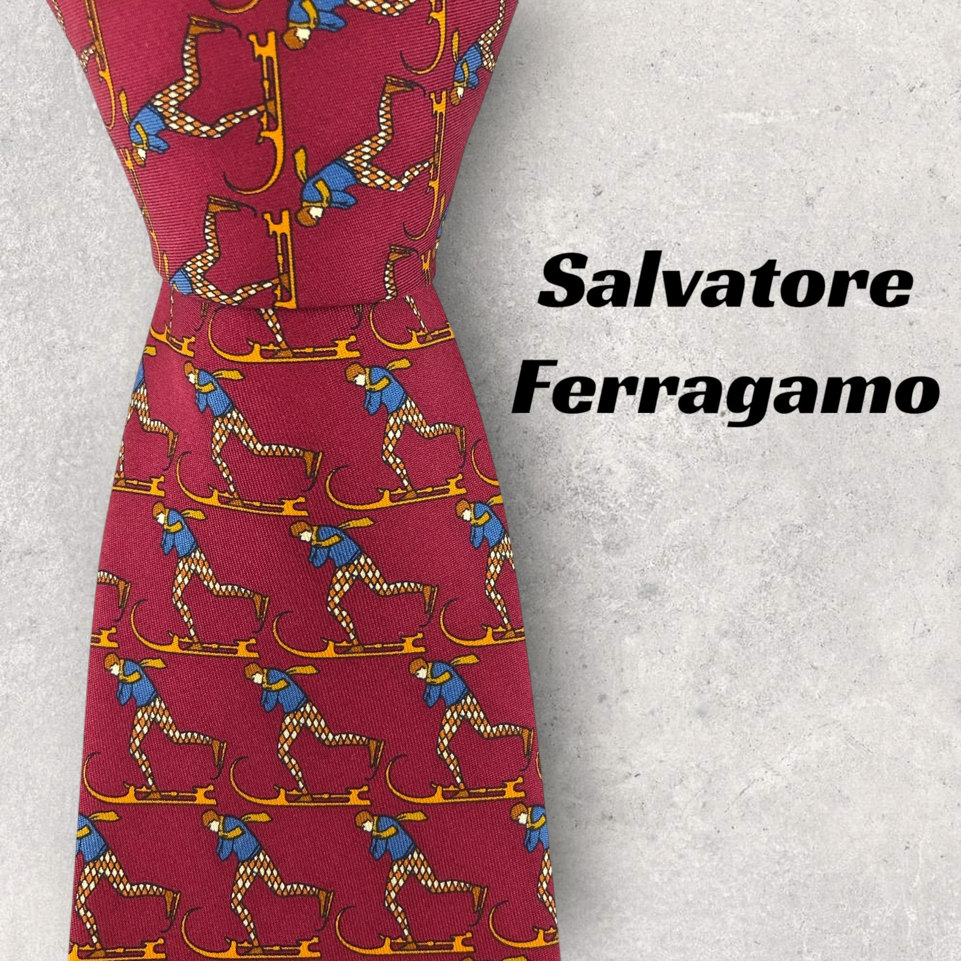 【6960】美品!サルヴァドーレフェラガモ ネクタイ レッド系