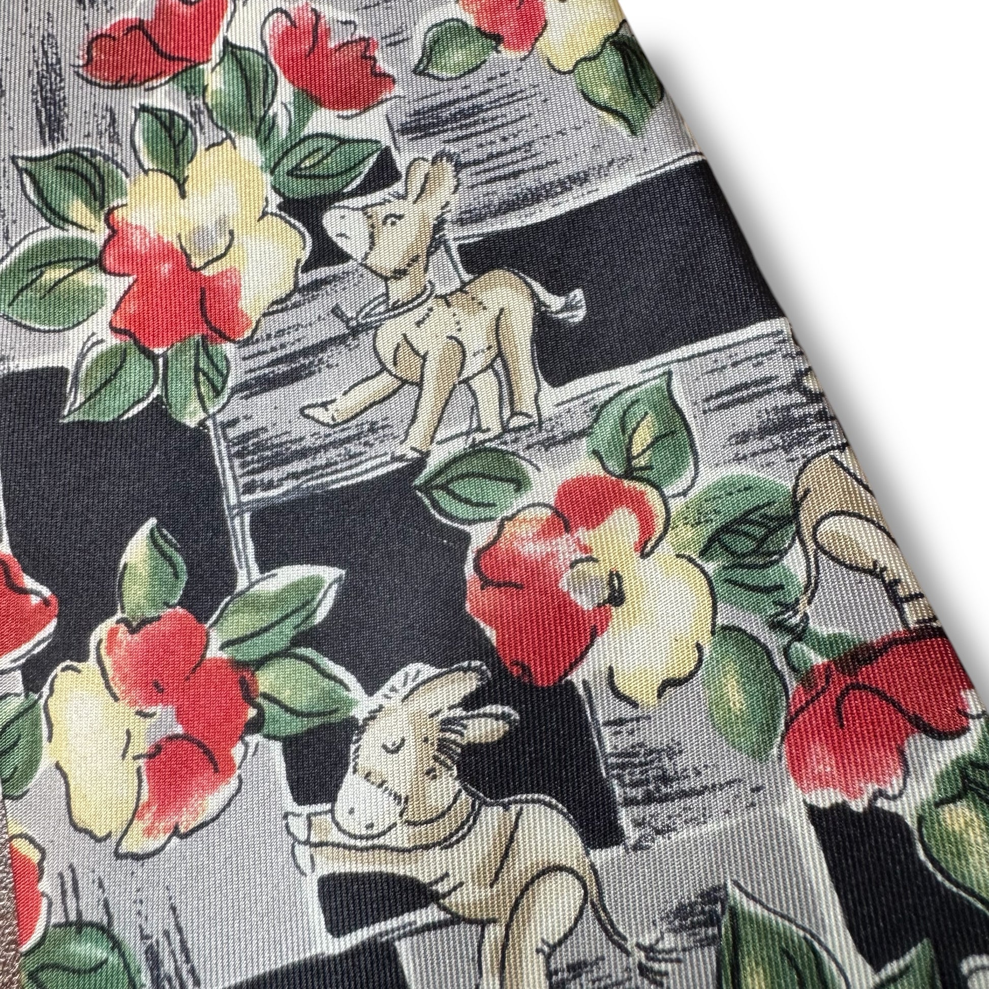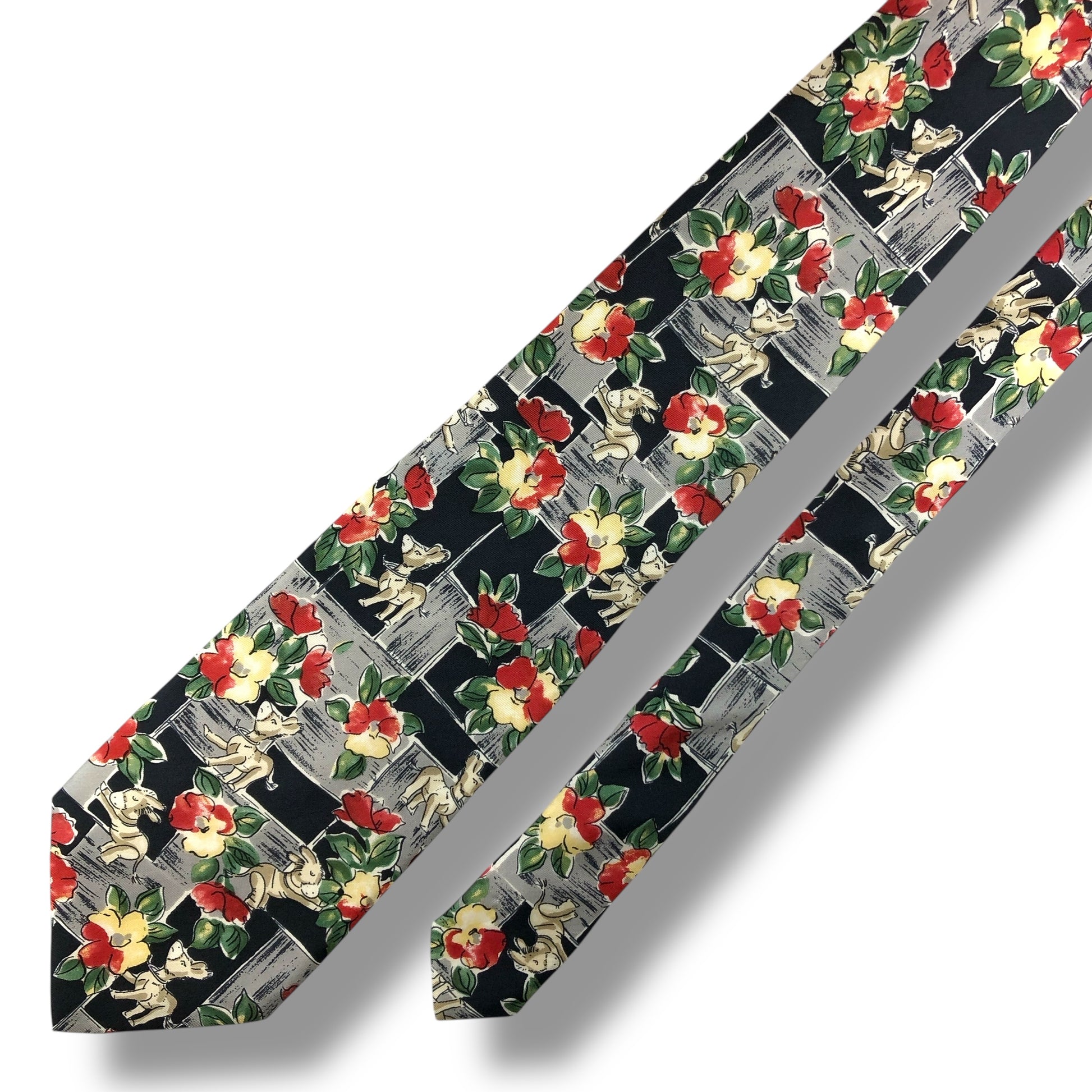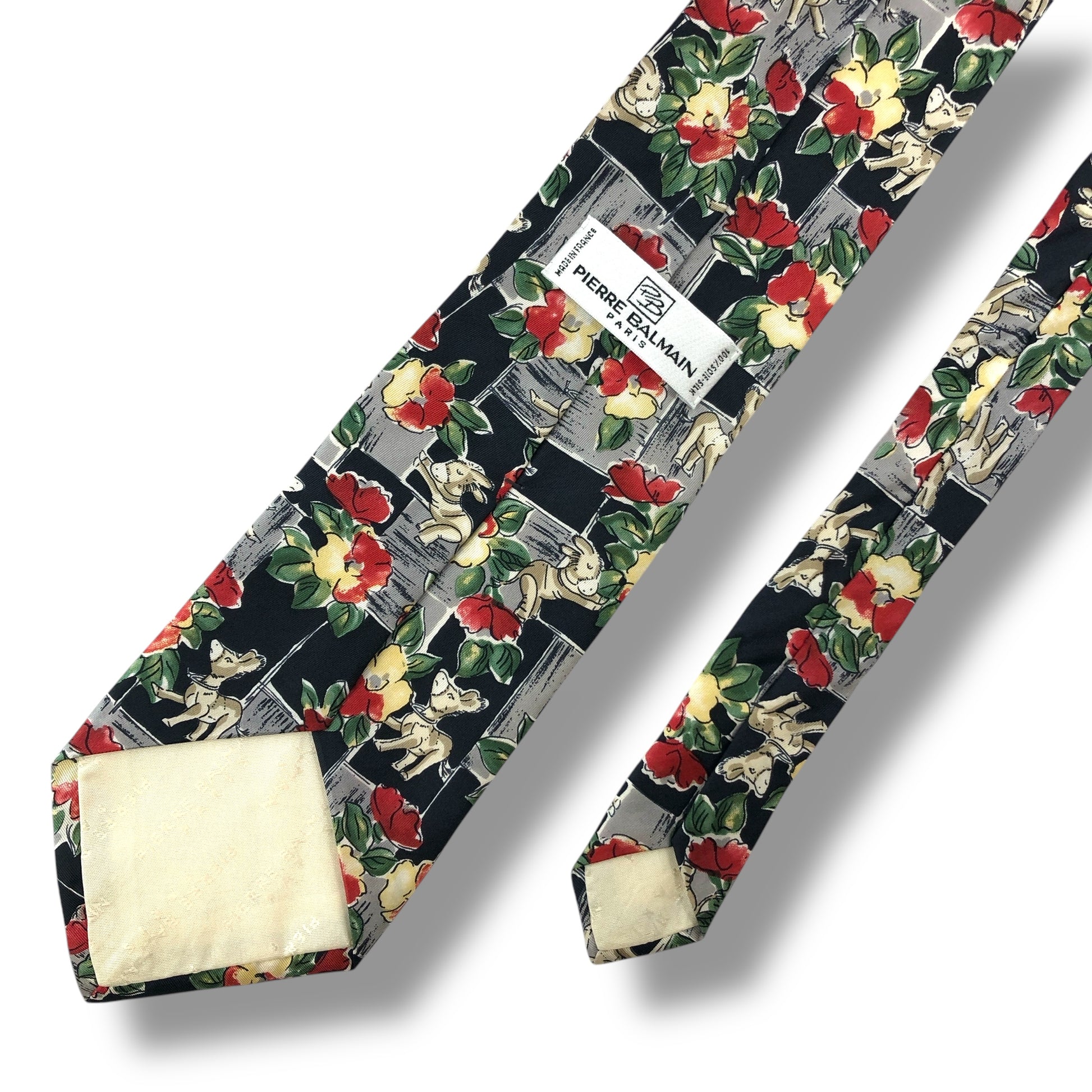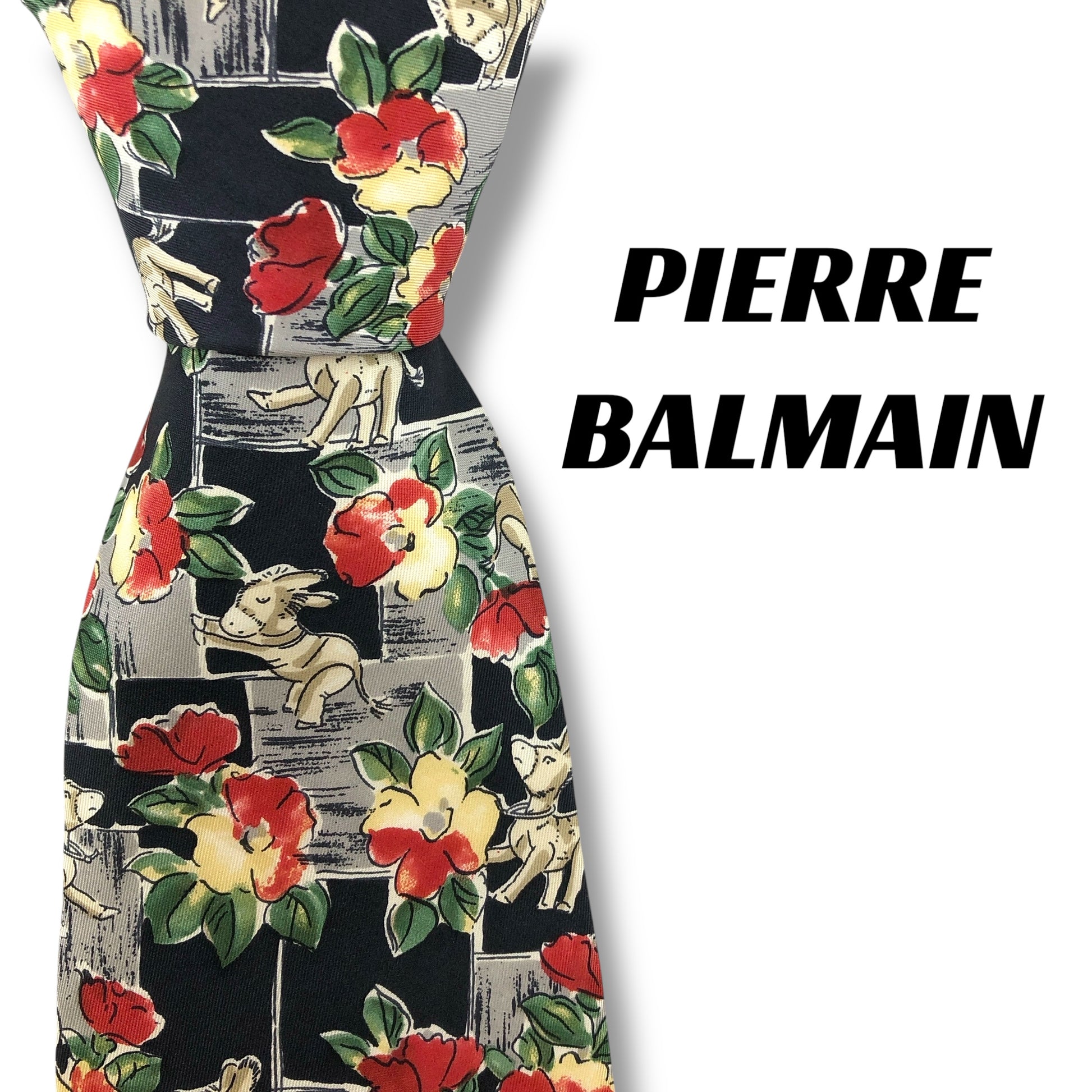 【6998】良品!ピエールバルマン ネクタイ ブラック系 花柄