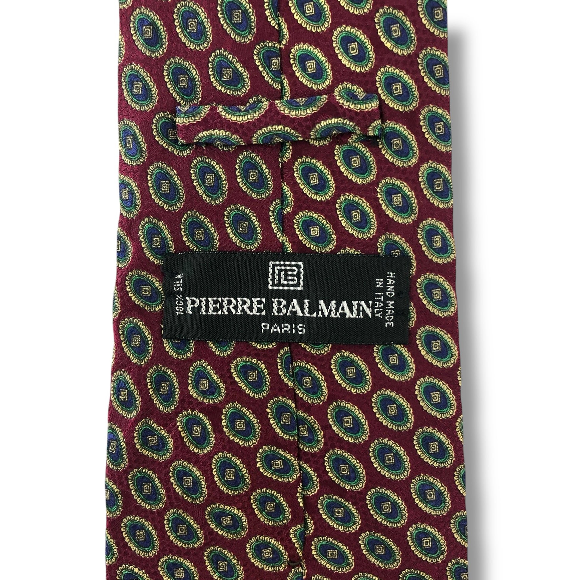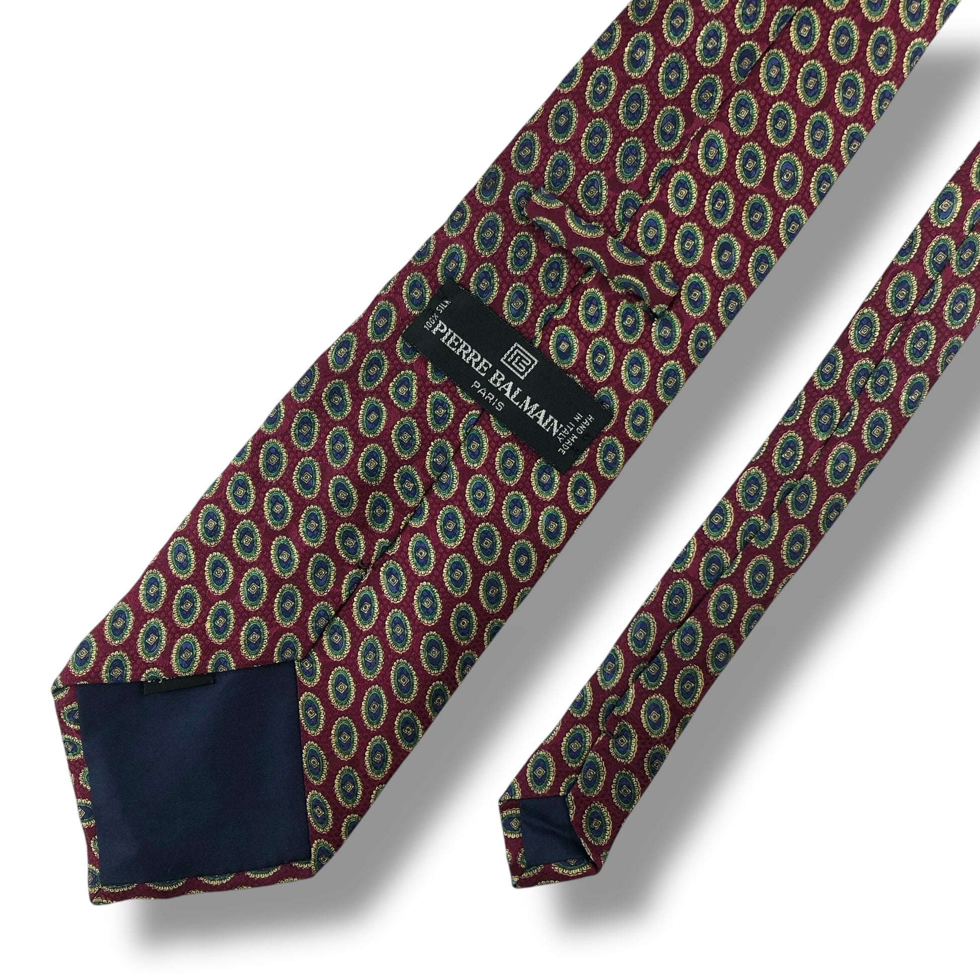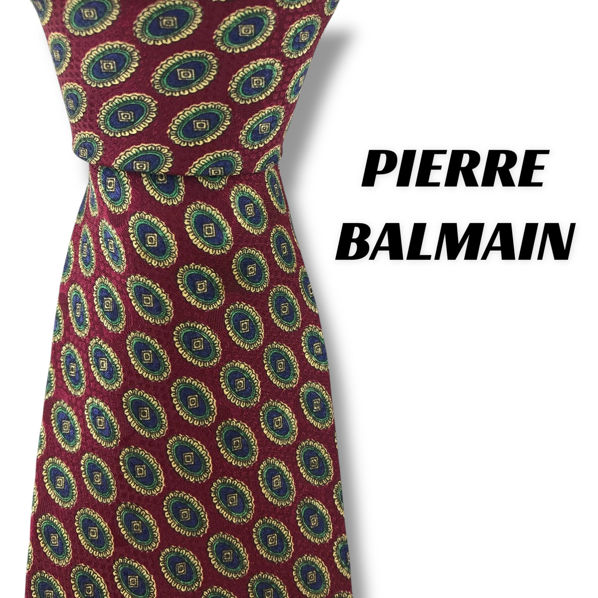 【7079】良品!ピエールバルマン ネクタイ レッド系 バーガンディー系