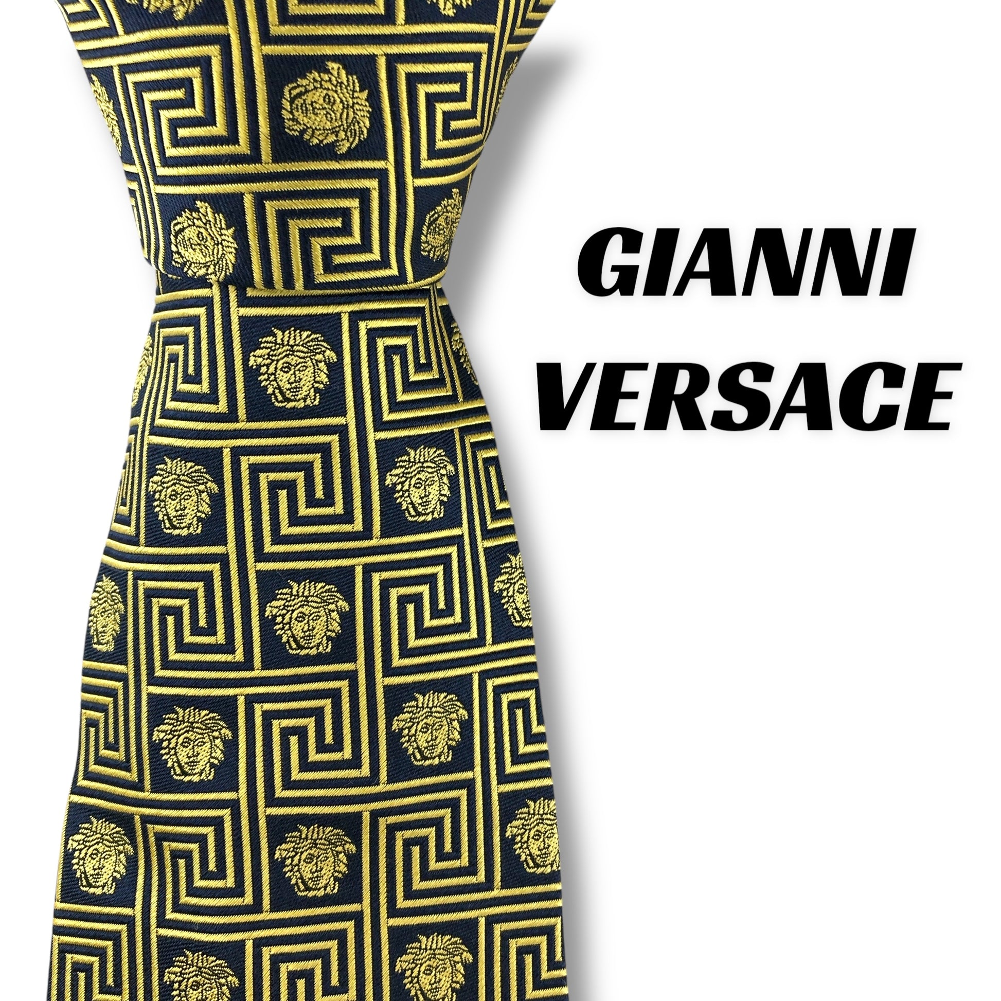 【7098】美品!ジャンニヴェルサーチ ネクタイ ネイビー系 ゴールド系