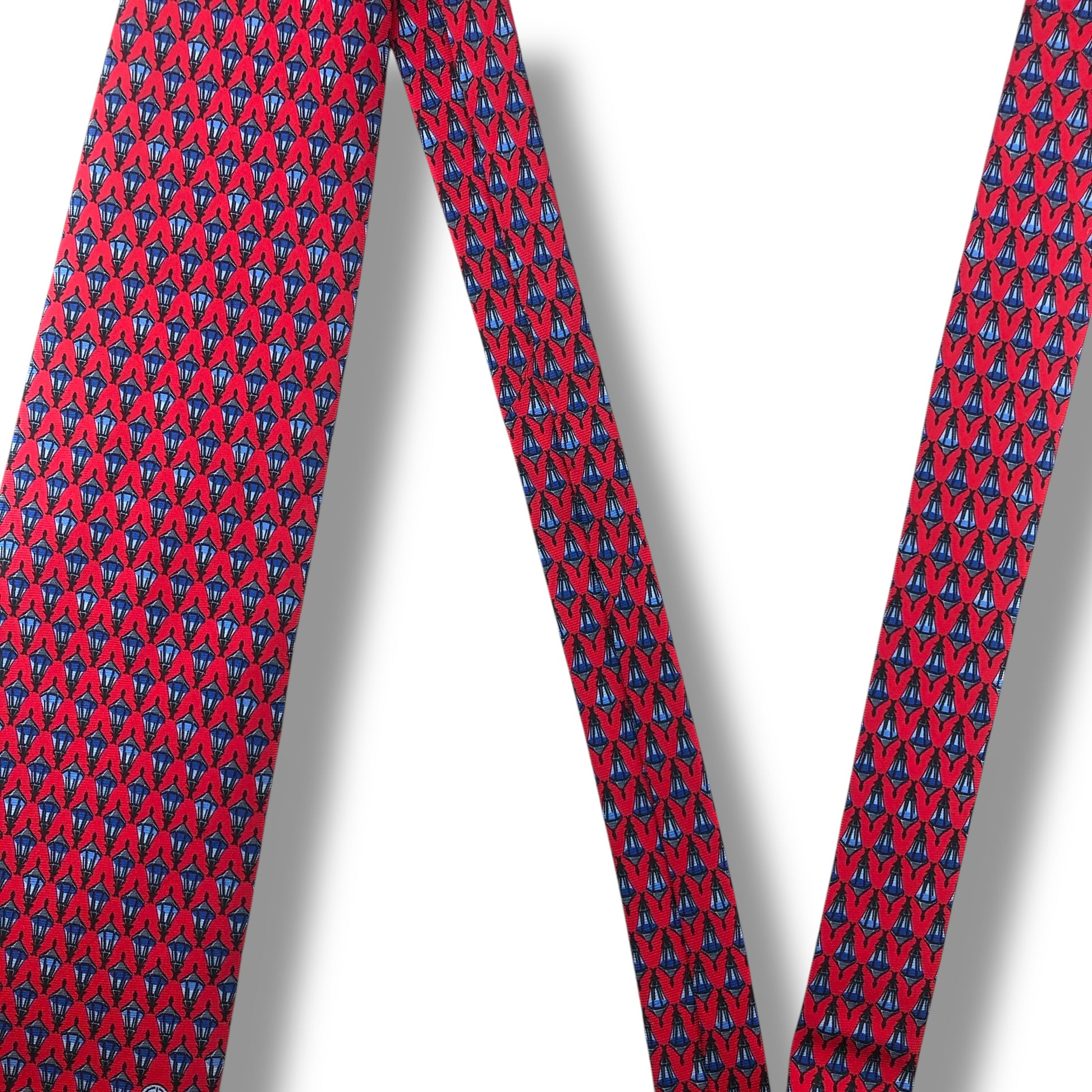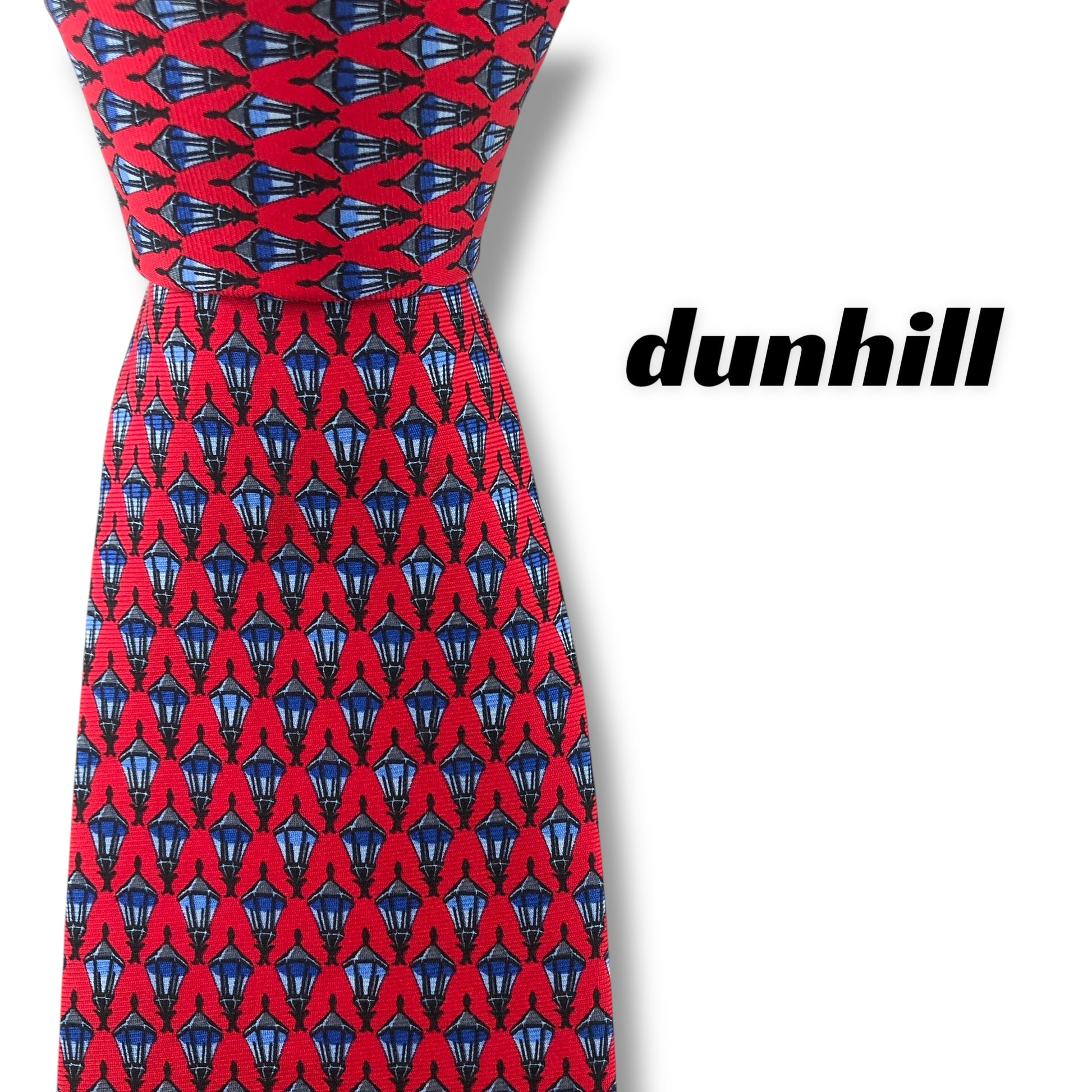 【7117】美品!ダンヒル ネクタイ レッド系 ライト柄