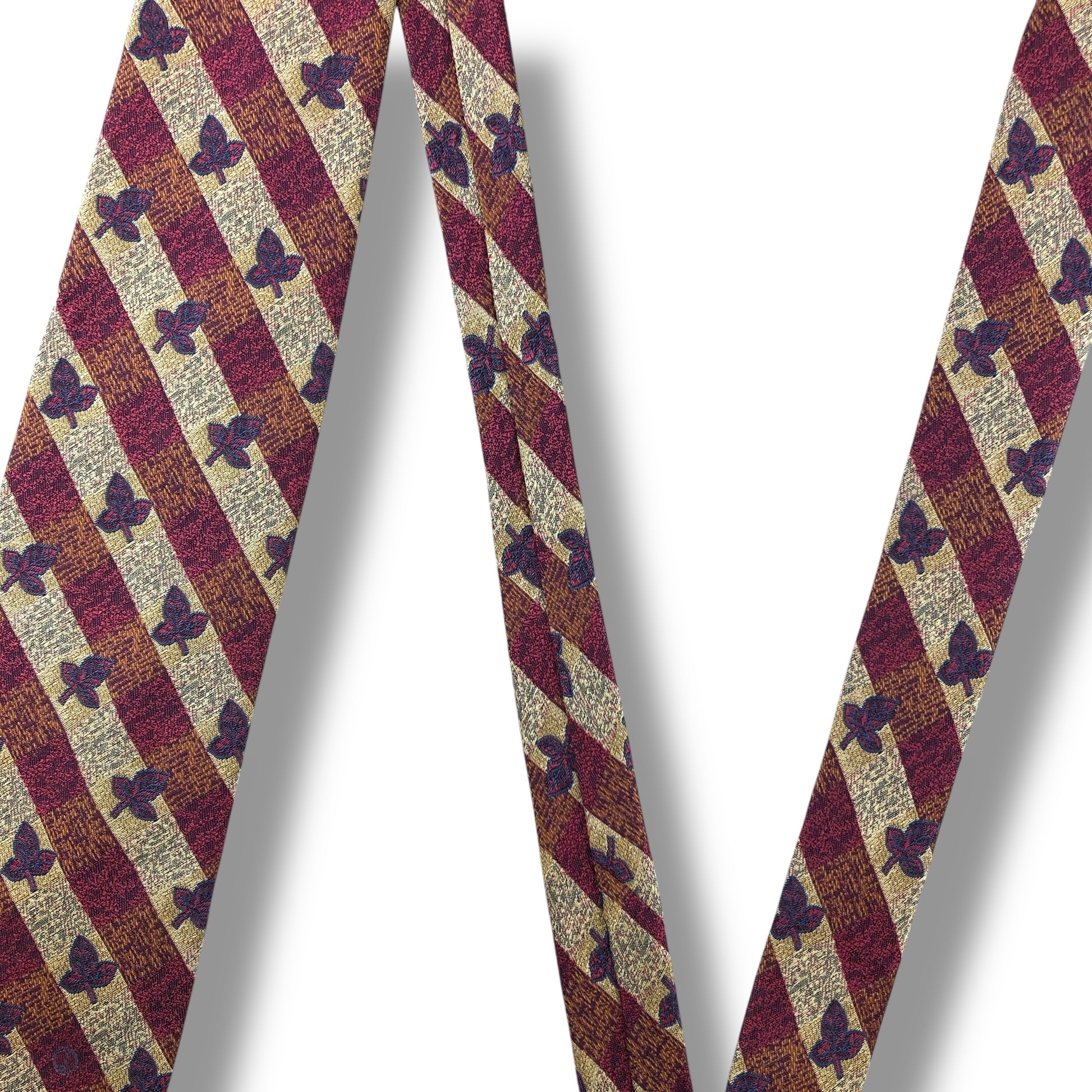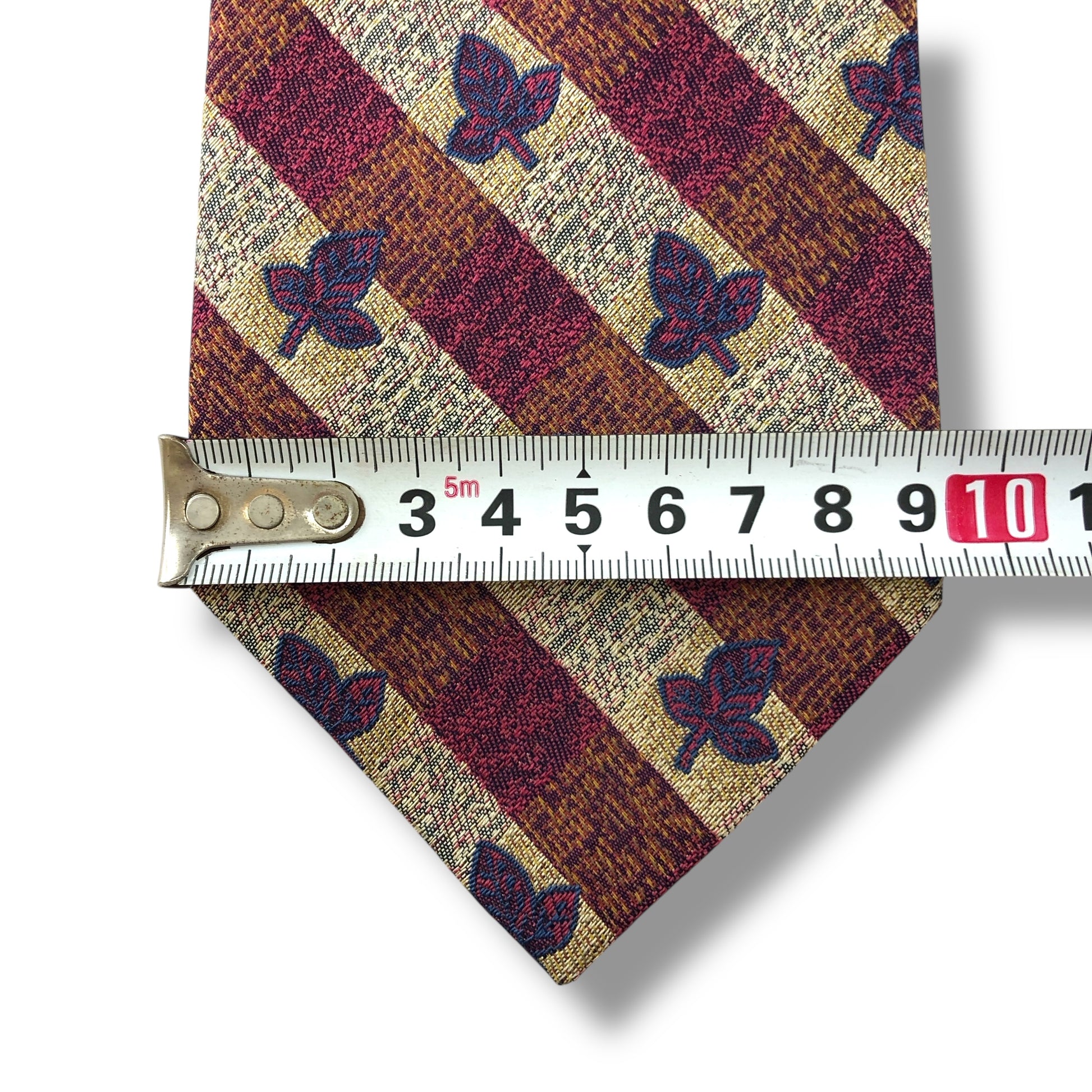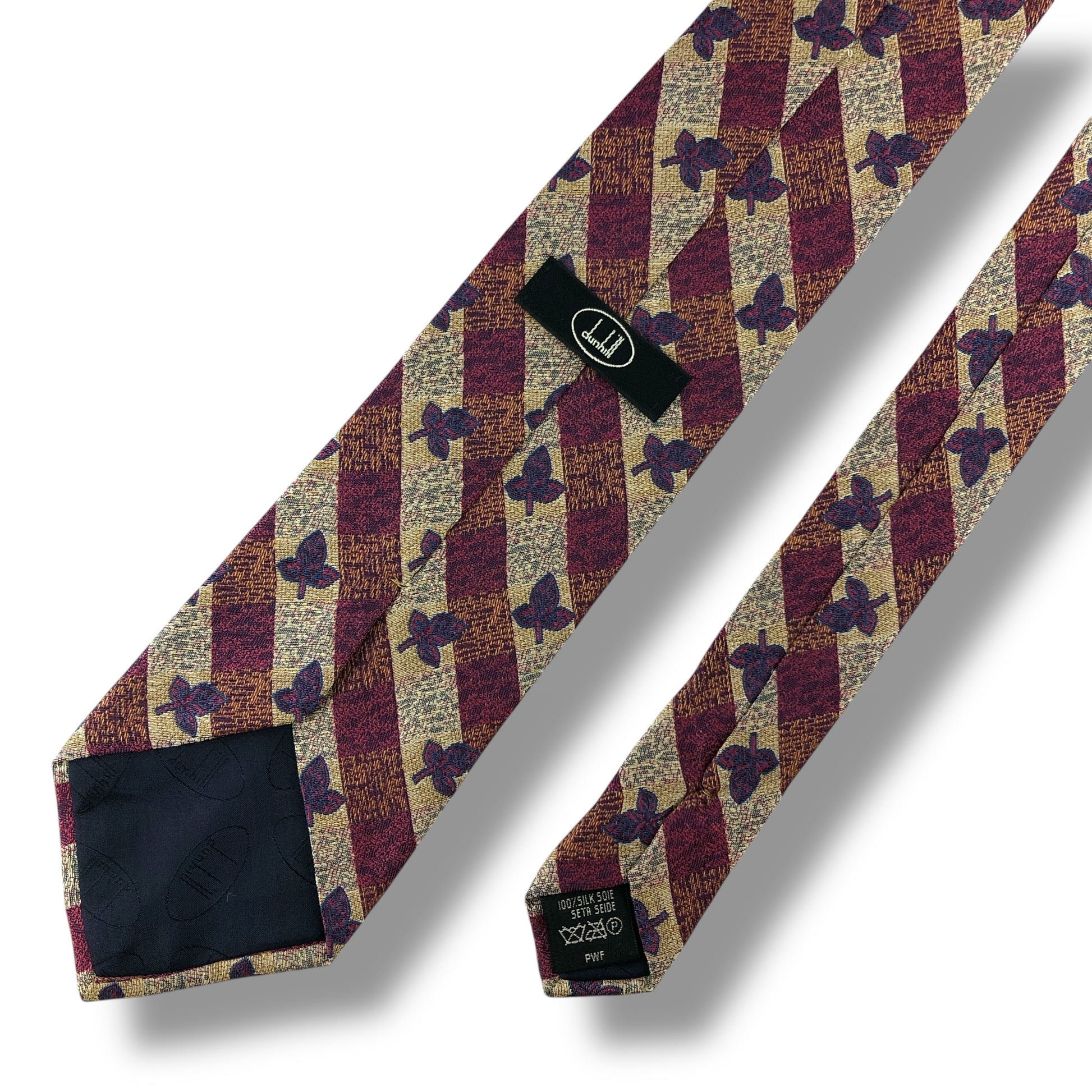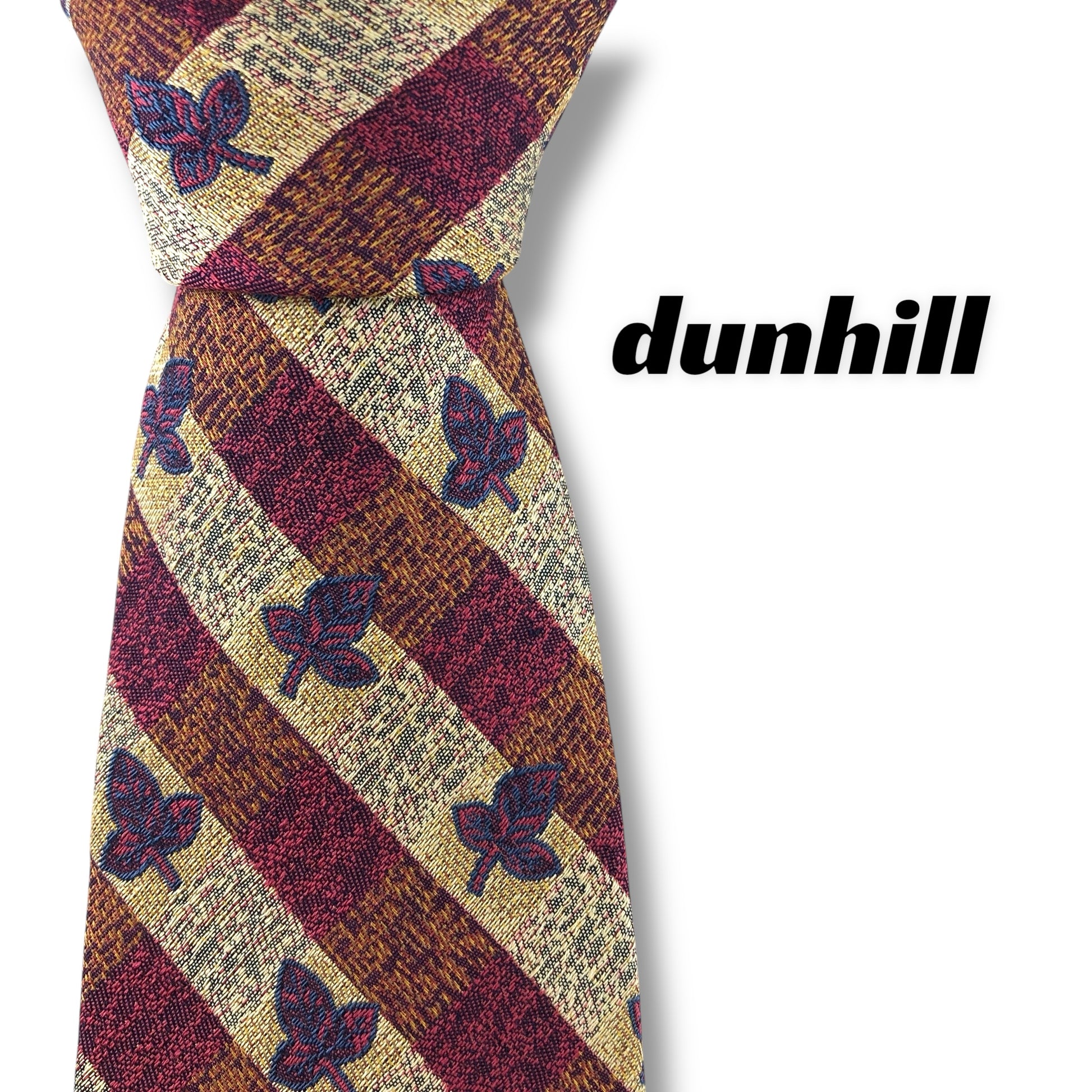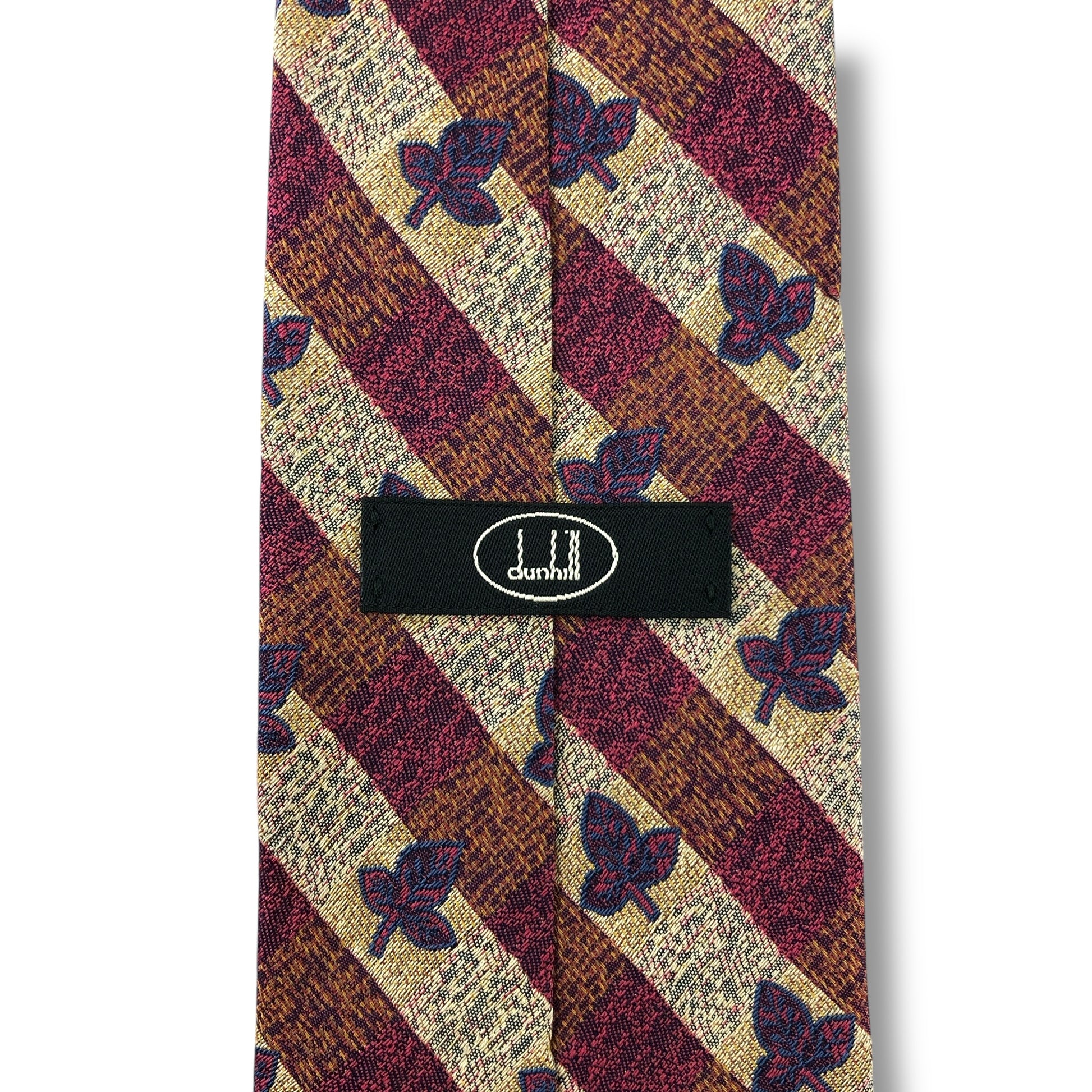 【7176】美品!ダンヒル ネクタイ レッド系 葉っぱ柄