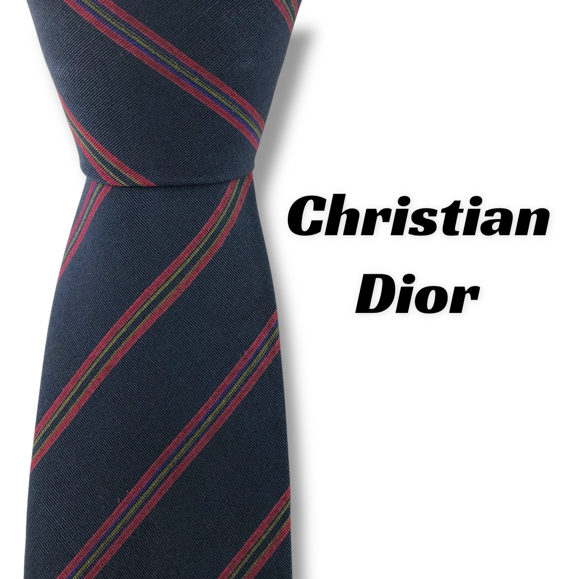 【7200】良品!クリスチャンディオール ネクタイ ネイビー系