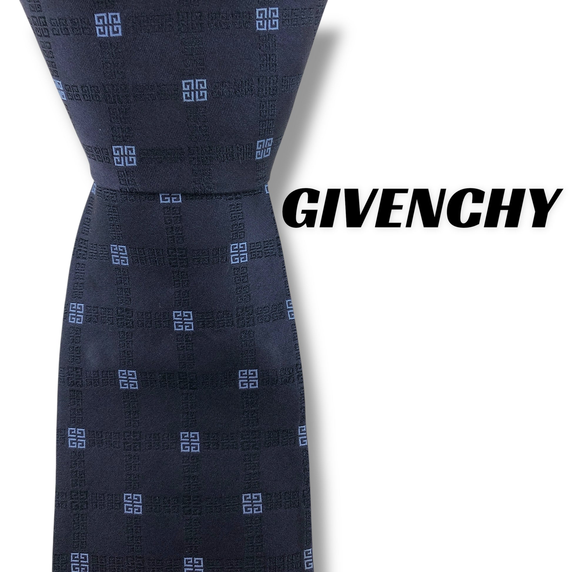 【7484】良品!ジバンシー ネクタイ ネイビー系 4G柄