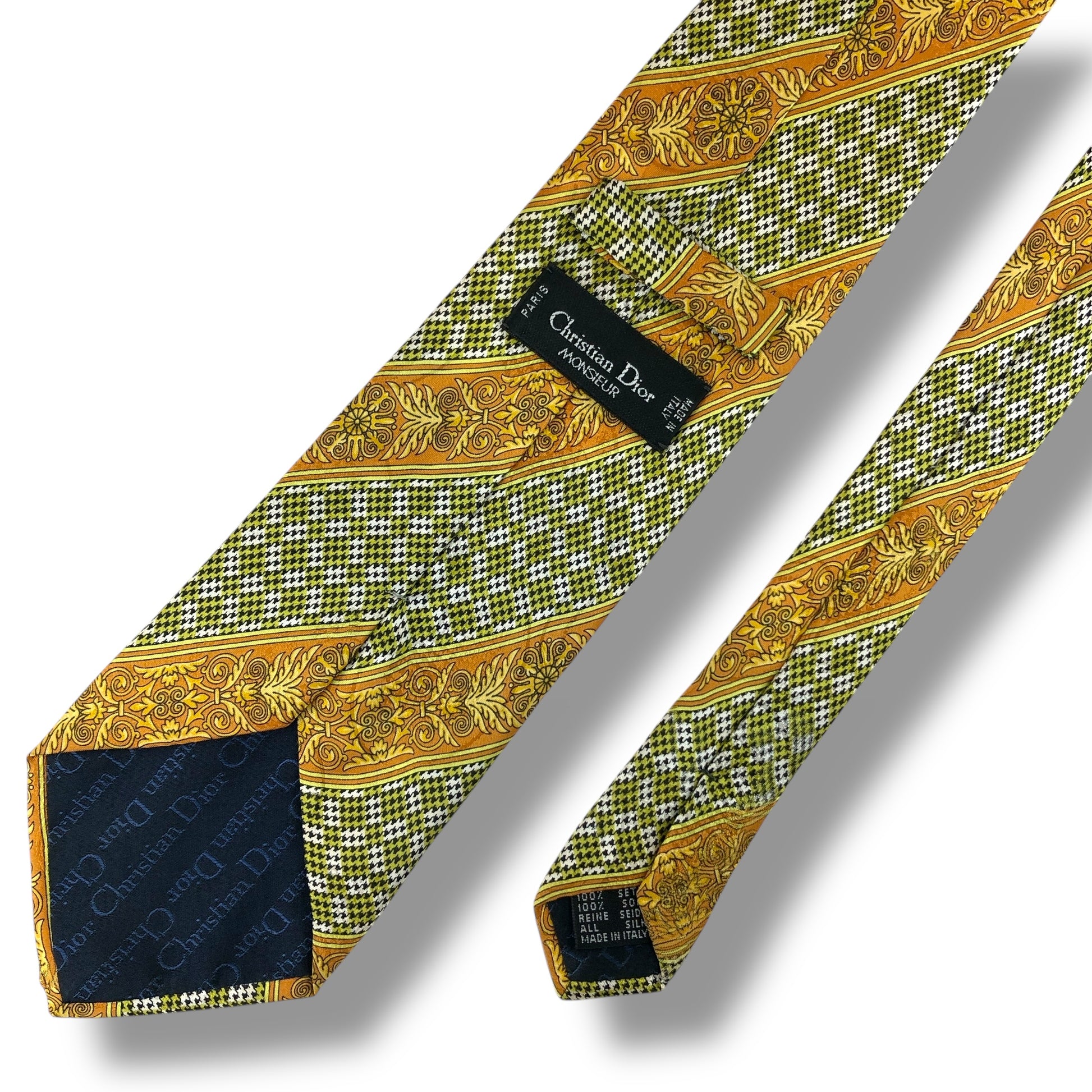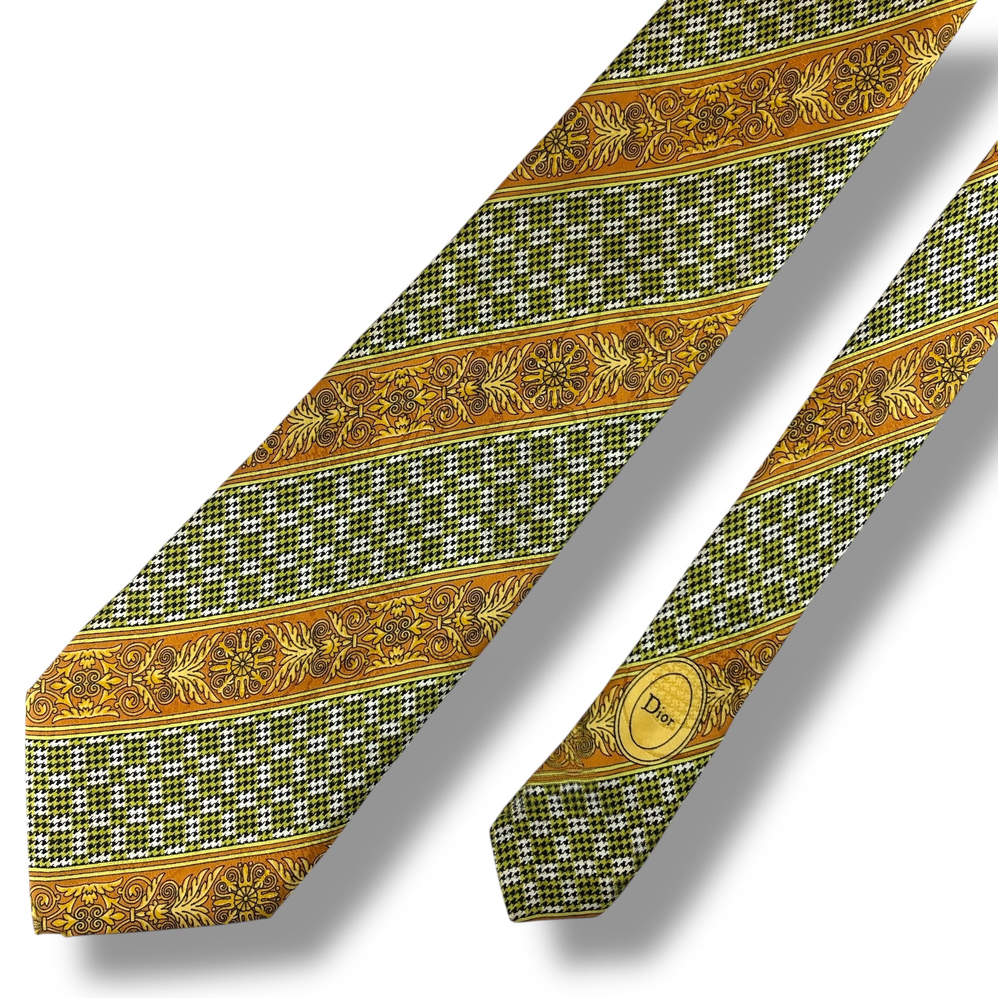 【7515】良品!クリスチャンディオール ネクタイ 黄緑系 オレンジ系