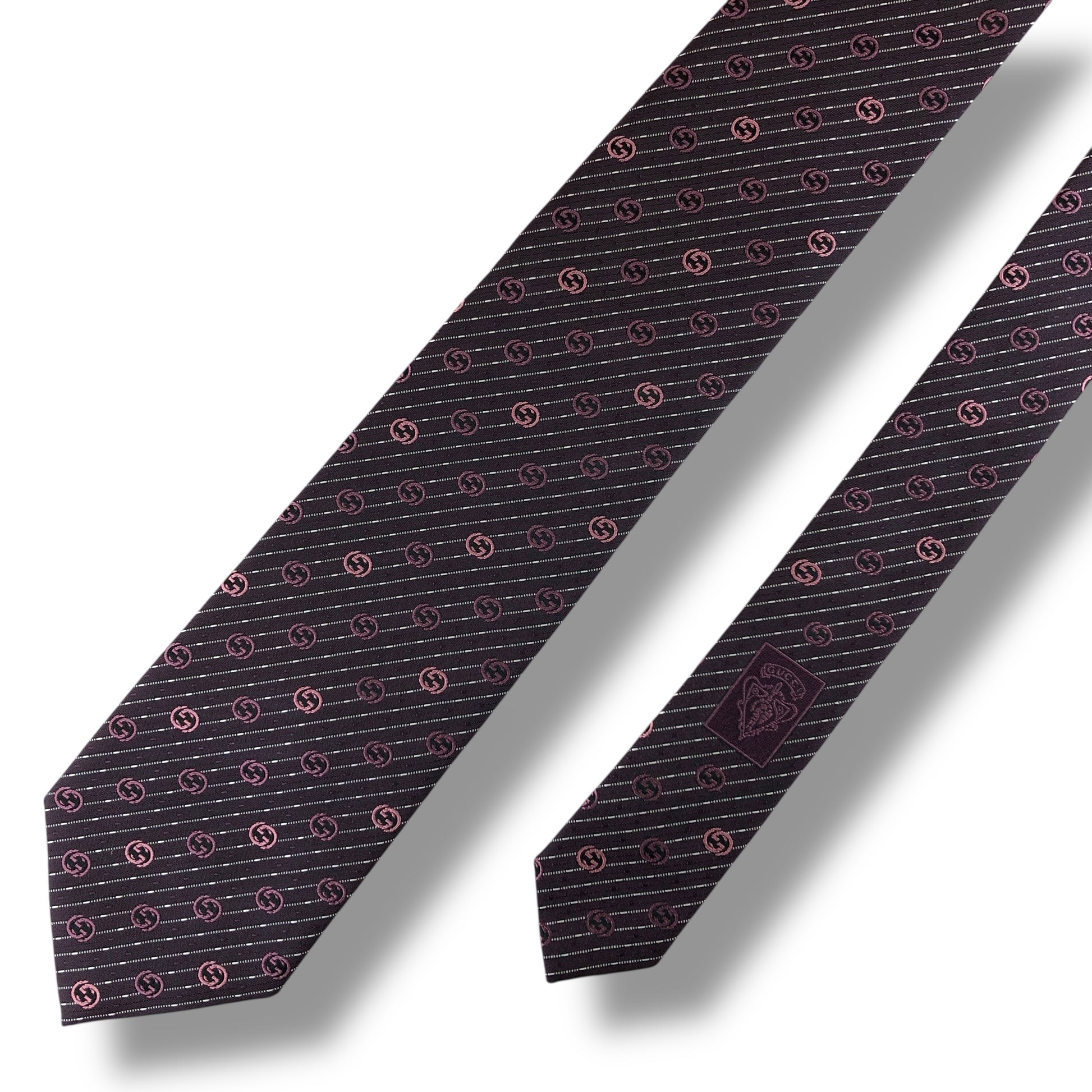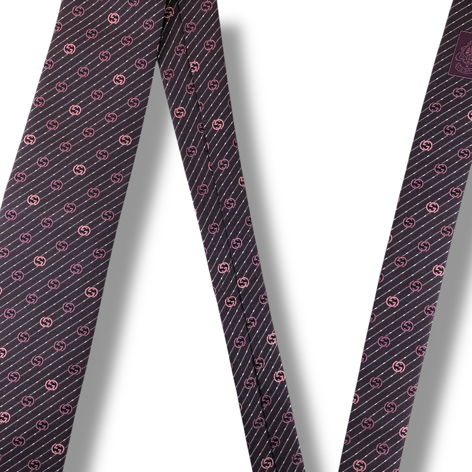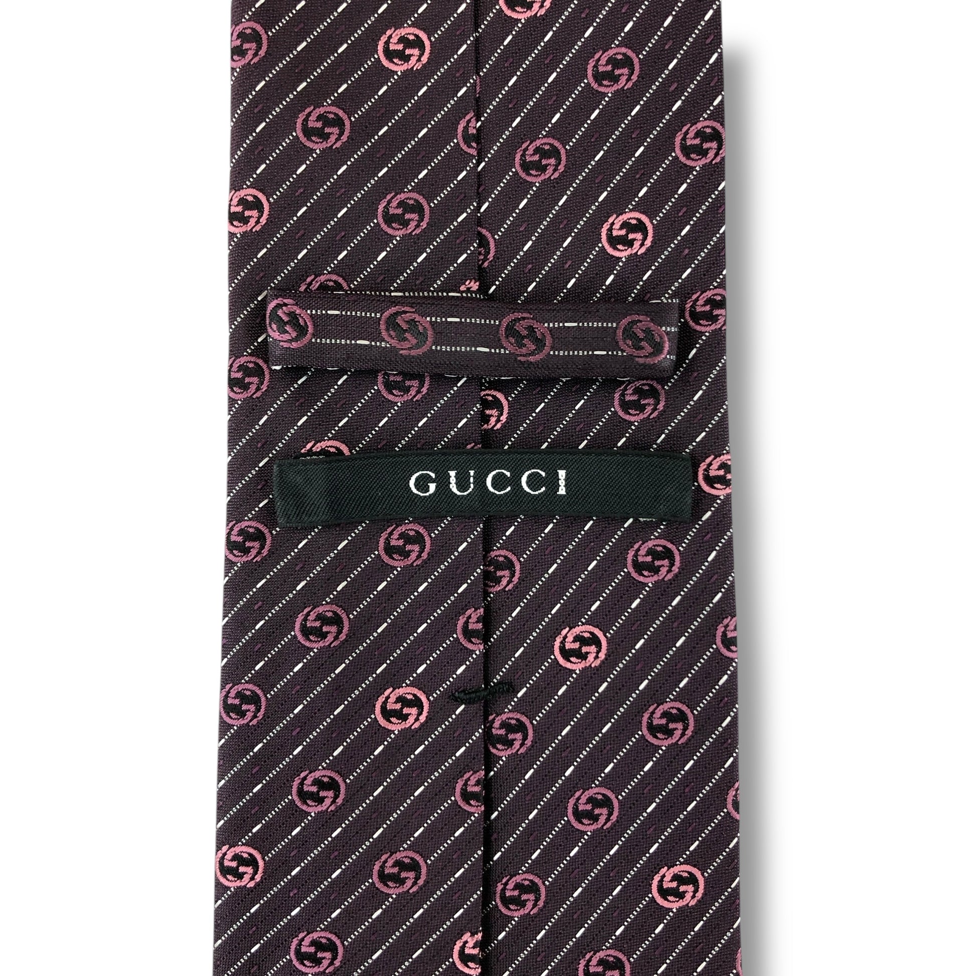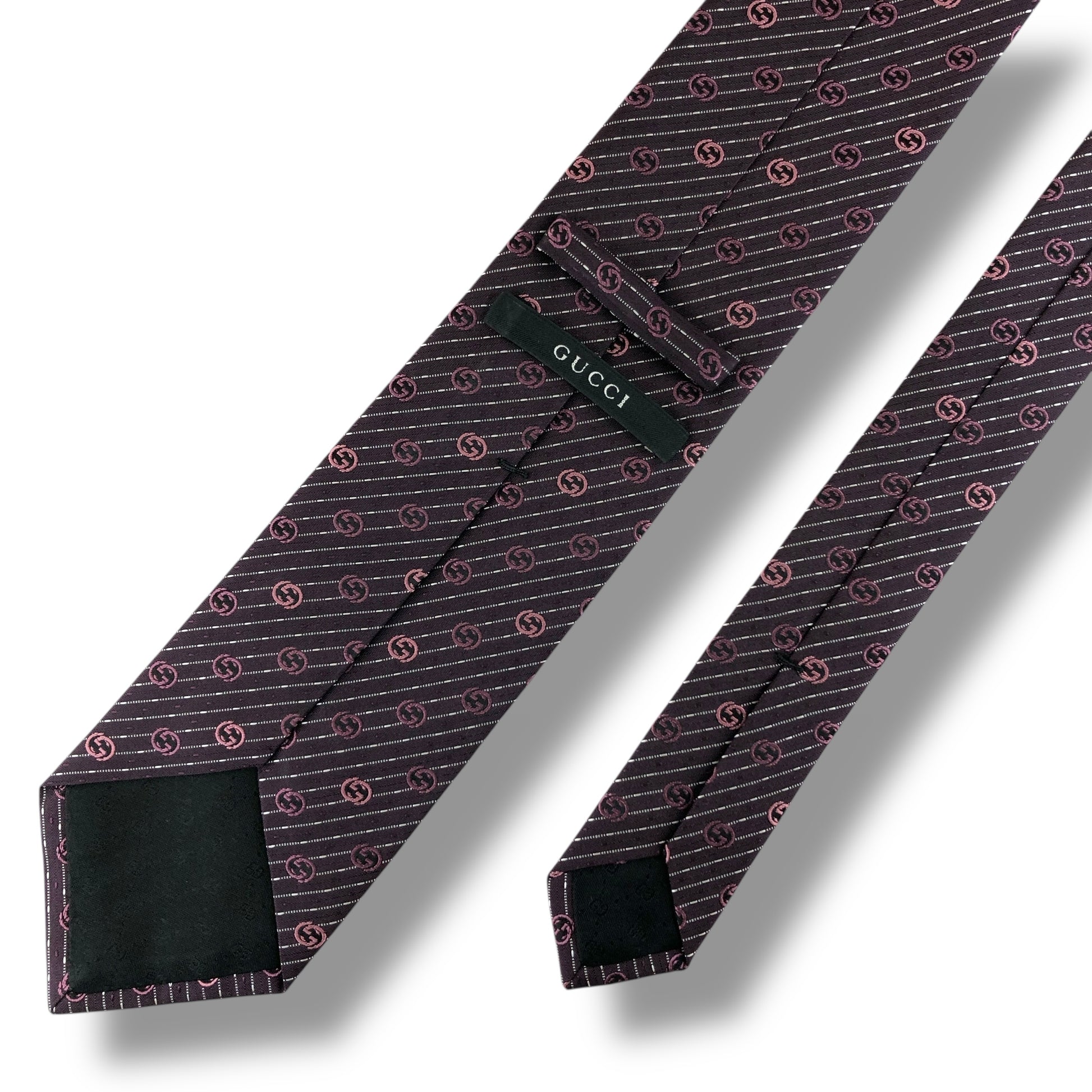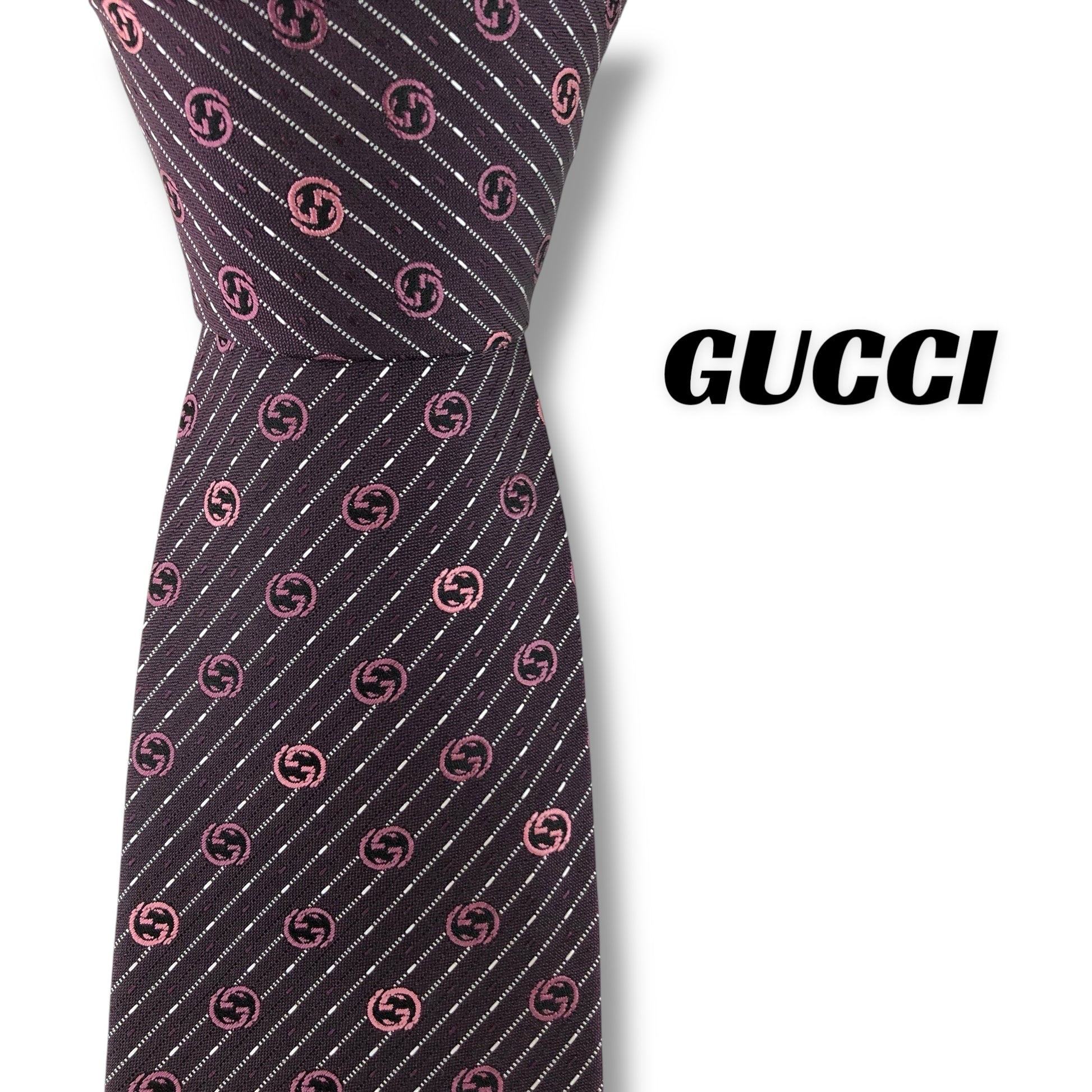 【7522】未使用に近い!グッチ ネクタイ 赤紫系 インターロッキング