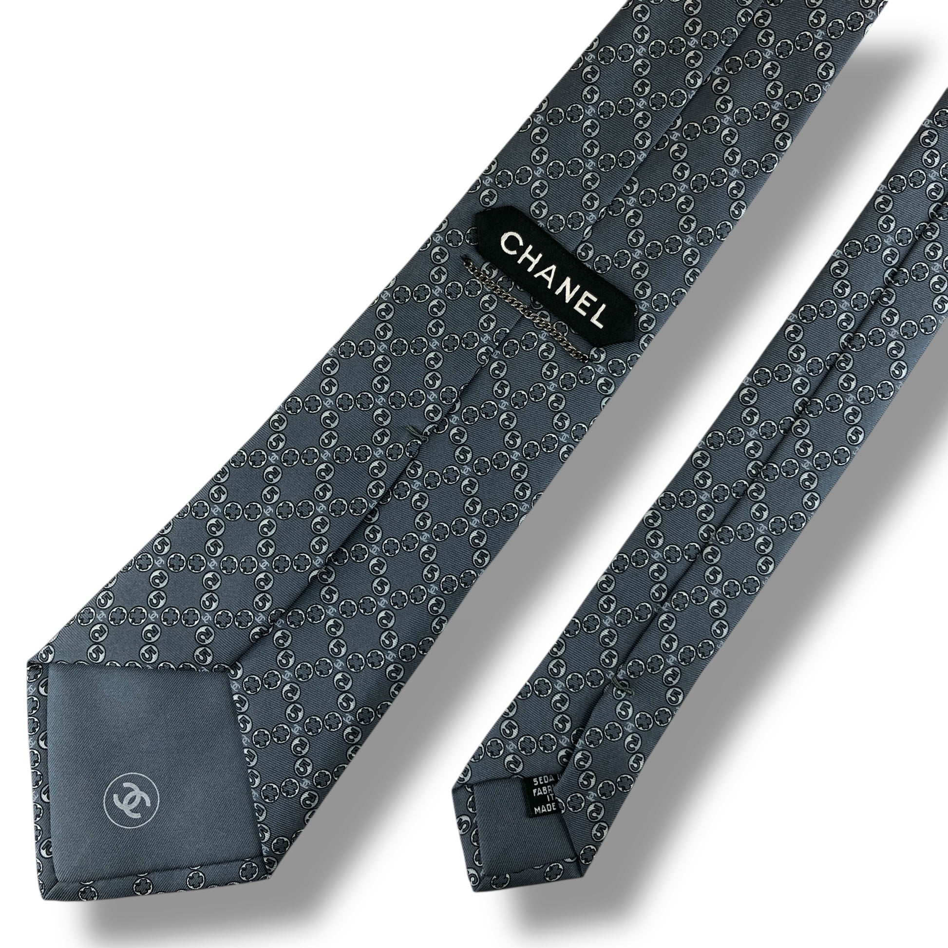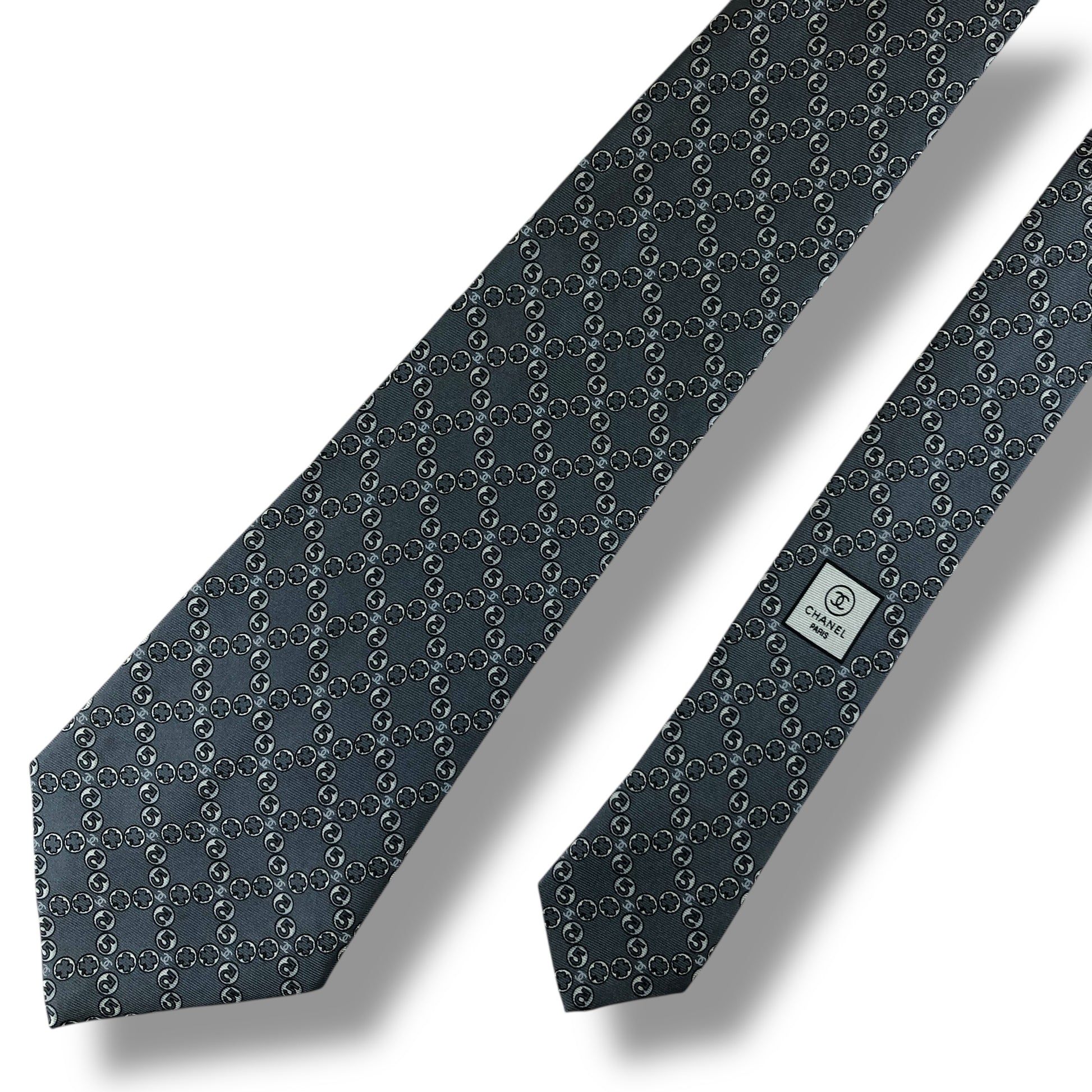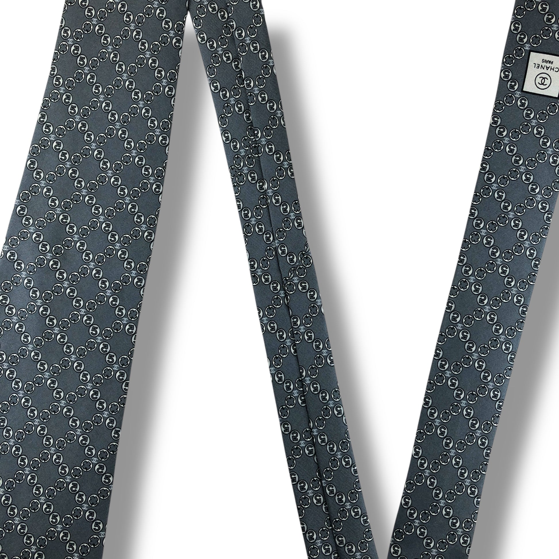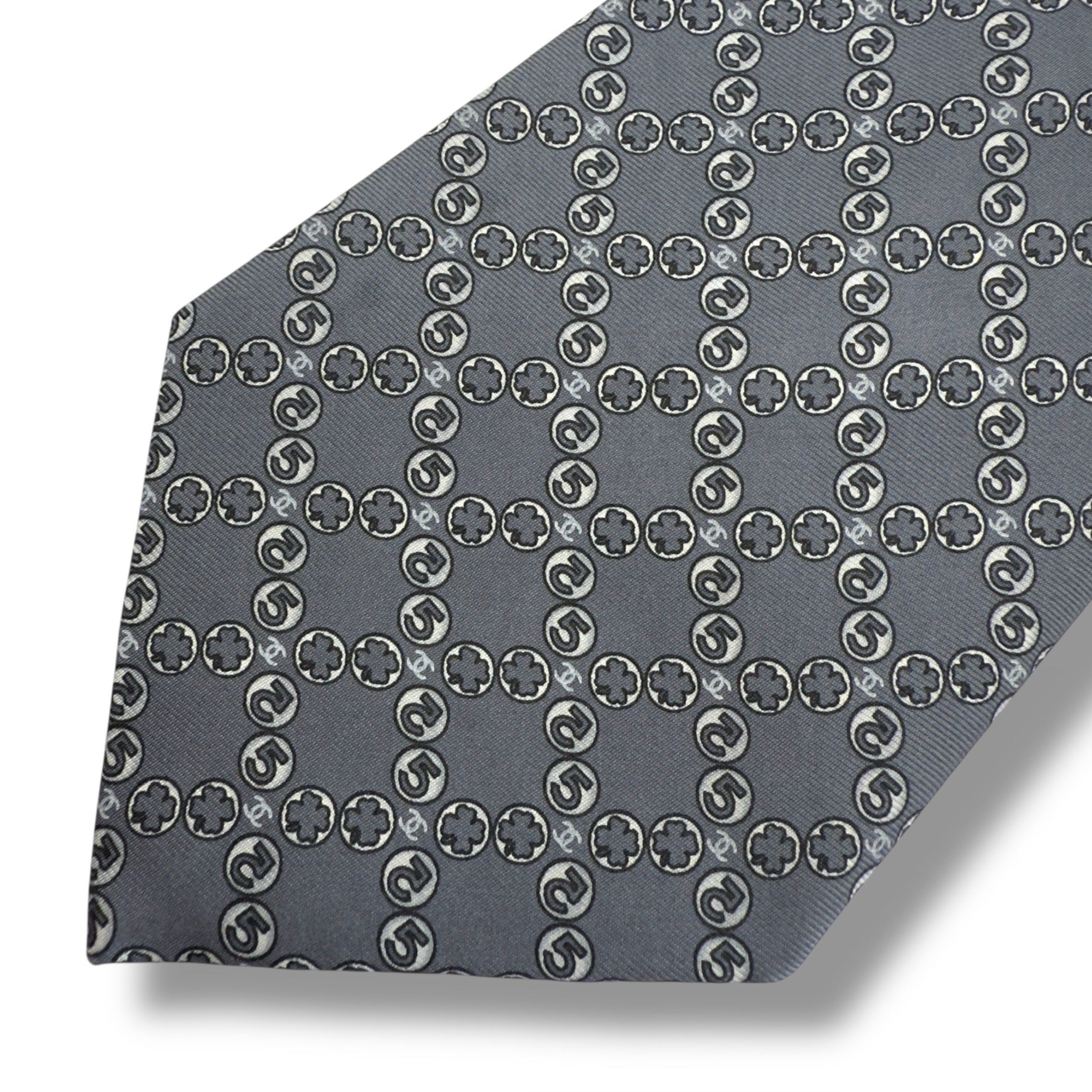 【7523】良品!シャネル ネクタイ グレー系