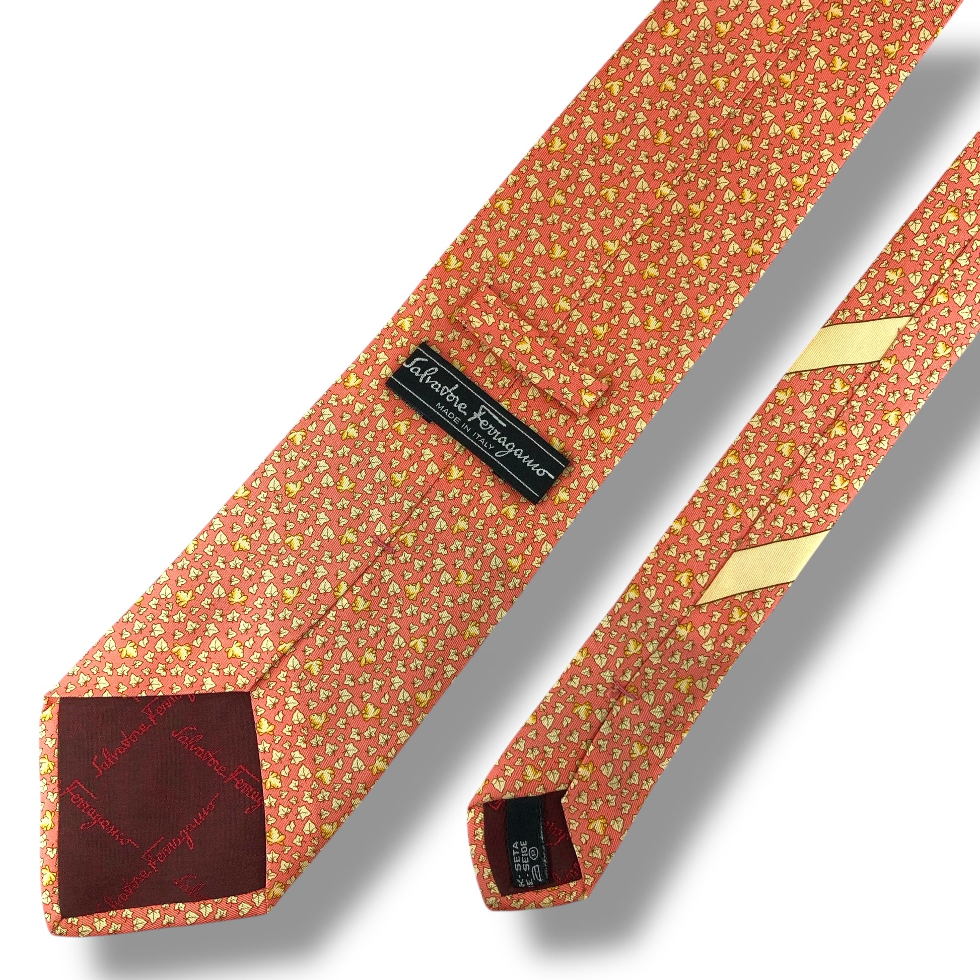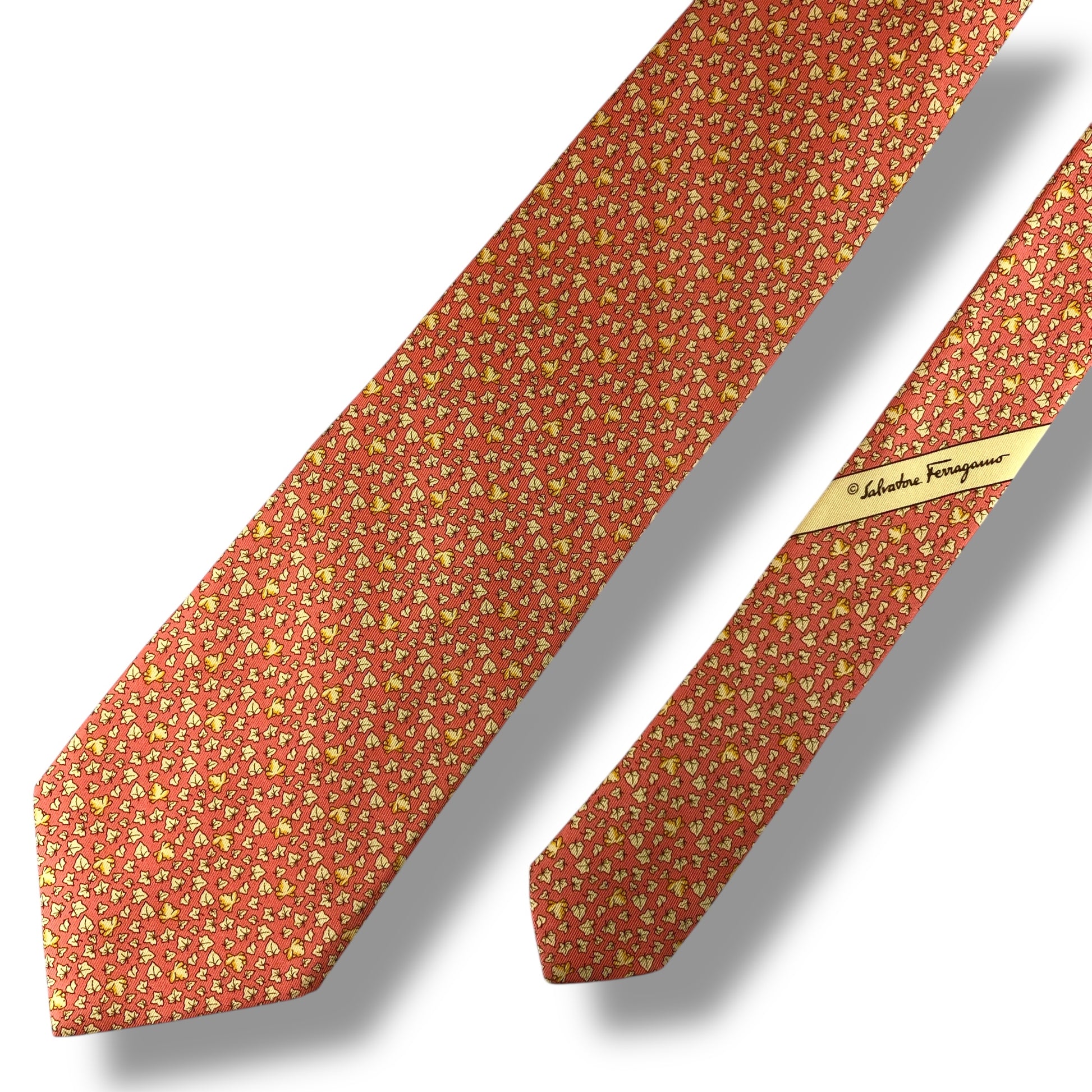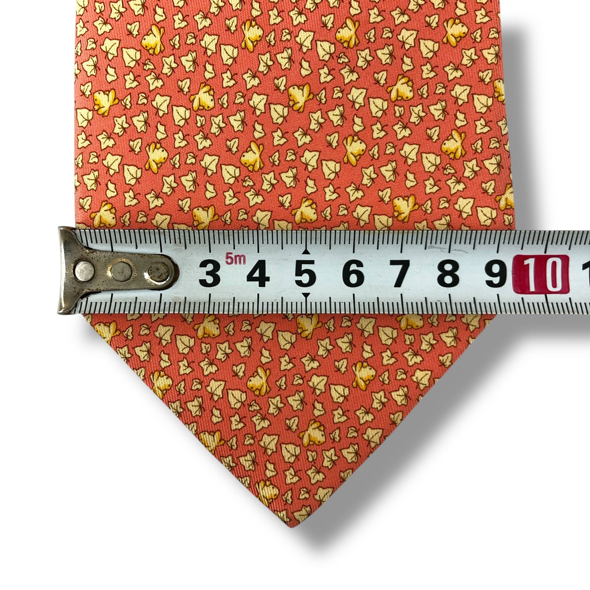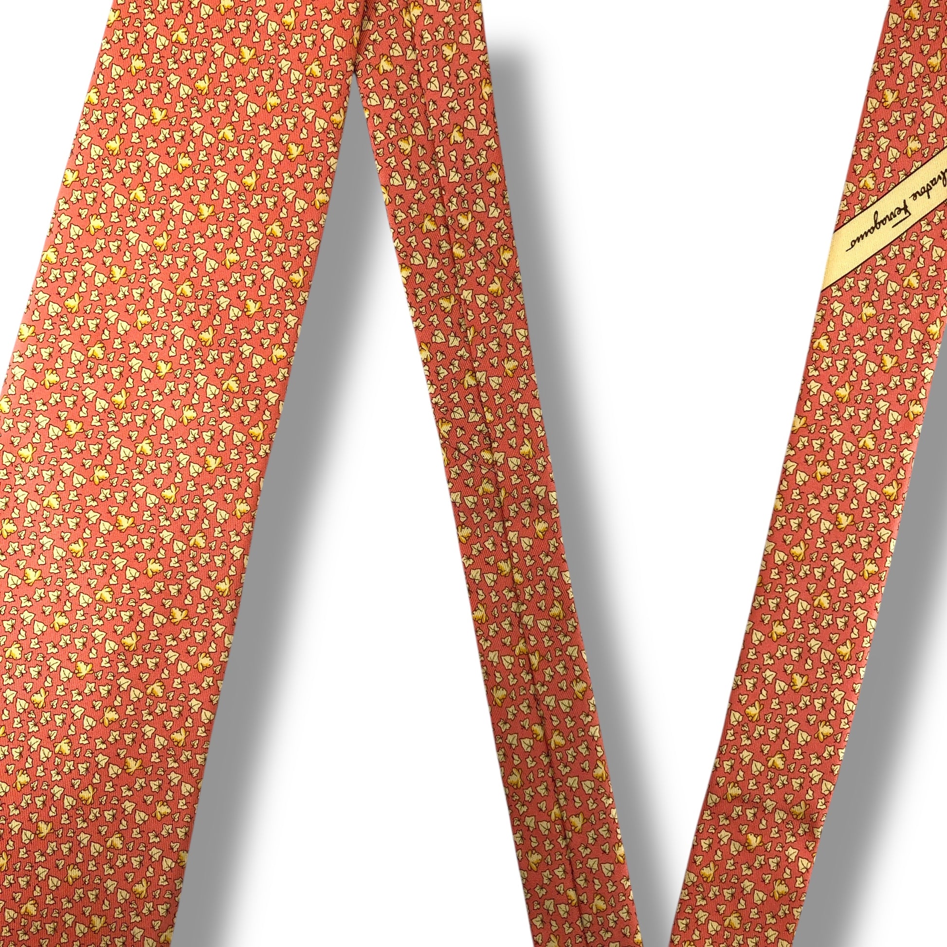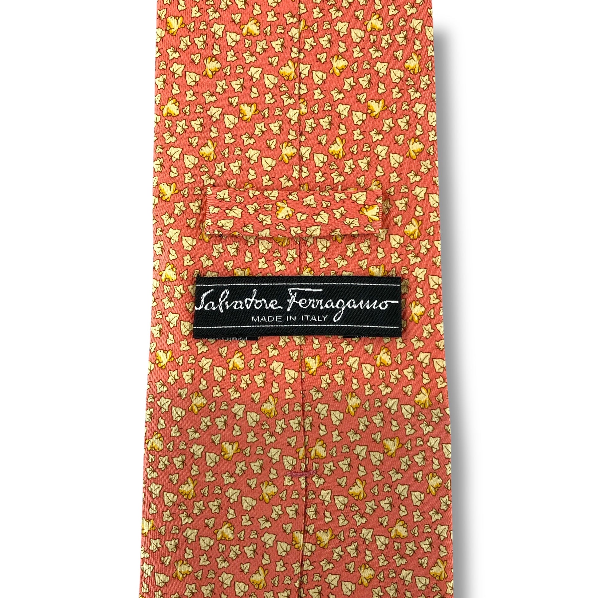 【7525】美品!サルヴァトーレフェラガモ ネクタイ オレンジ系 葉柄 カエル柄