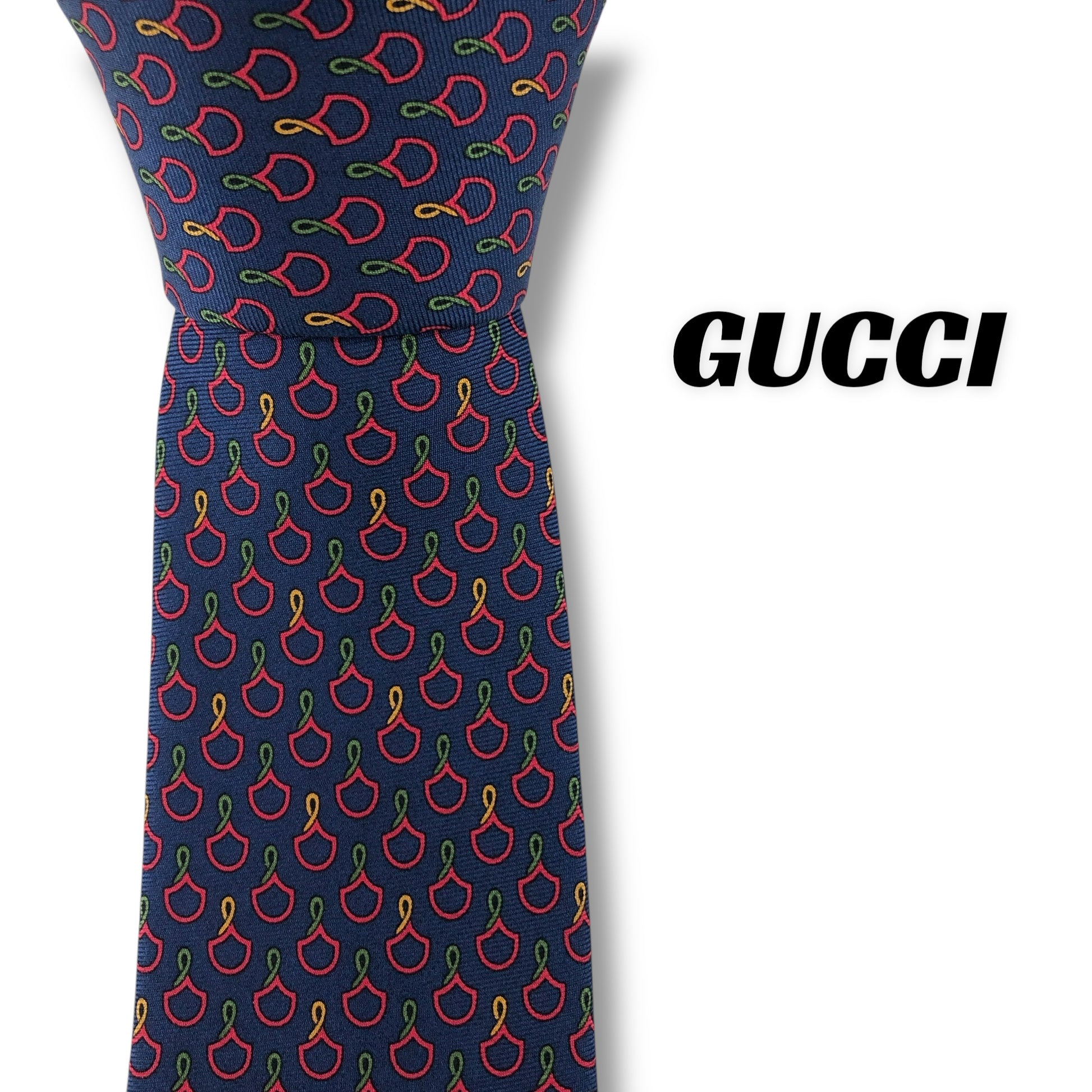 【7546】美品ー良品!グッチ ネクタイ ネイビー系