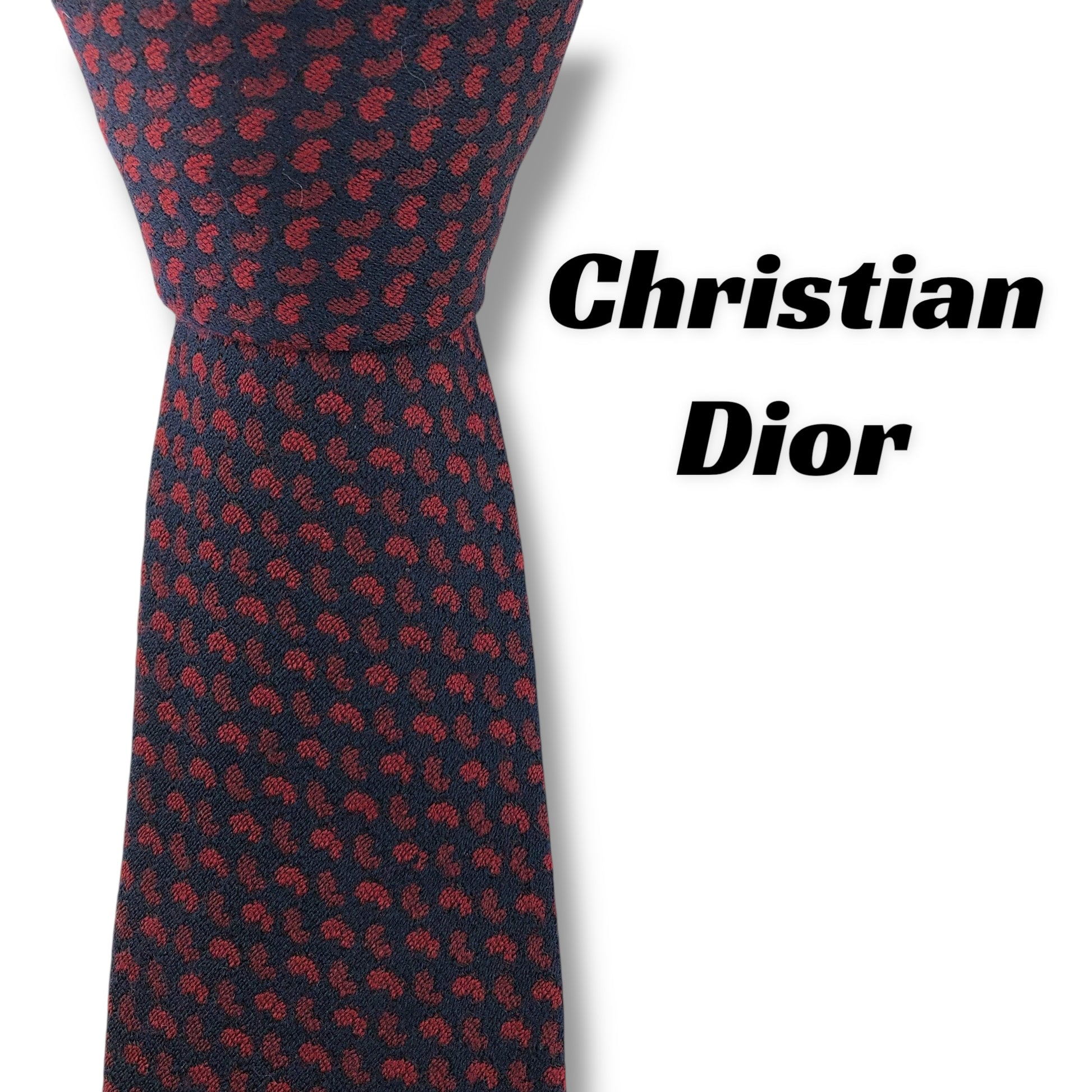 【7673】美品!クリスチャンディオール ネクタイ レッド系