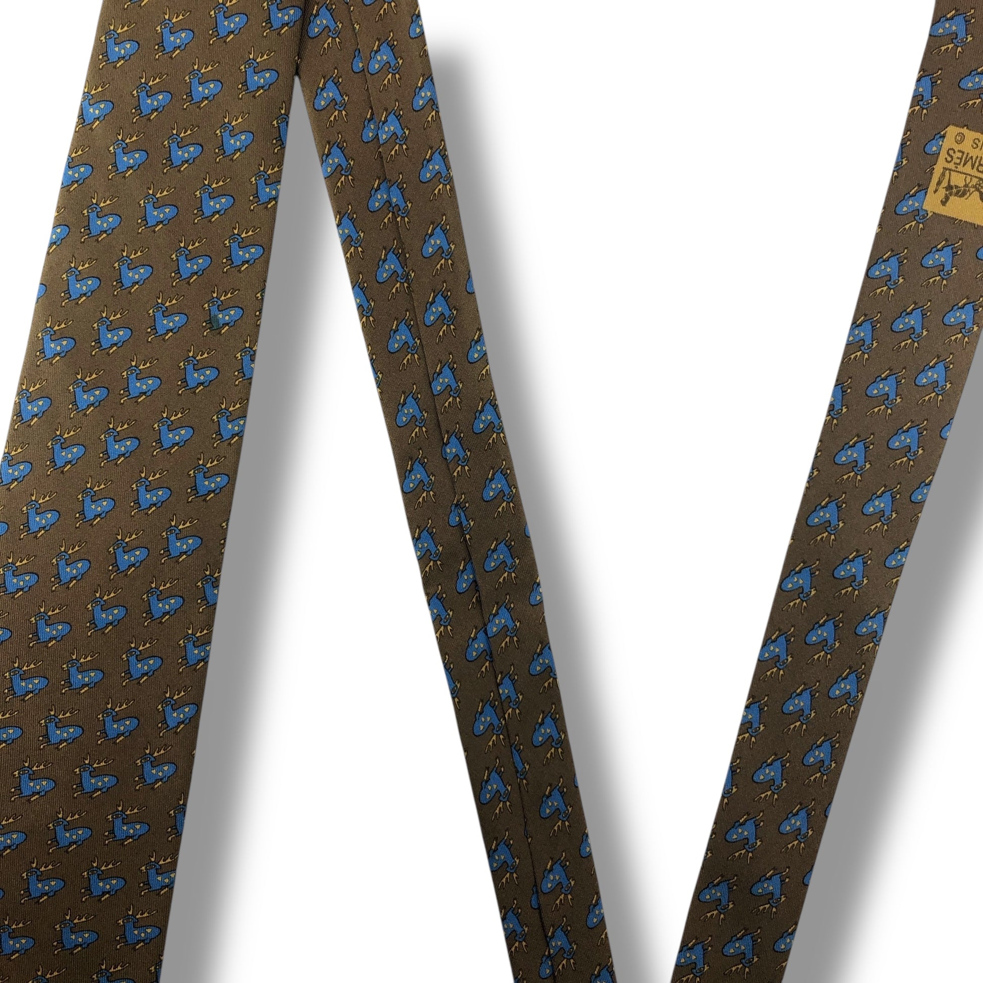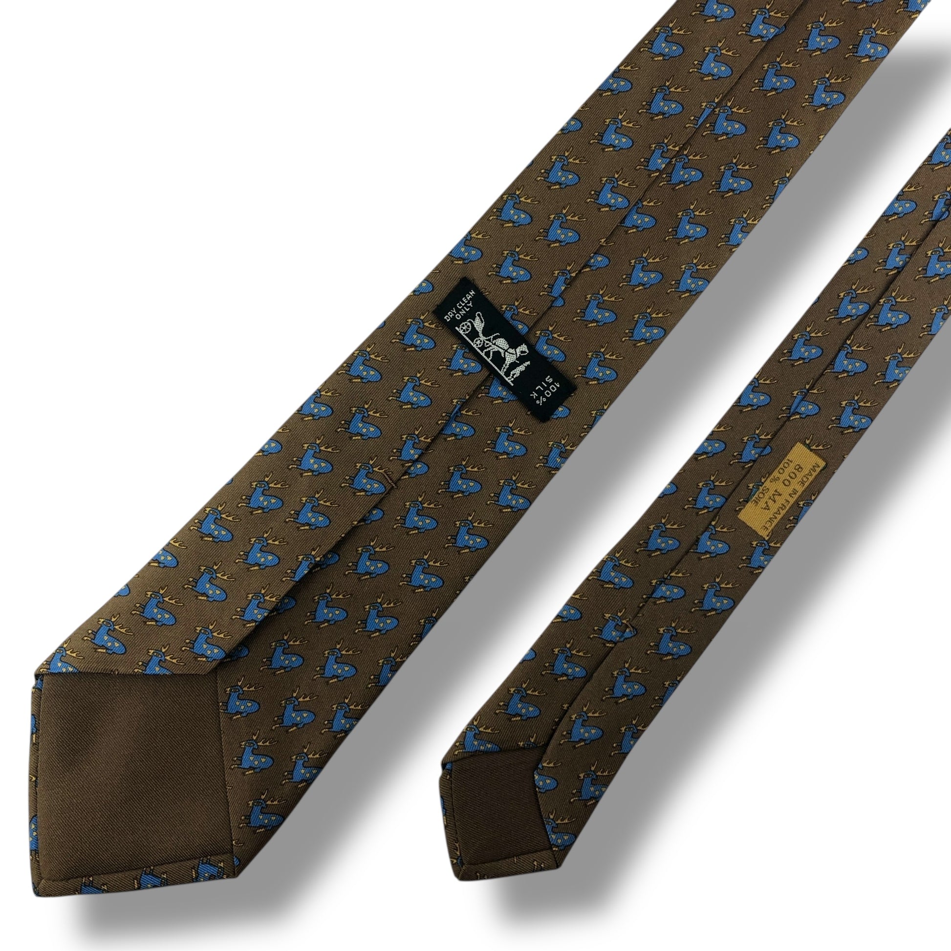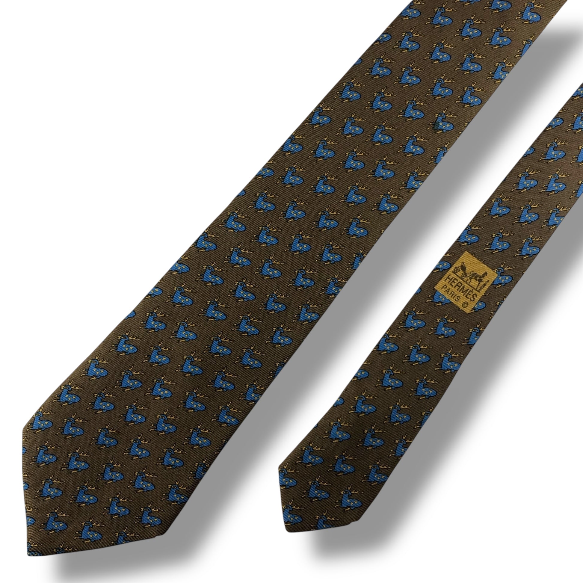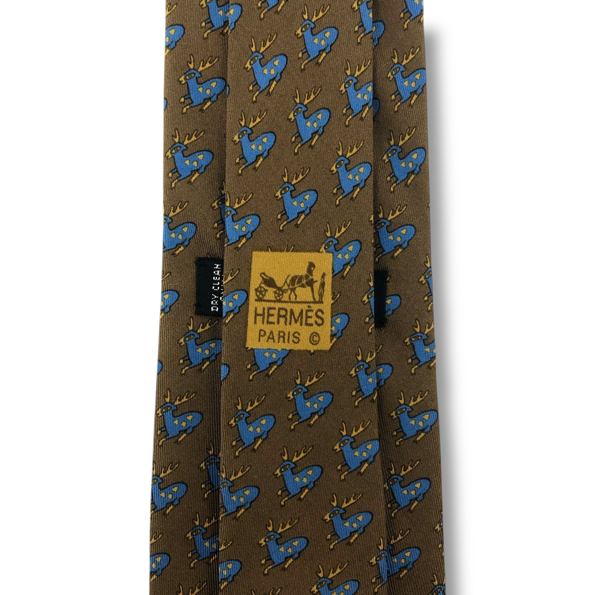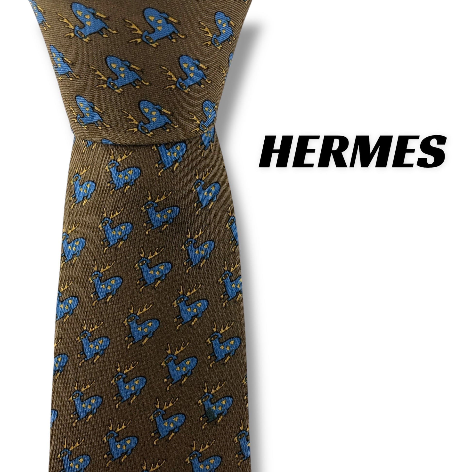 【7687】 良品!エルメス ネクタイ ブラウン系 鹿柄