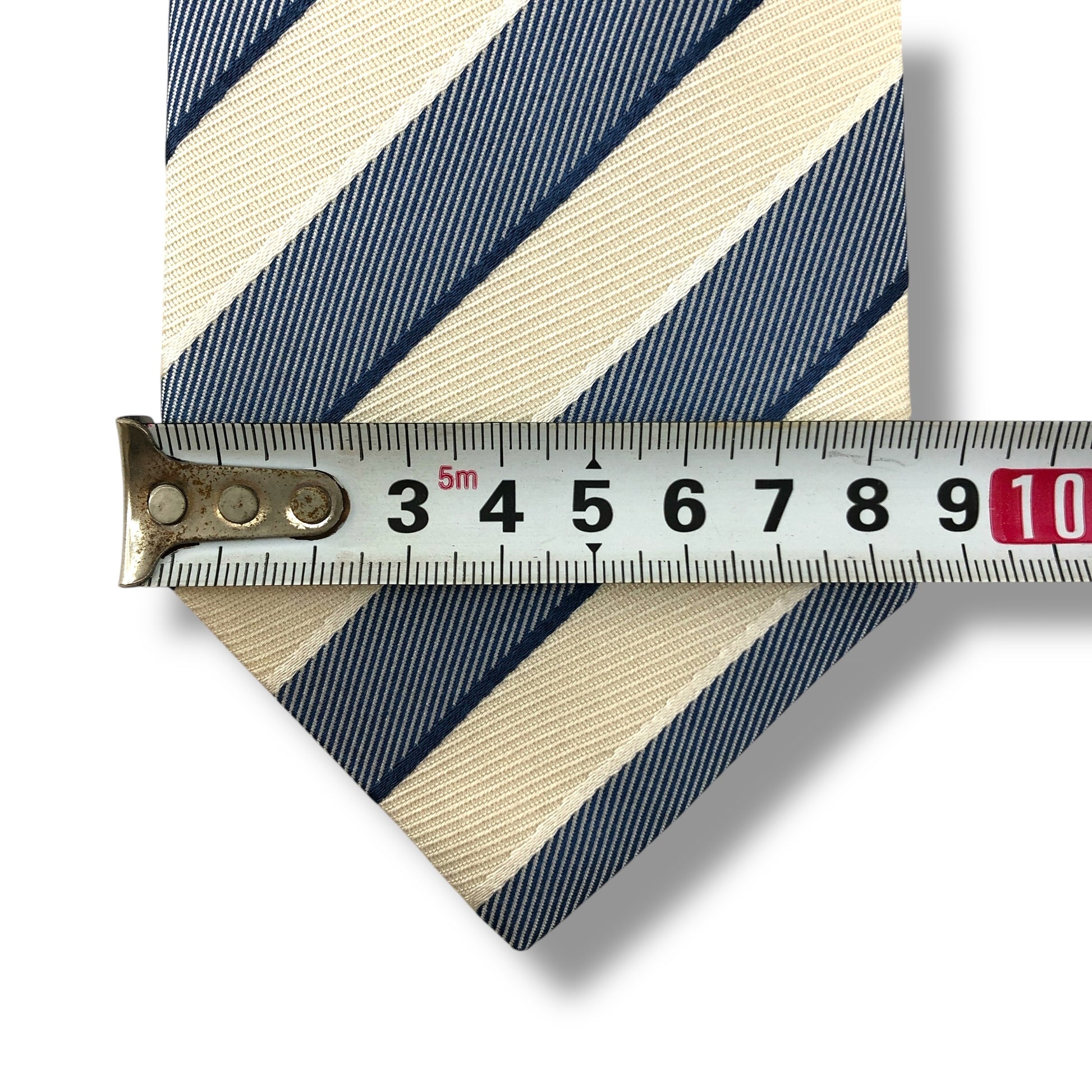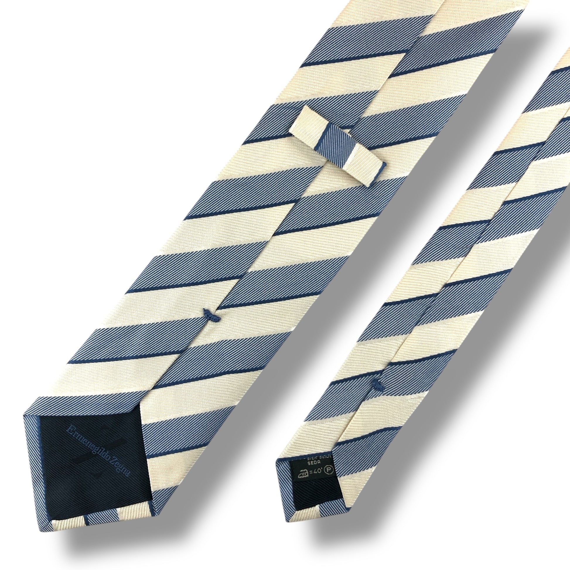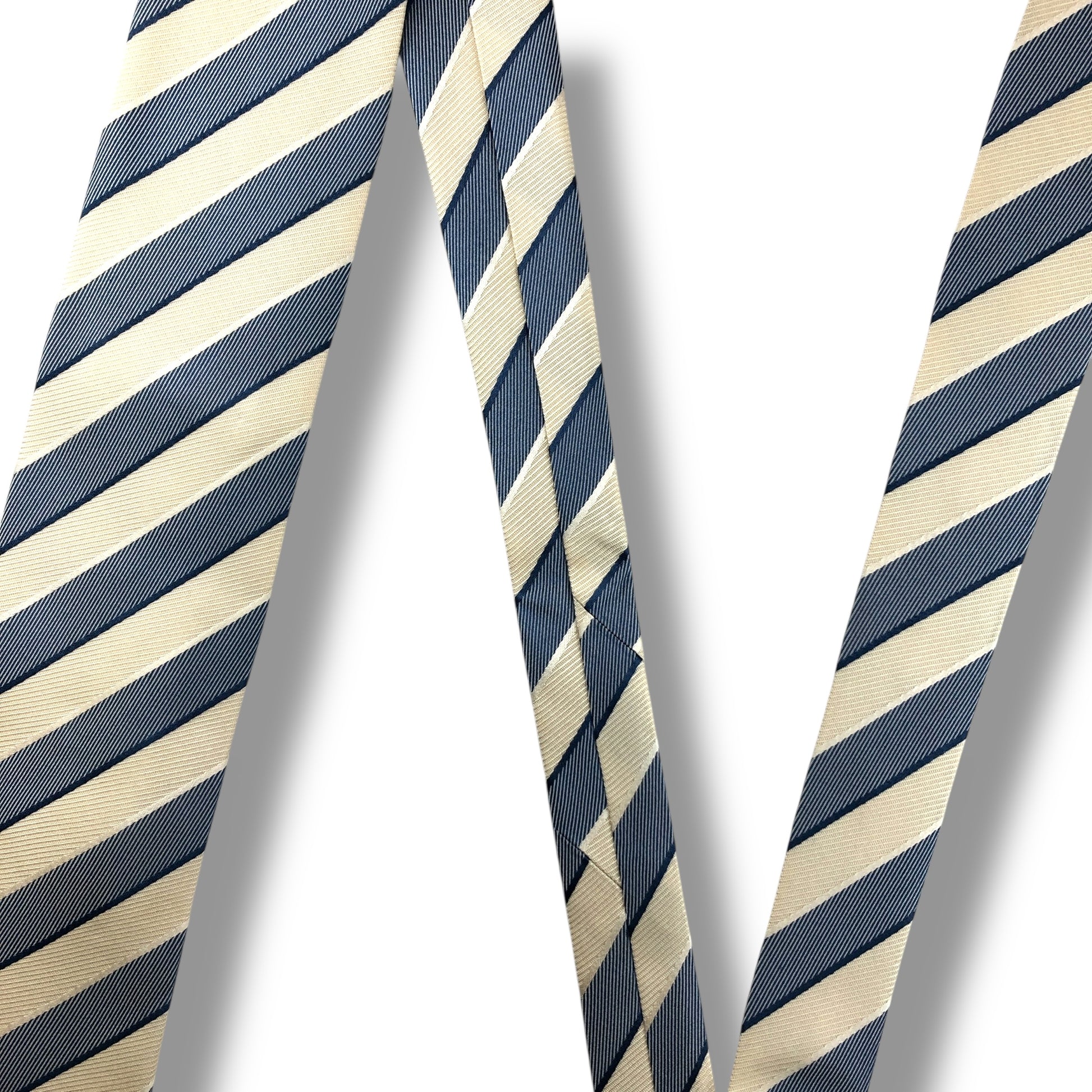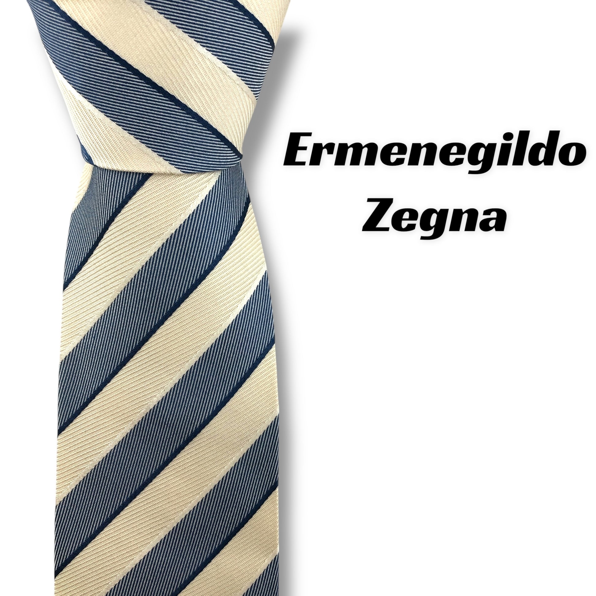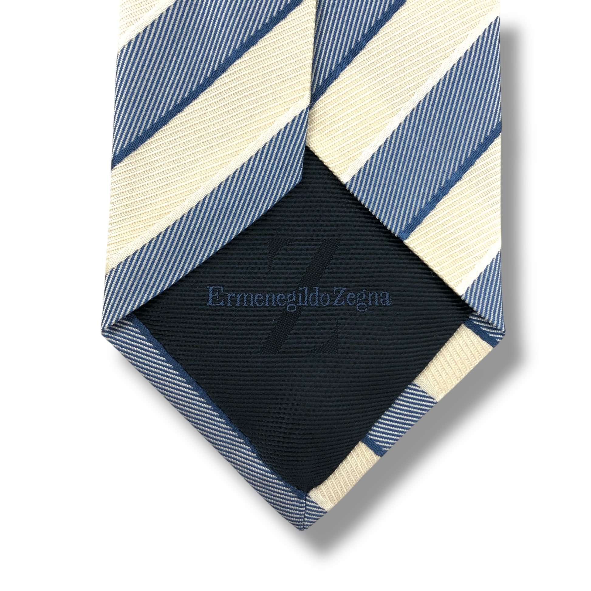 【7805】良品!エルメネジルドゼニア ネクタイ 青×クリーム色系