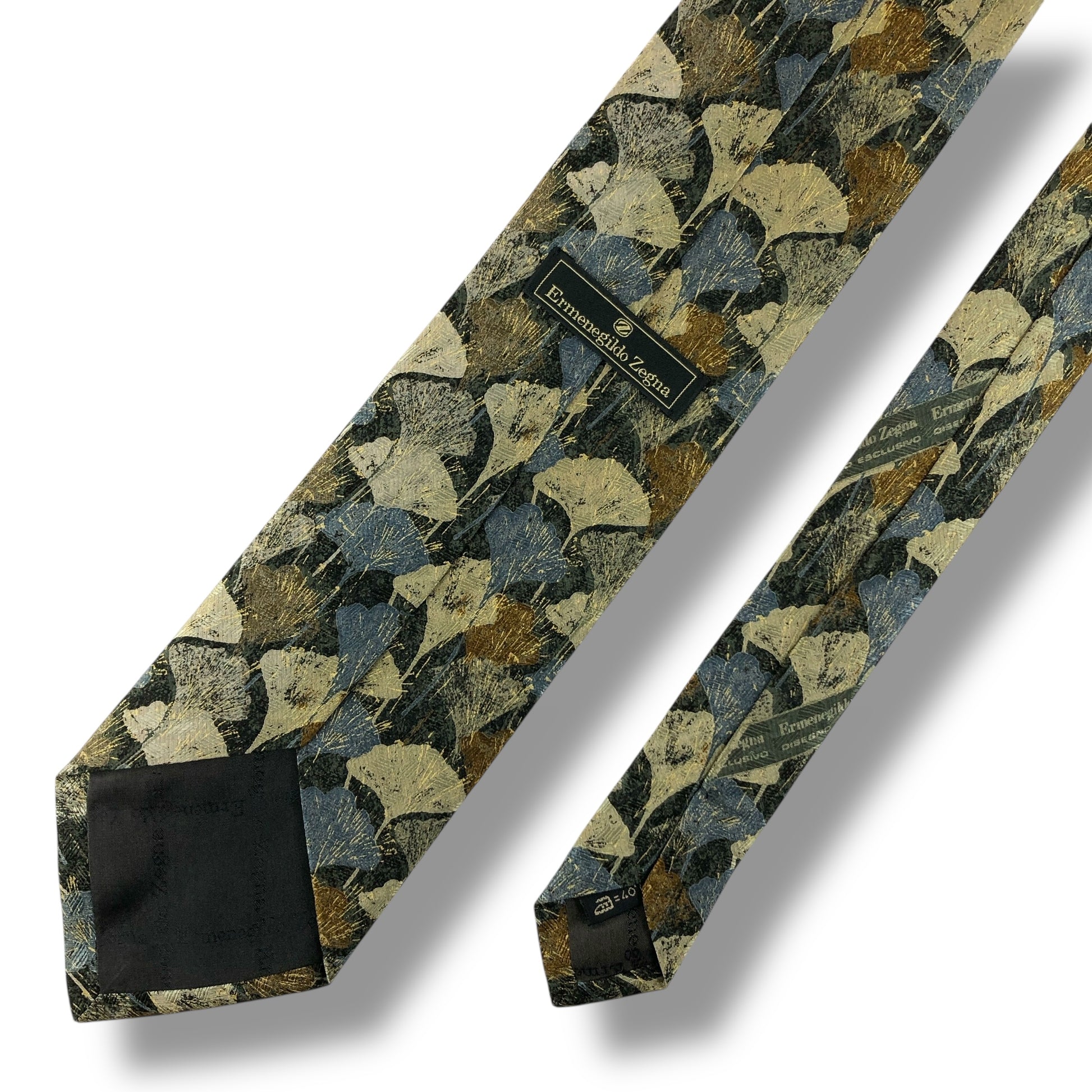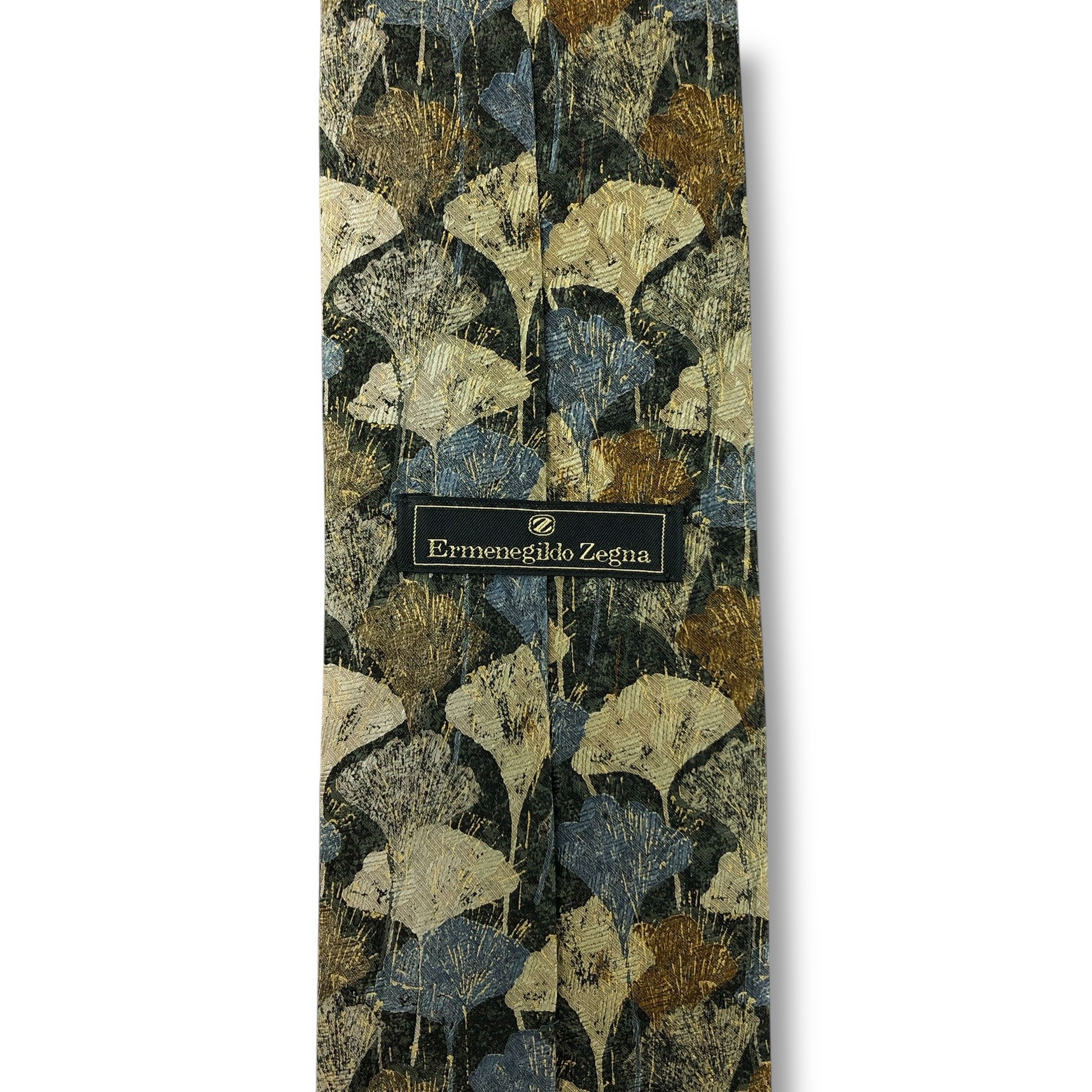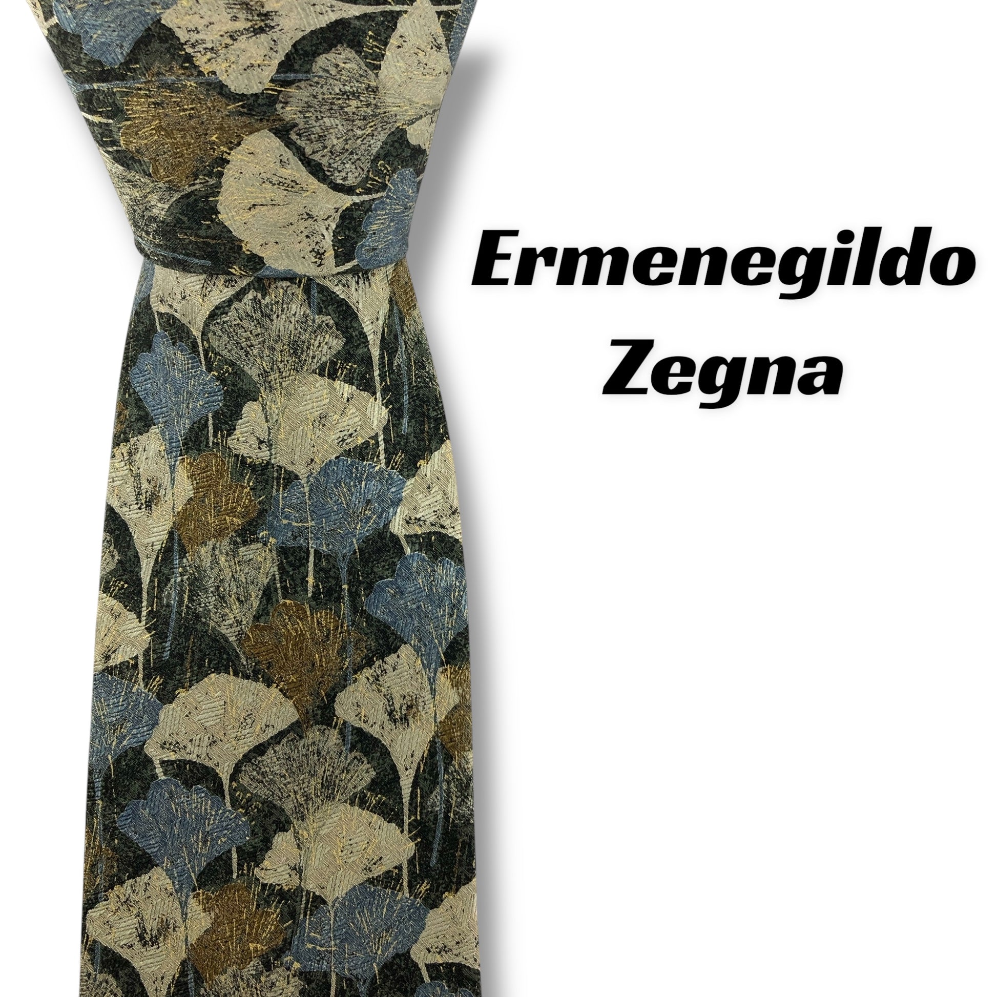 【7806】美品!エルメネジルドゼニア ネクタイ グリーン系 イチョウ柄