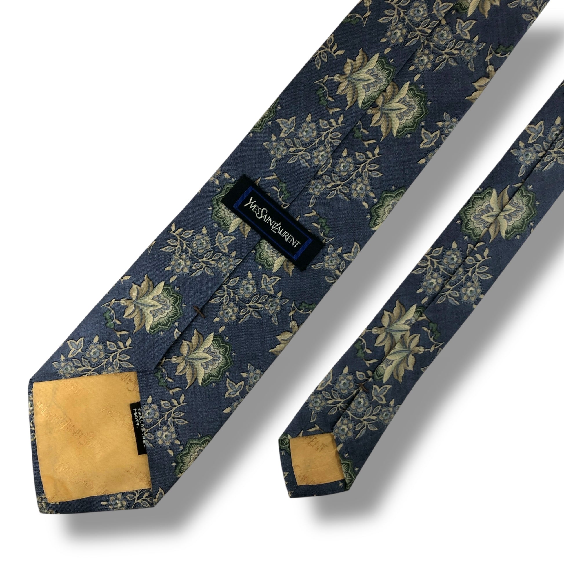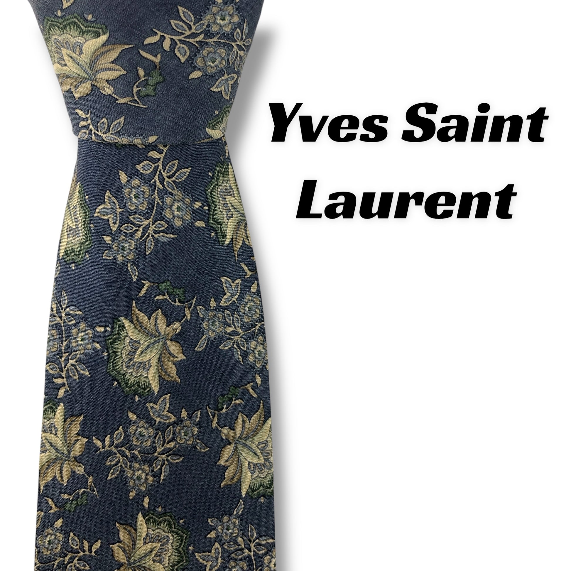 【7902】良品!サンローラン ネクタイ ライトブルー系 花柄