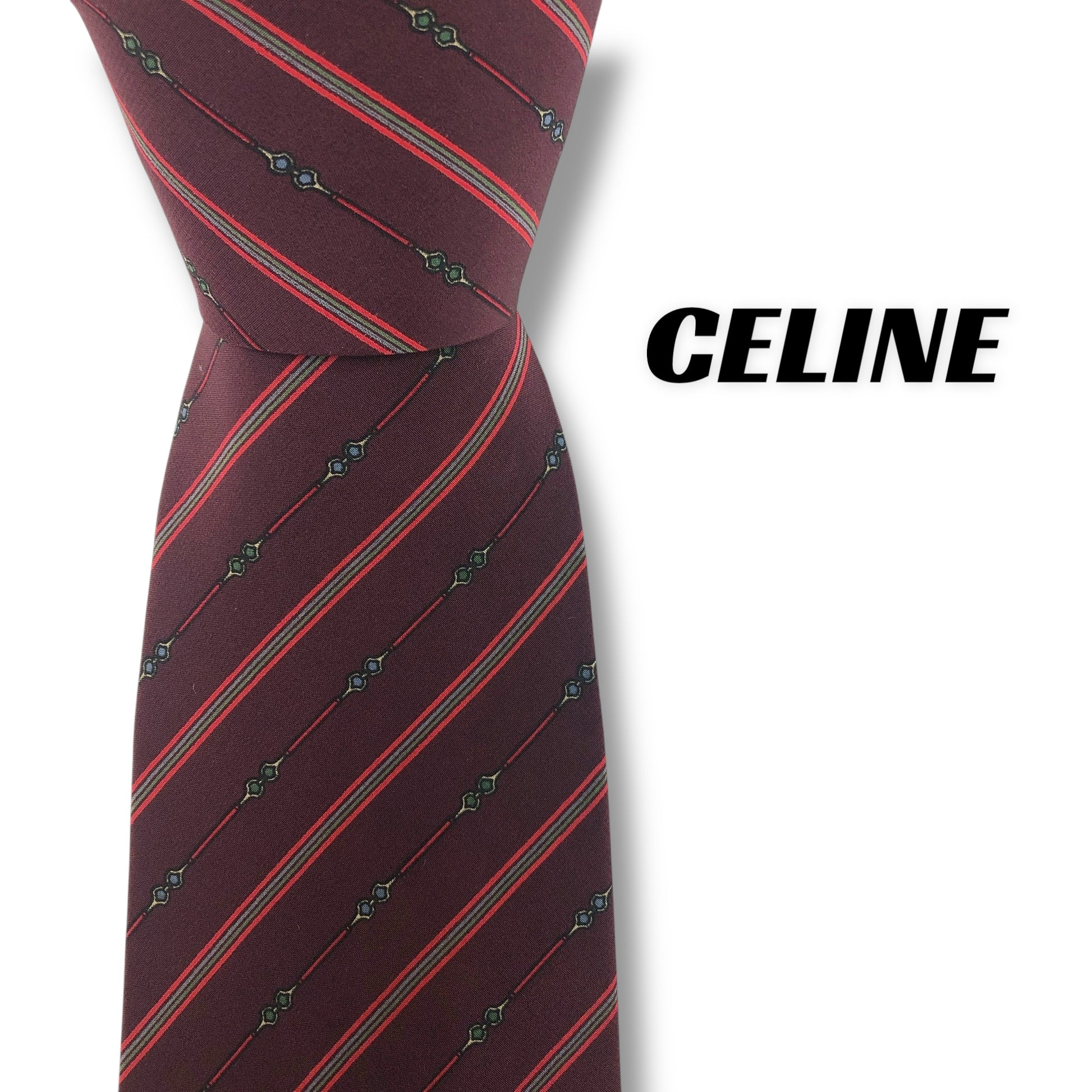 【7913】良品!セリーヌ ネクタイ ボルドー系