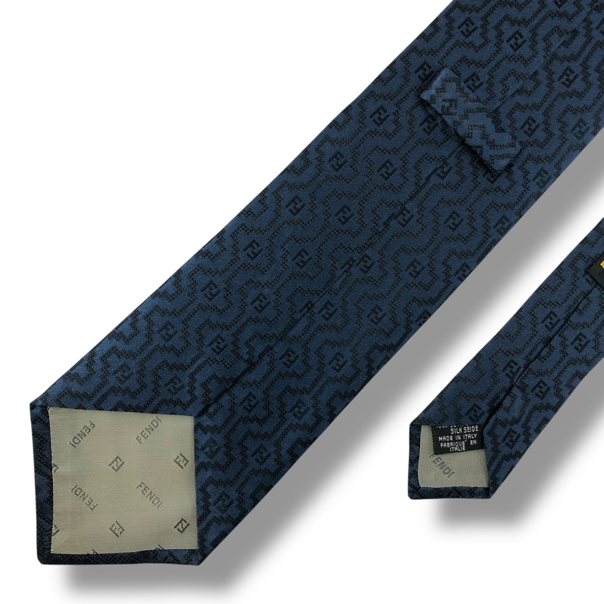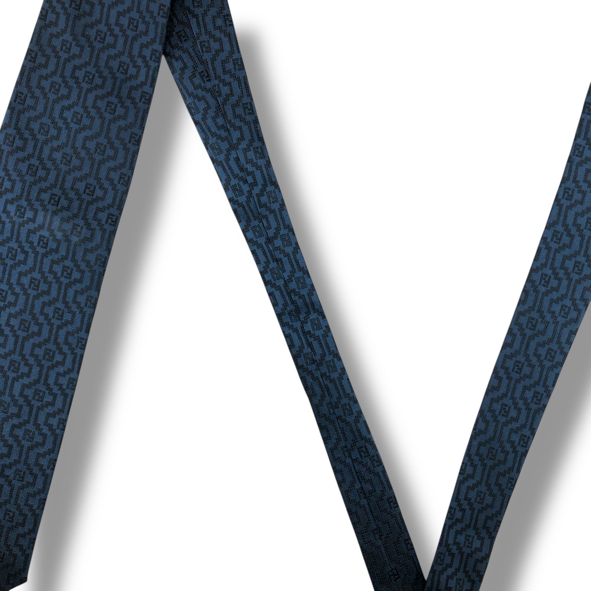 【7926】美品ー良品!フェンディ ネクタイ ネイビー系 FF柄