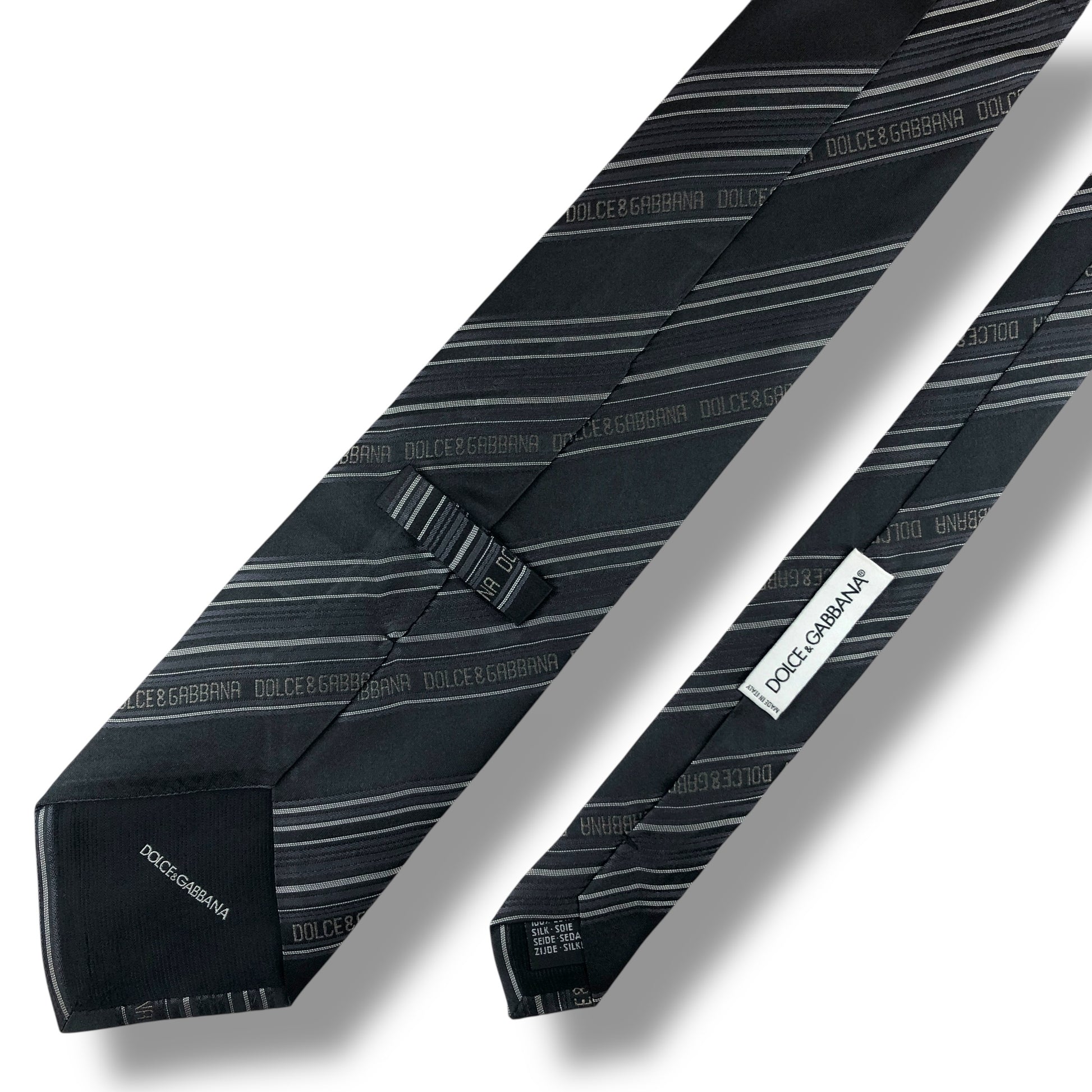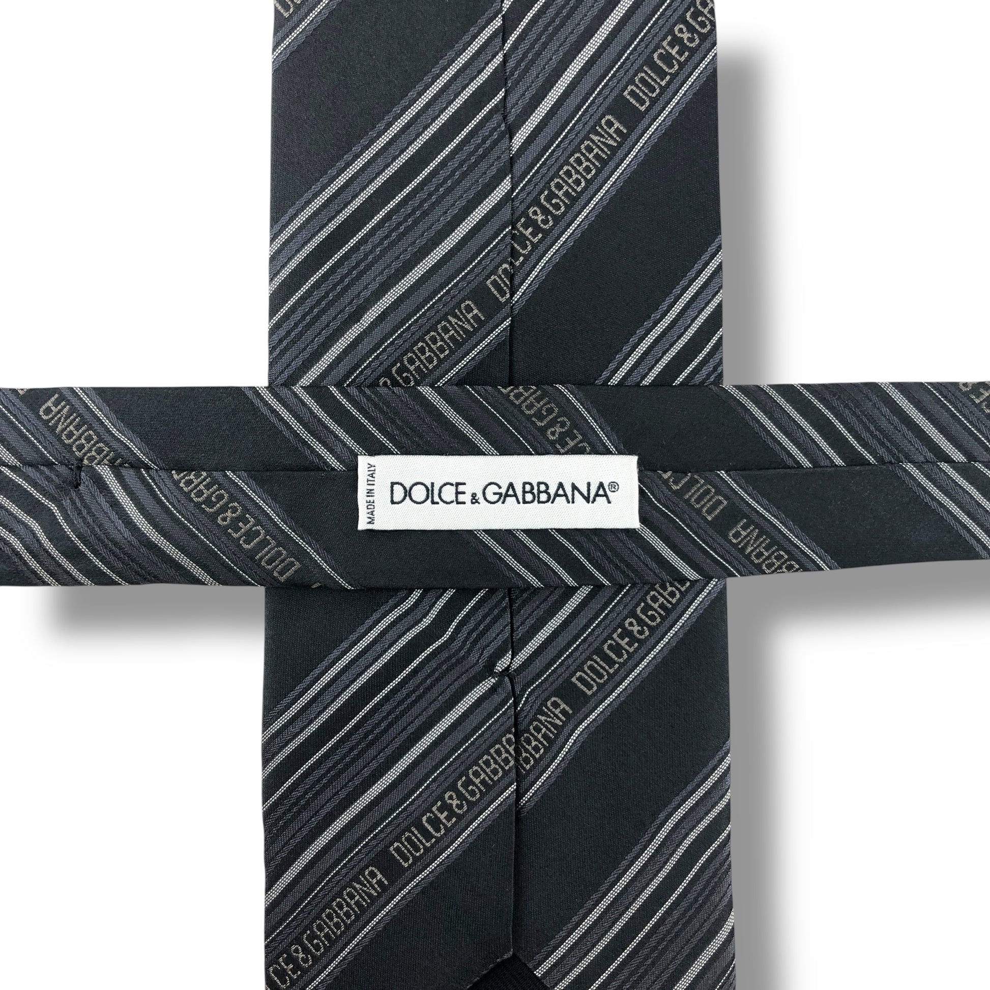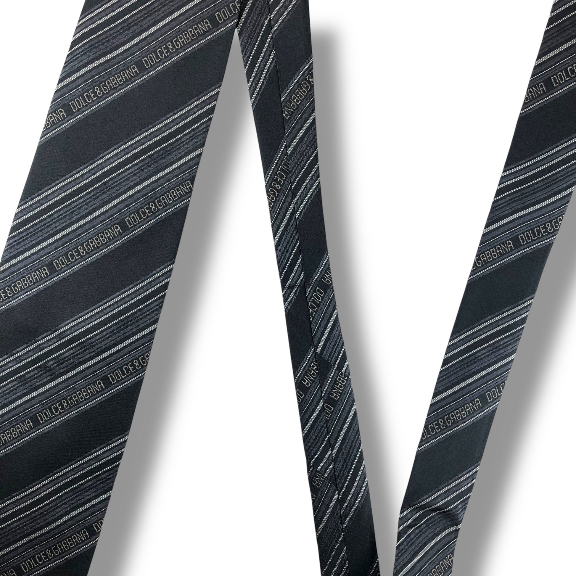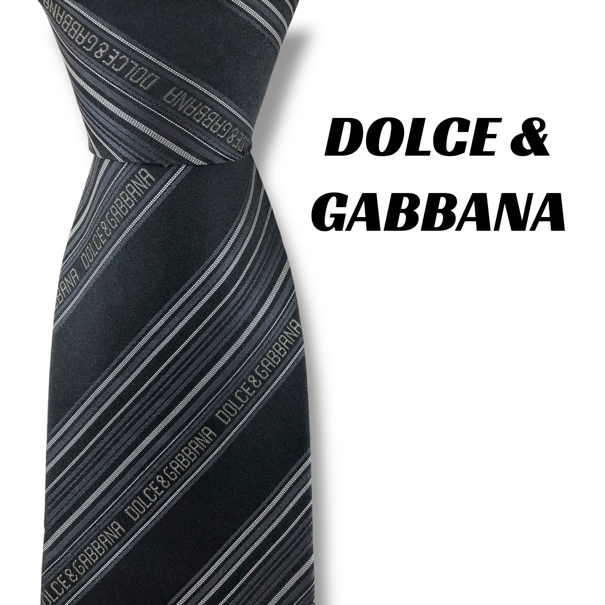 【8038】美品!ドルチェアンドガッバーナ ネクタイ ブラック系 ストライプ