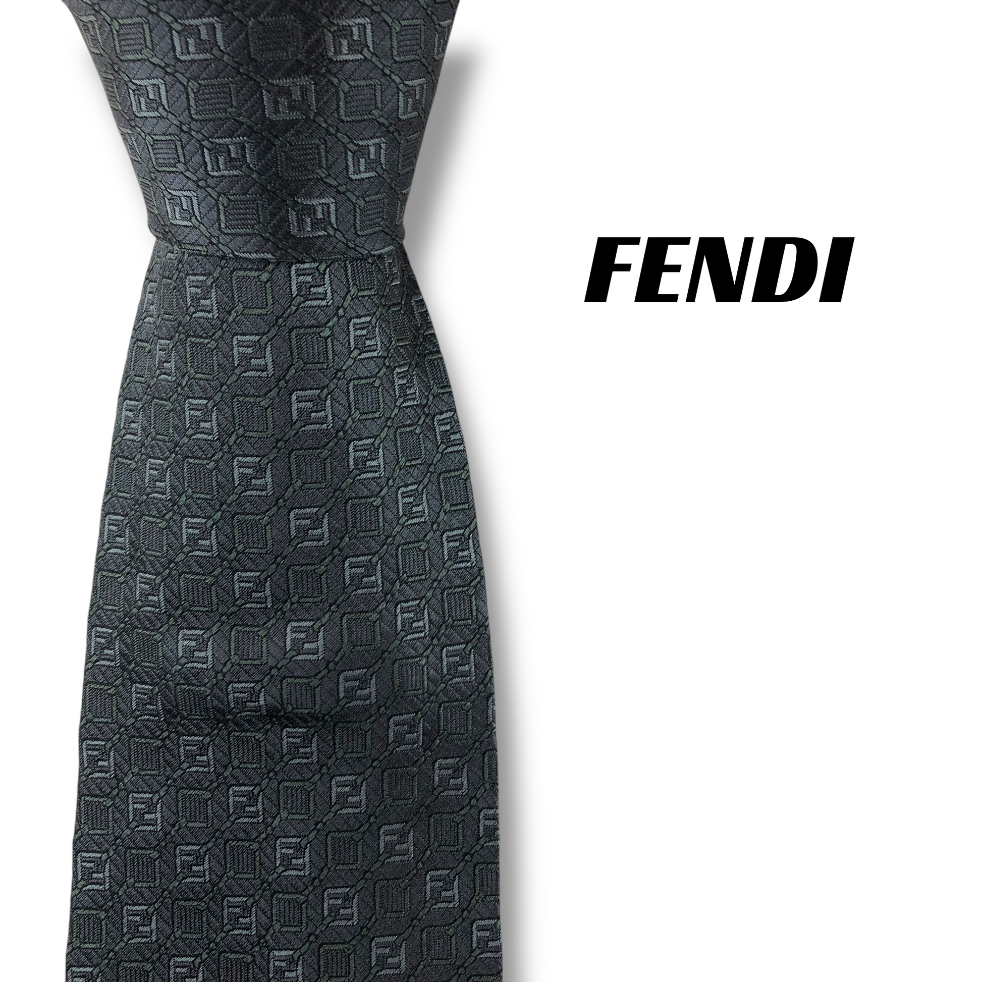 【8039】良品!フェンディ ネクタイ ダークシルバー系