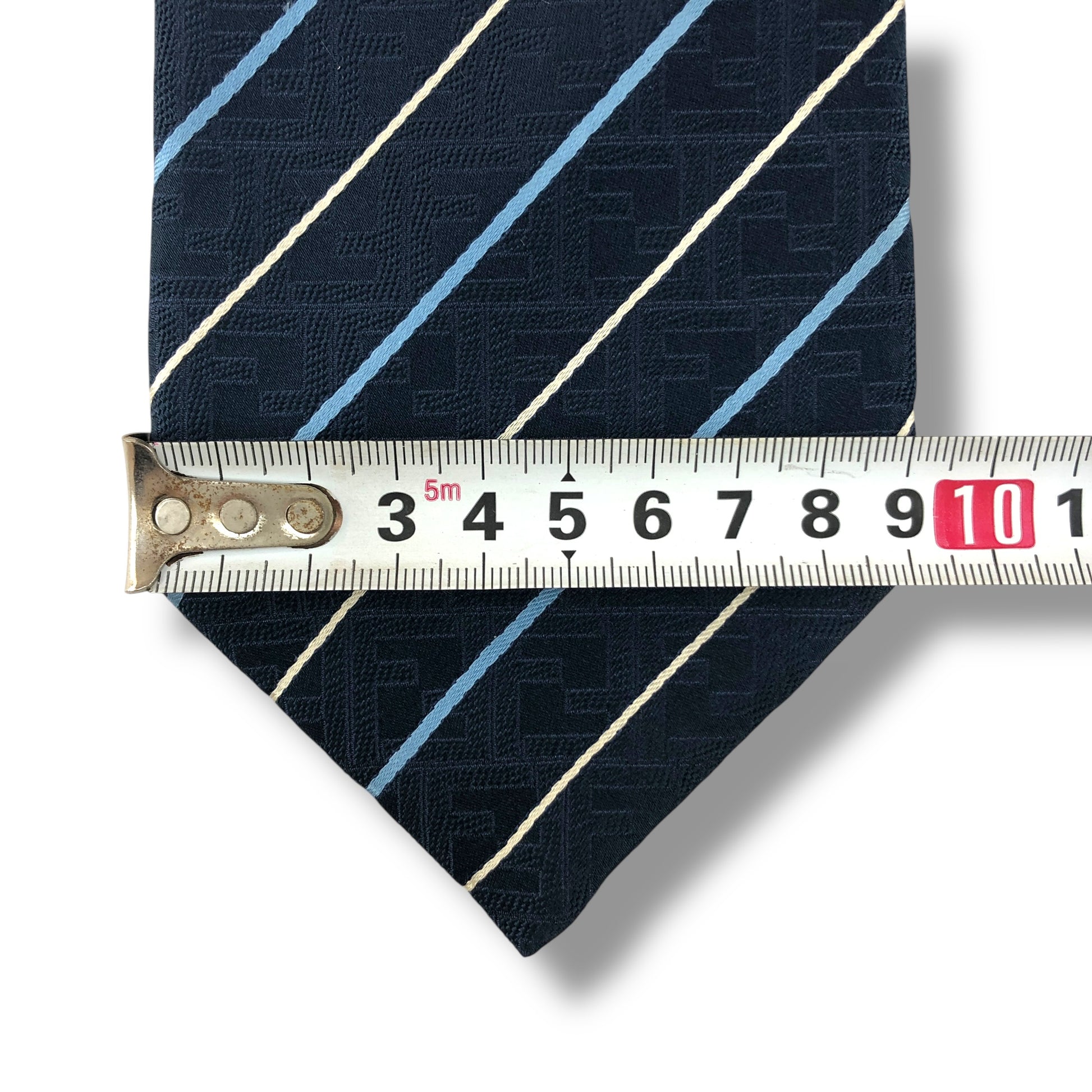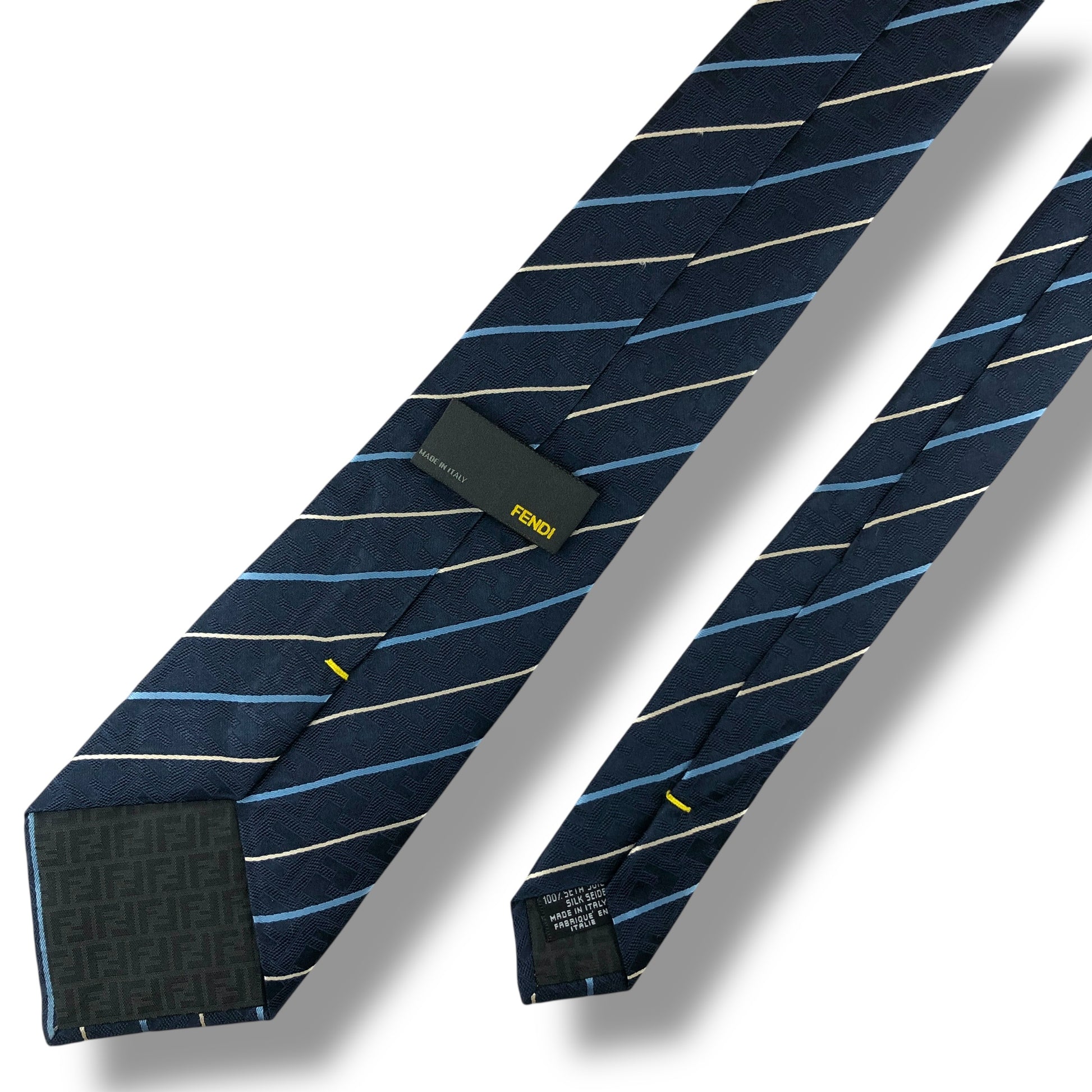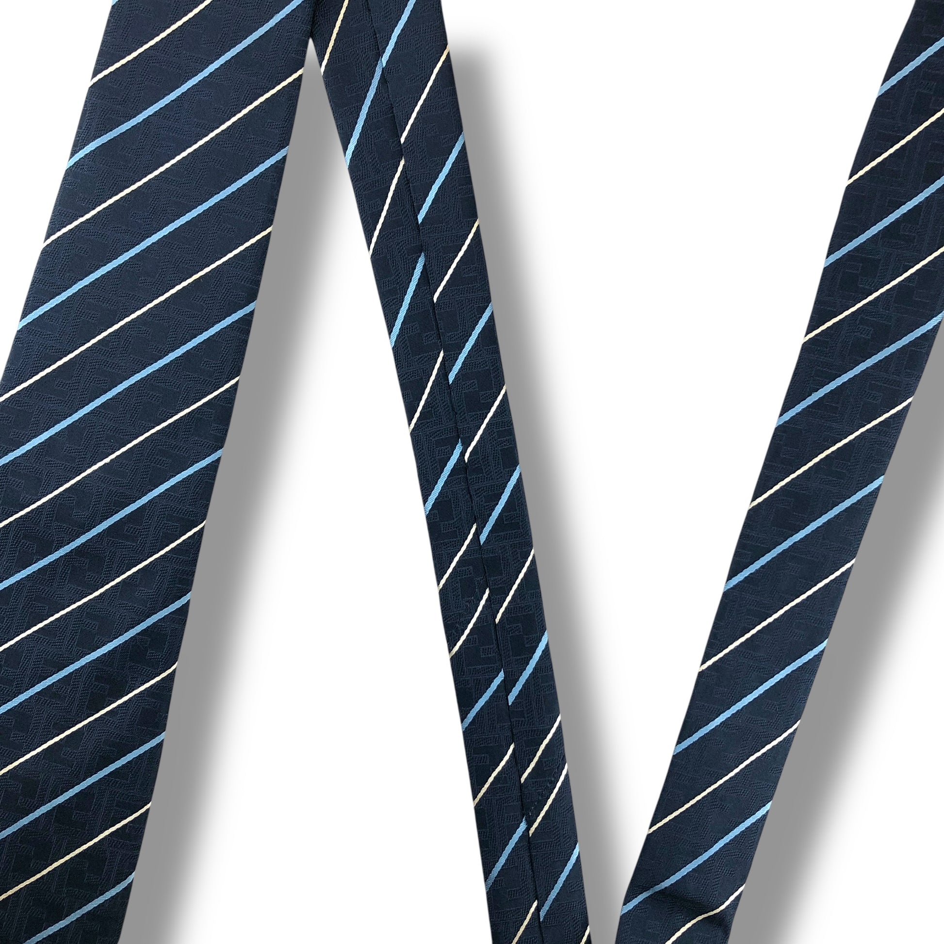 【8041】美品!フェンディ ネクタイ ブルー系 ストライプ柄 FF柄