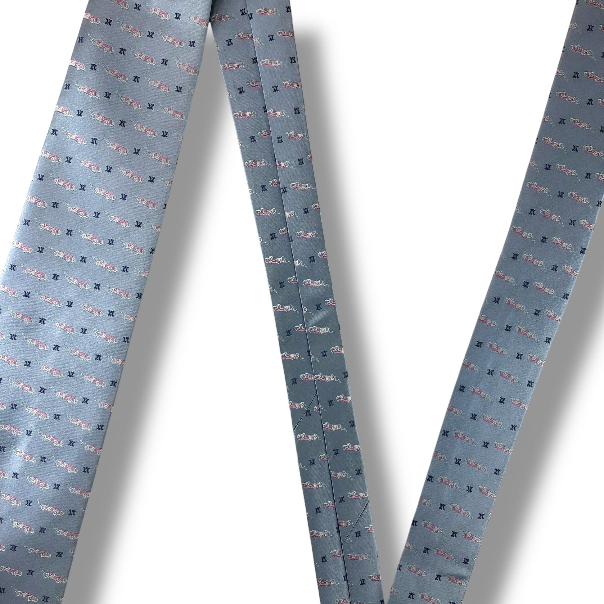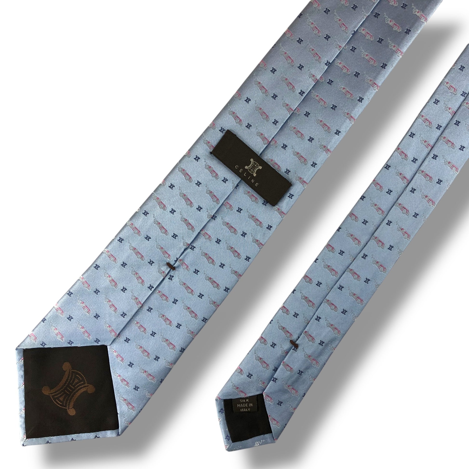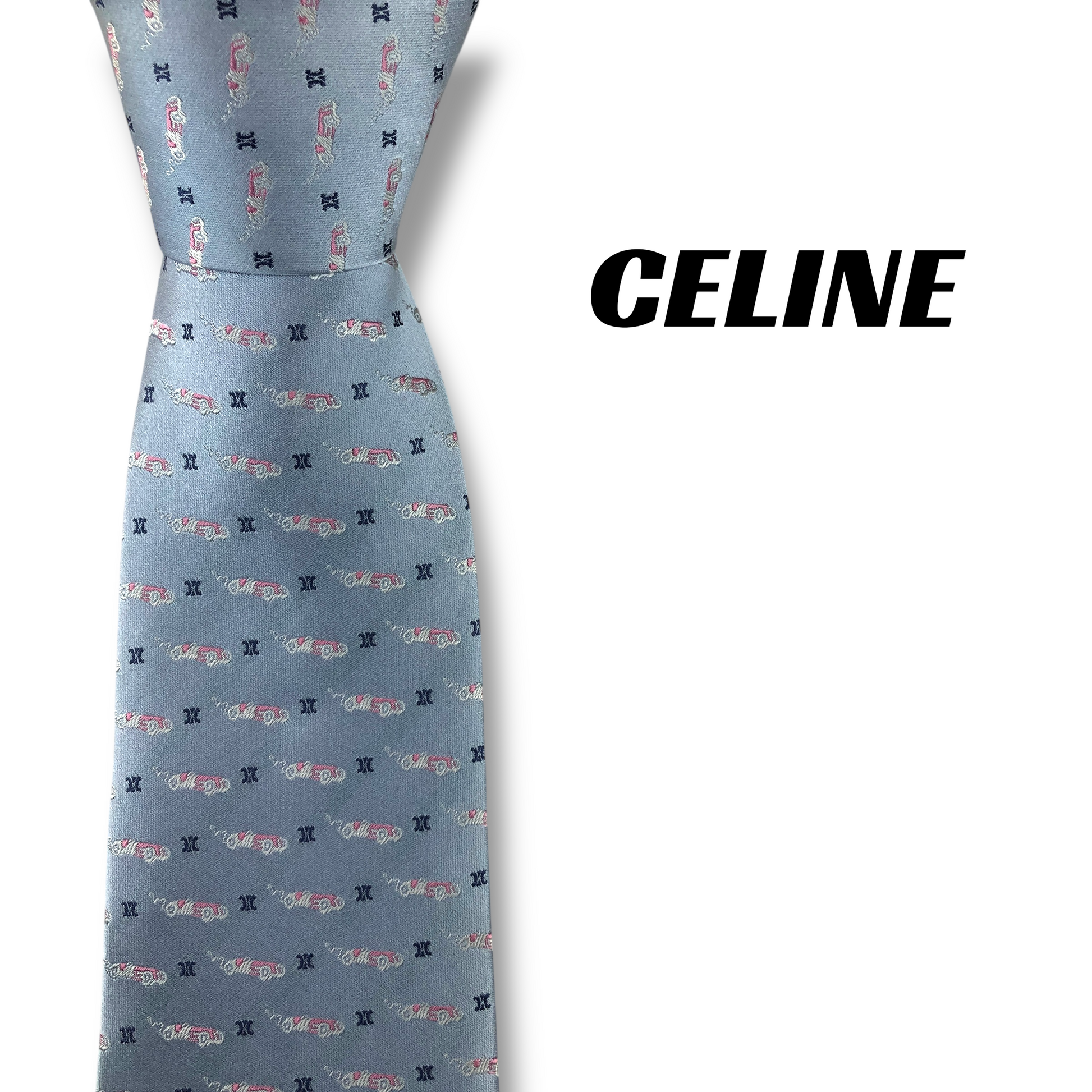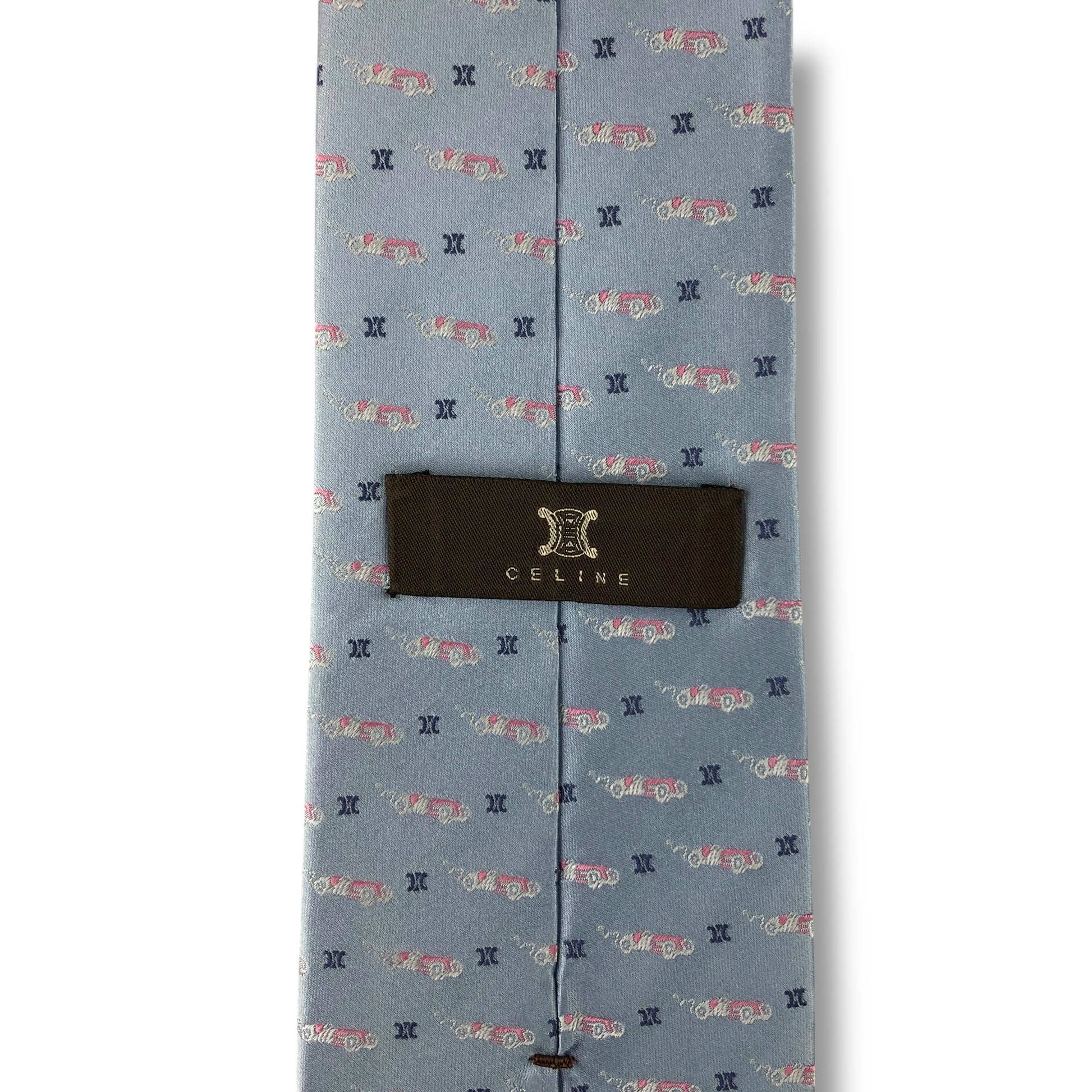 【8070】美品!セリーヌ ネクタイ 水色系 マカダム柄
